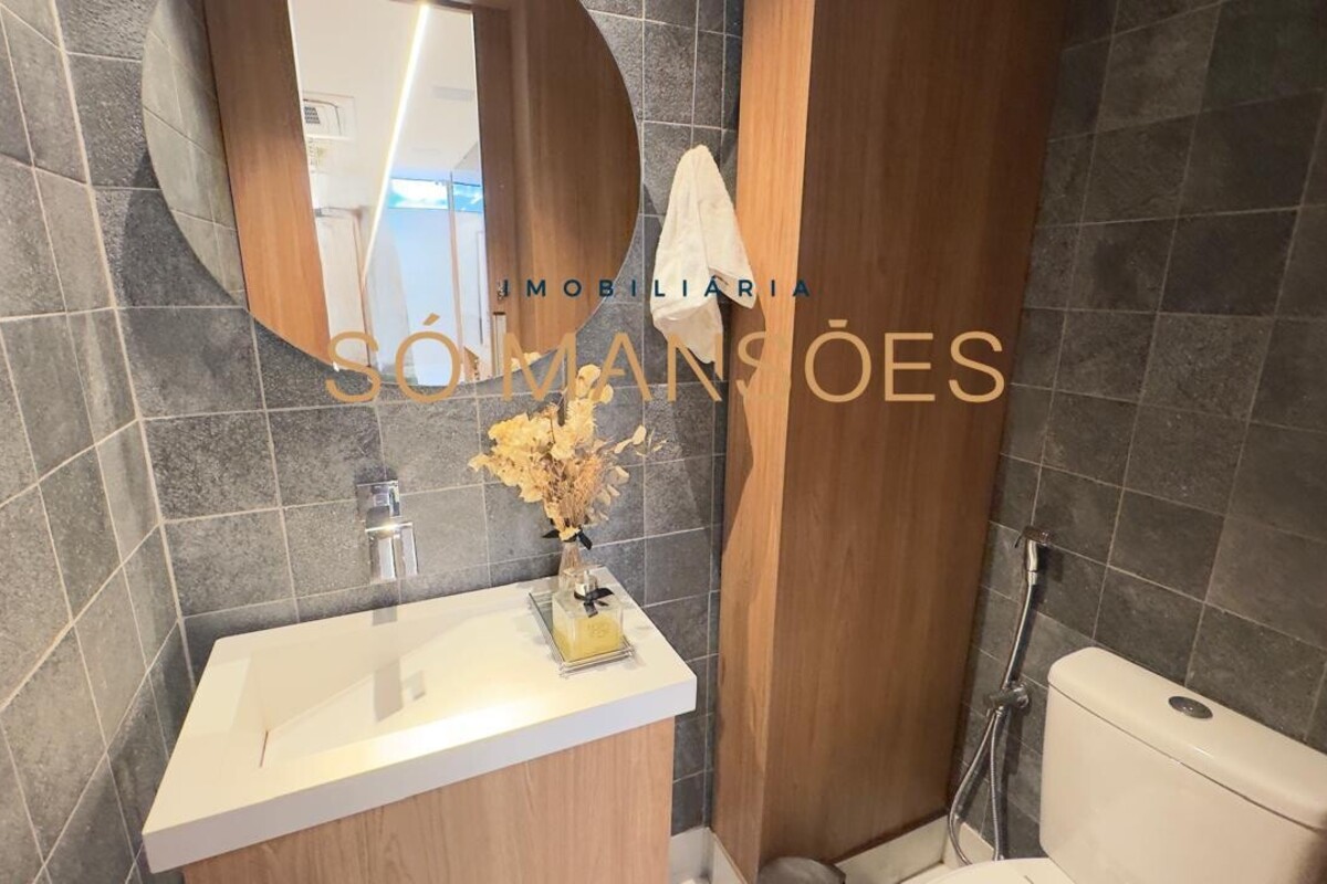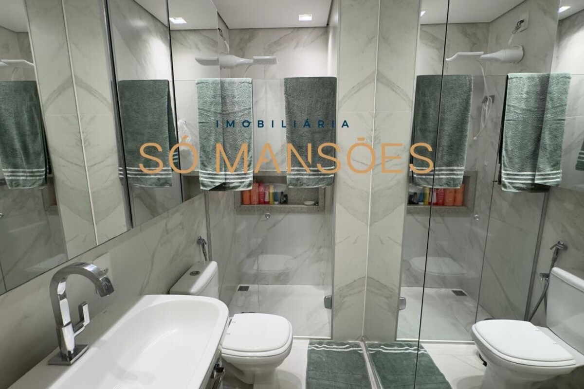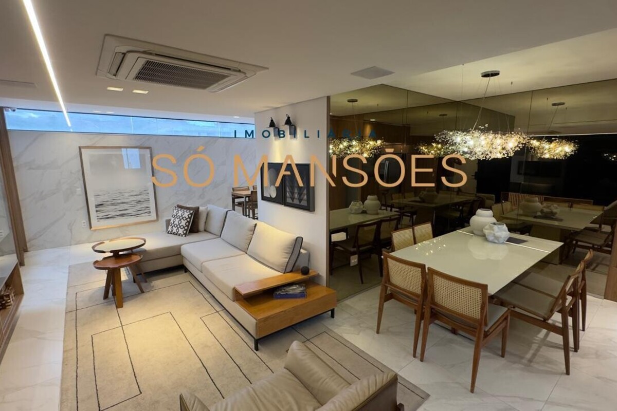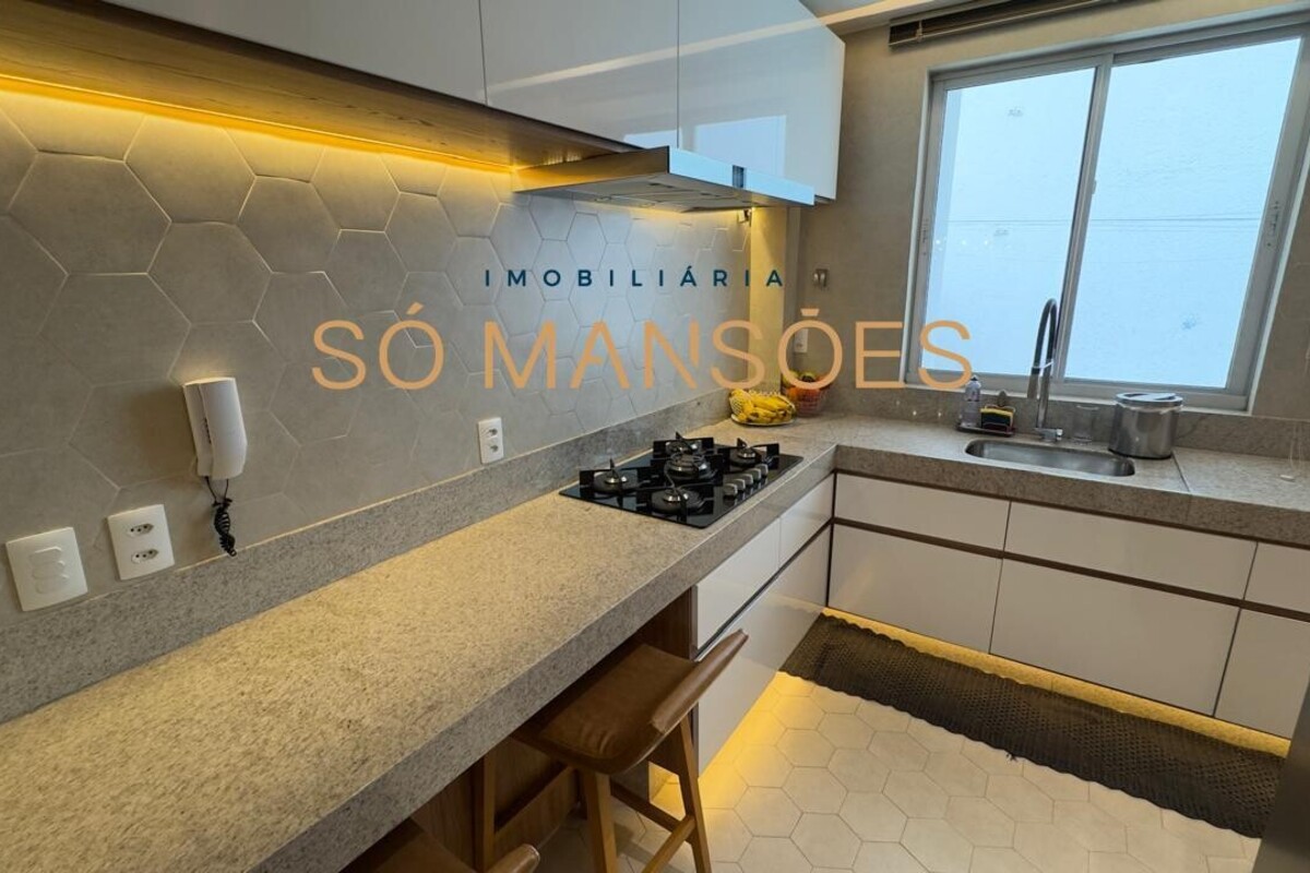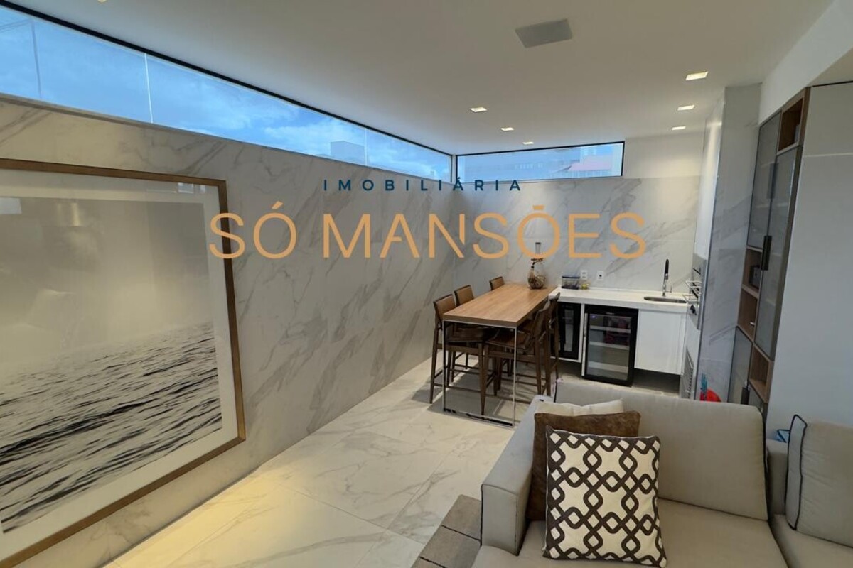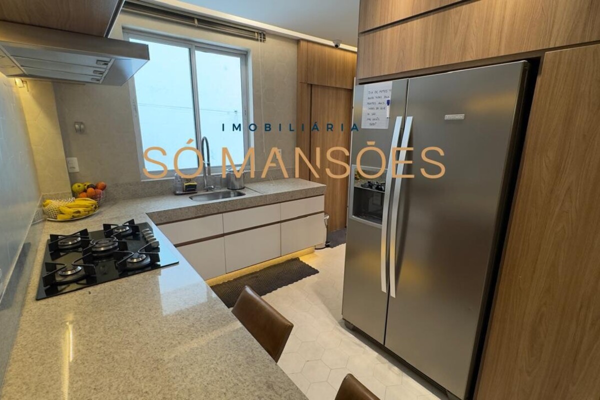 A cozinha segue o mesmo padrão de cuidado e qualidade. Equipamentos como geladeira side by side, torre quente, cooktop e armários planejados garantem eficiência e praticidade. As bancadas em granito reforçam a durabilidade e o design elegante do espaço, enquanto os armários iluminados no jantar adicionam um toque sofisticado e funcional.