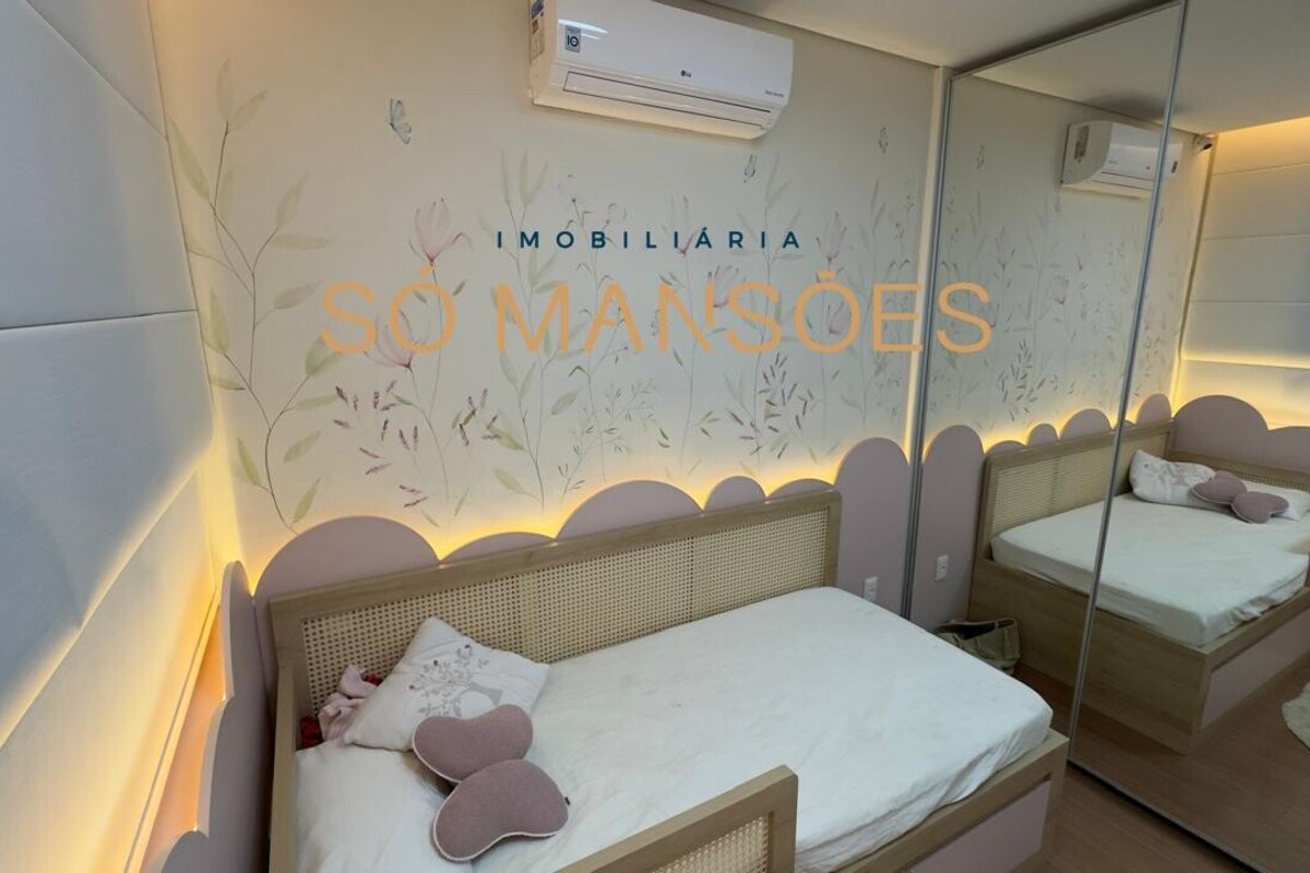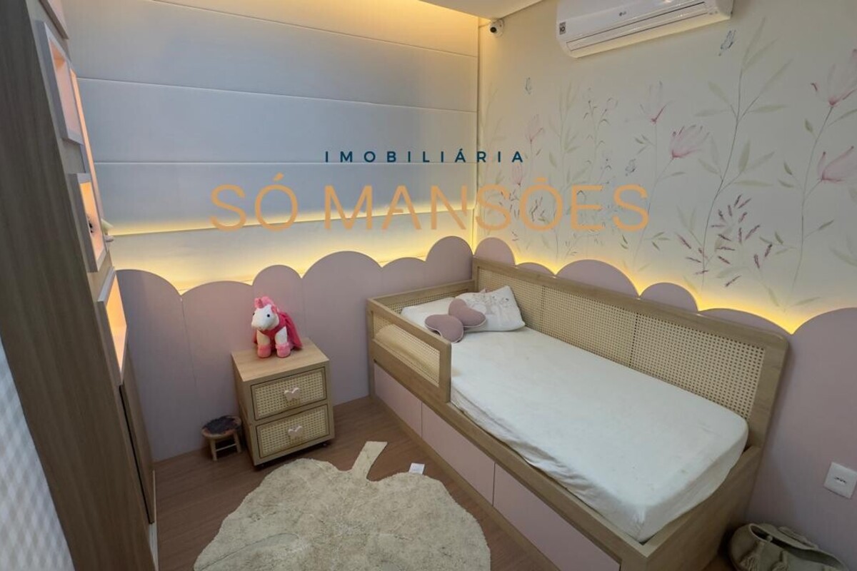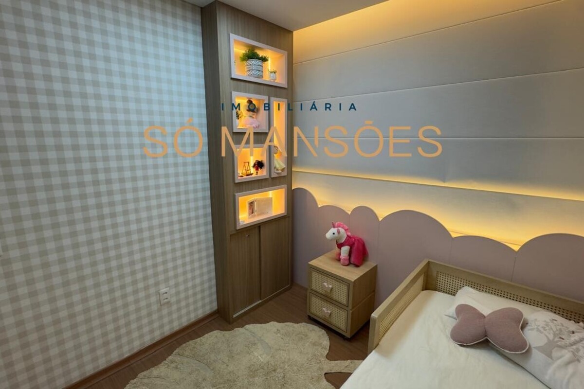 Na área íntima, a suíte master oferece um ambiente de descanso completo e refinado. Os armários em vidro espelhado, o painel em MDF, a penteadeira iluminada e o ar-condicionado destacam o conforto, enquanto a sala de banho moderna cria uma experiência digna dos melhores imóveis do Bairro Castelo. Os outros dois quartos foram pensados especialmente para crianças, cada um com projeto luminotécnico em LED que proporciona aconchego e personalidade ao espaço.