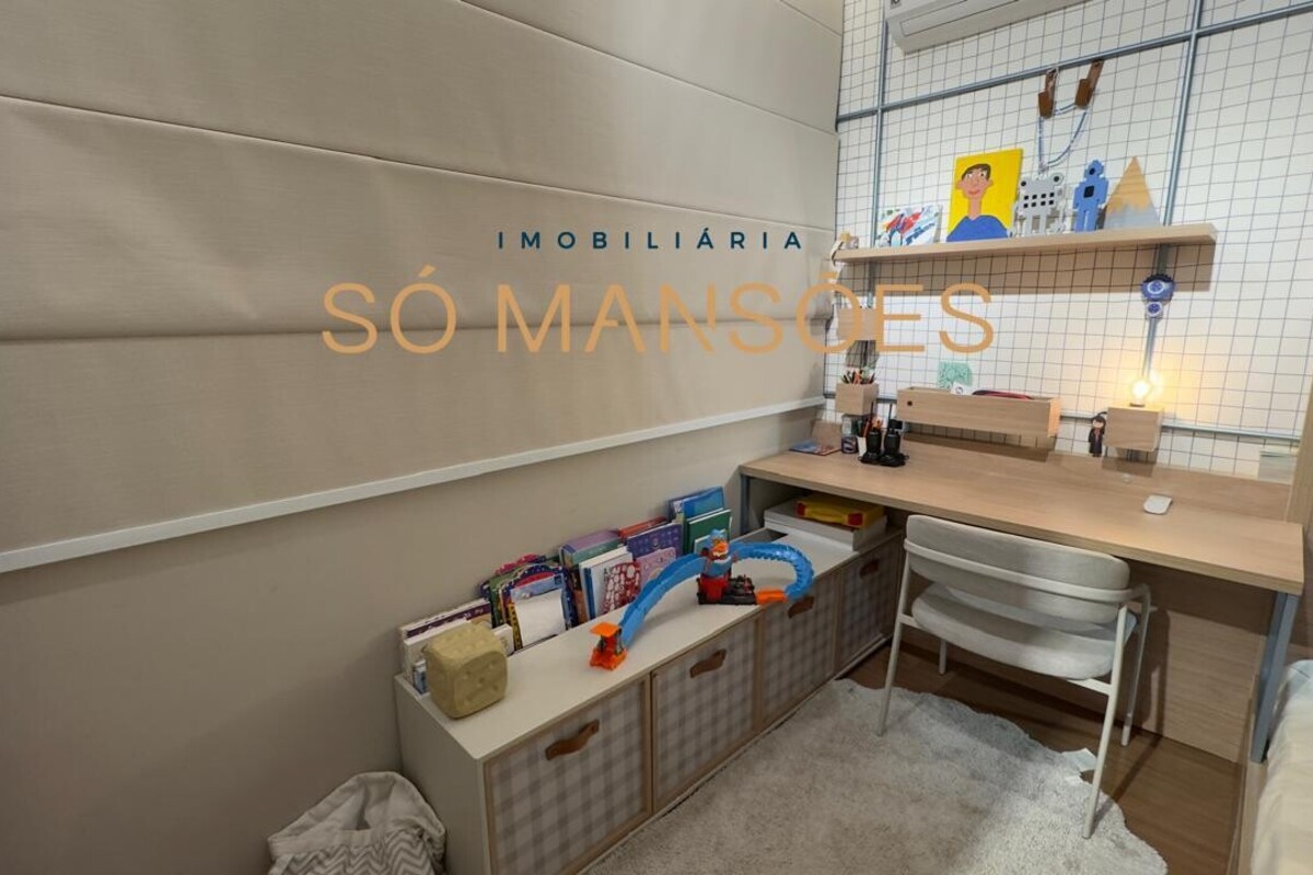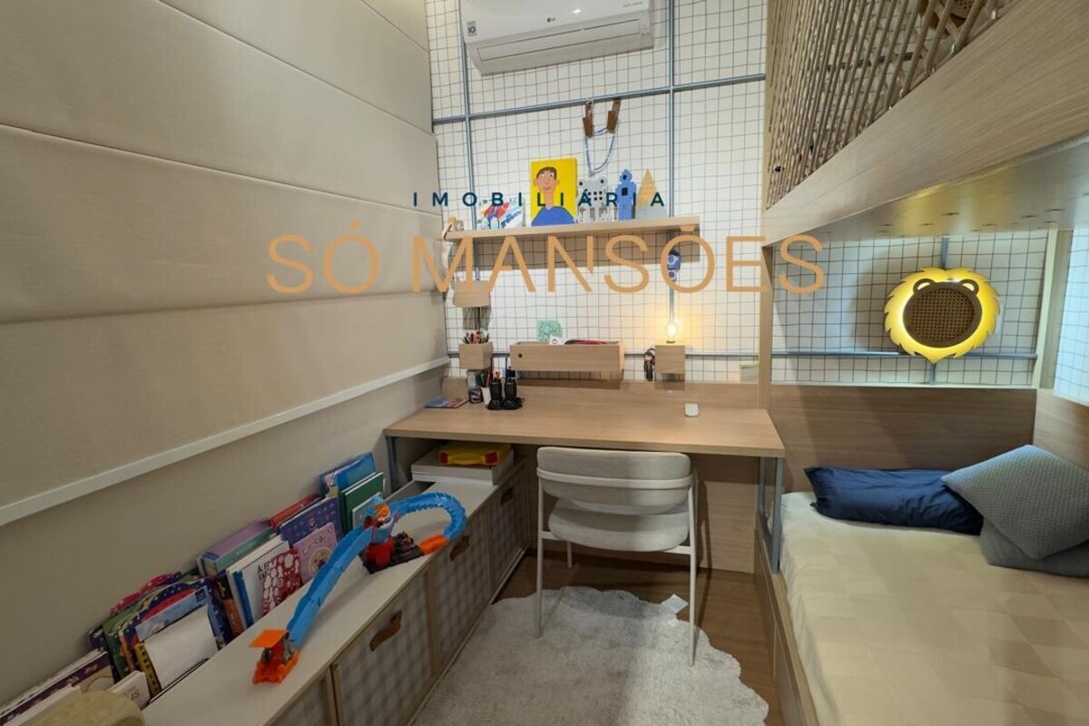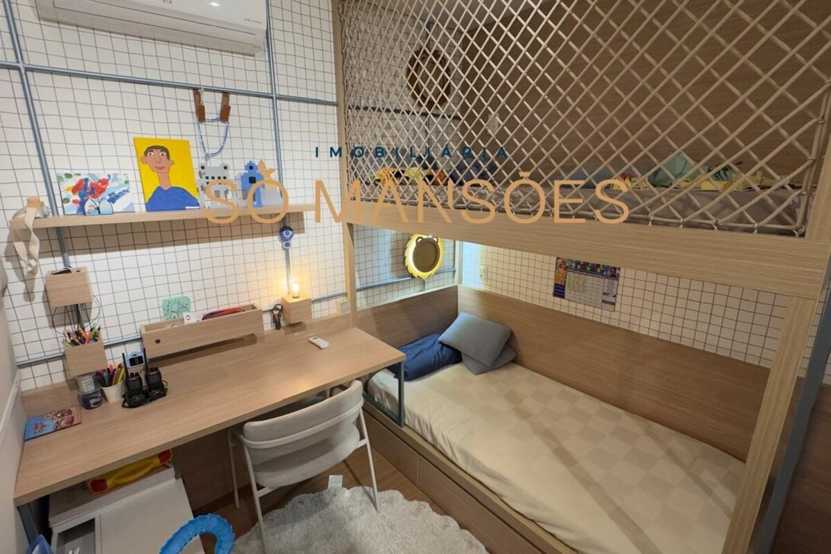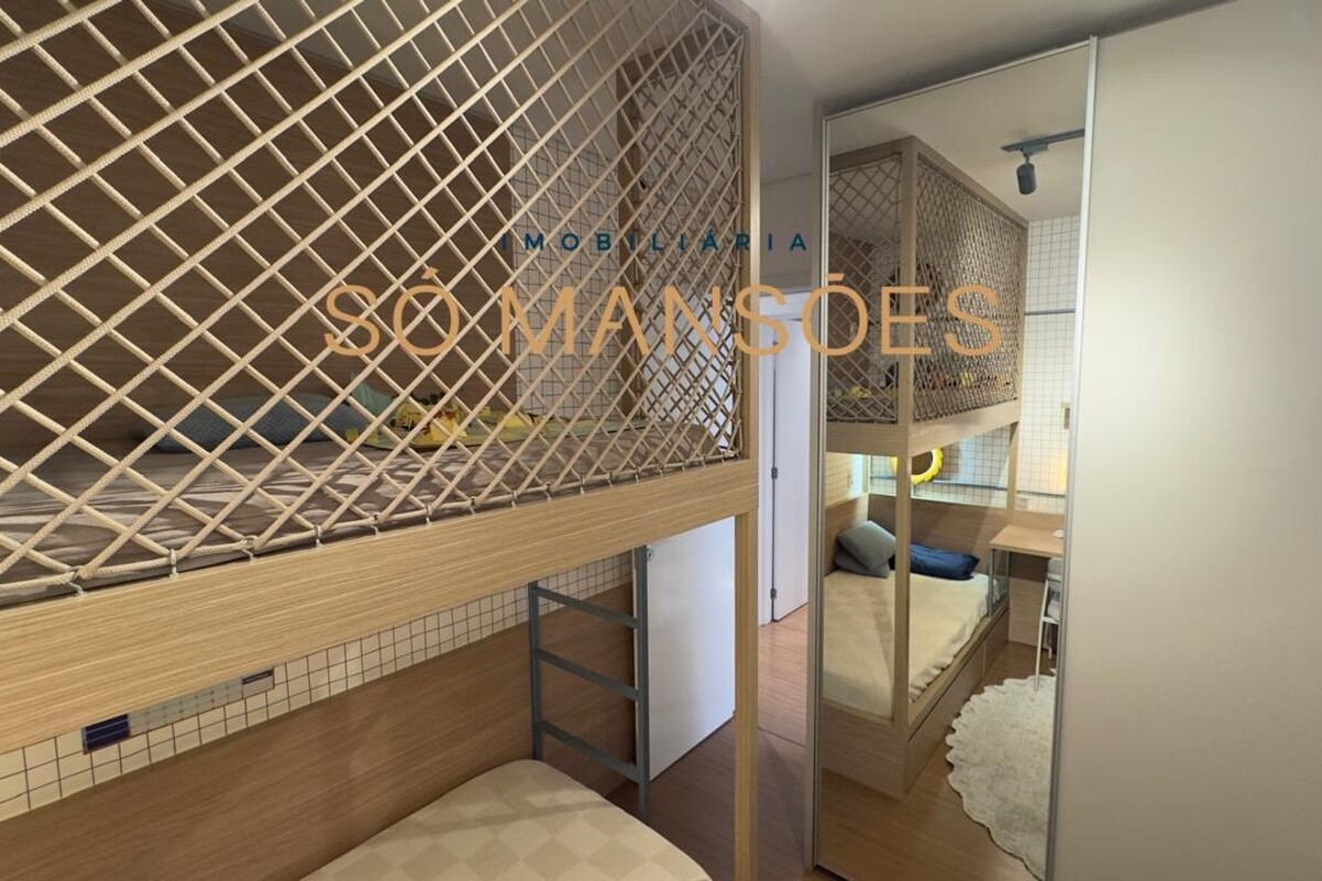 Na área íntima, a suíte master oferece um ambiente de descanso completo e refinado. Os armários em vidro espelhado, o painel em MDF, a penteadeira iluminada e o ar-condicionado destacam o conforto, enquanto a sala de banho moderna cria uma experiência digna dos melhores imóveis do Bairro Castelo. Os outros dois quartos foram pensados especialmente para crianças, cada um com projeto luminotécnico em LED que proporciona aconchego e personalidade ao espaço.