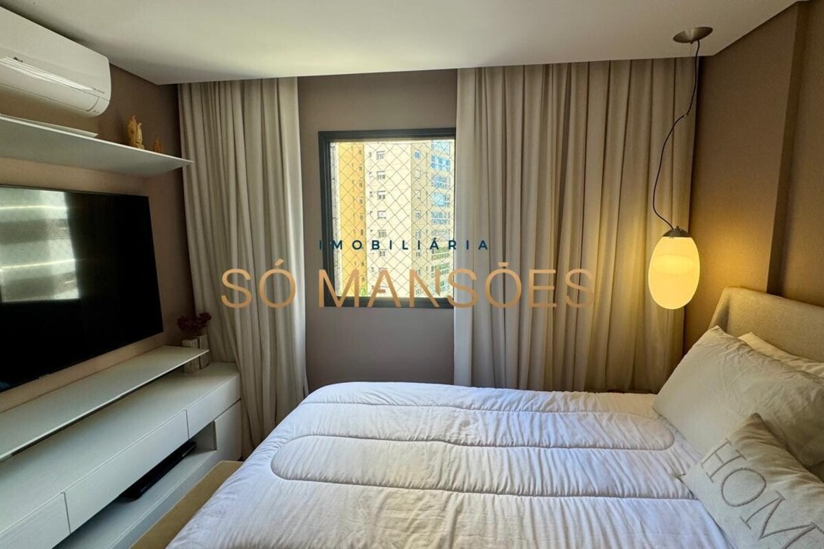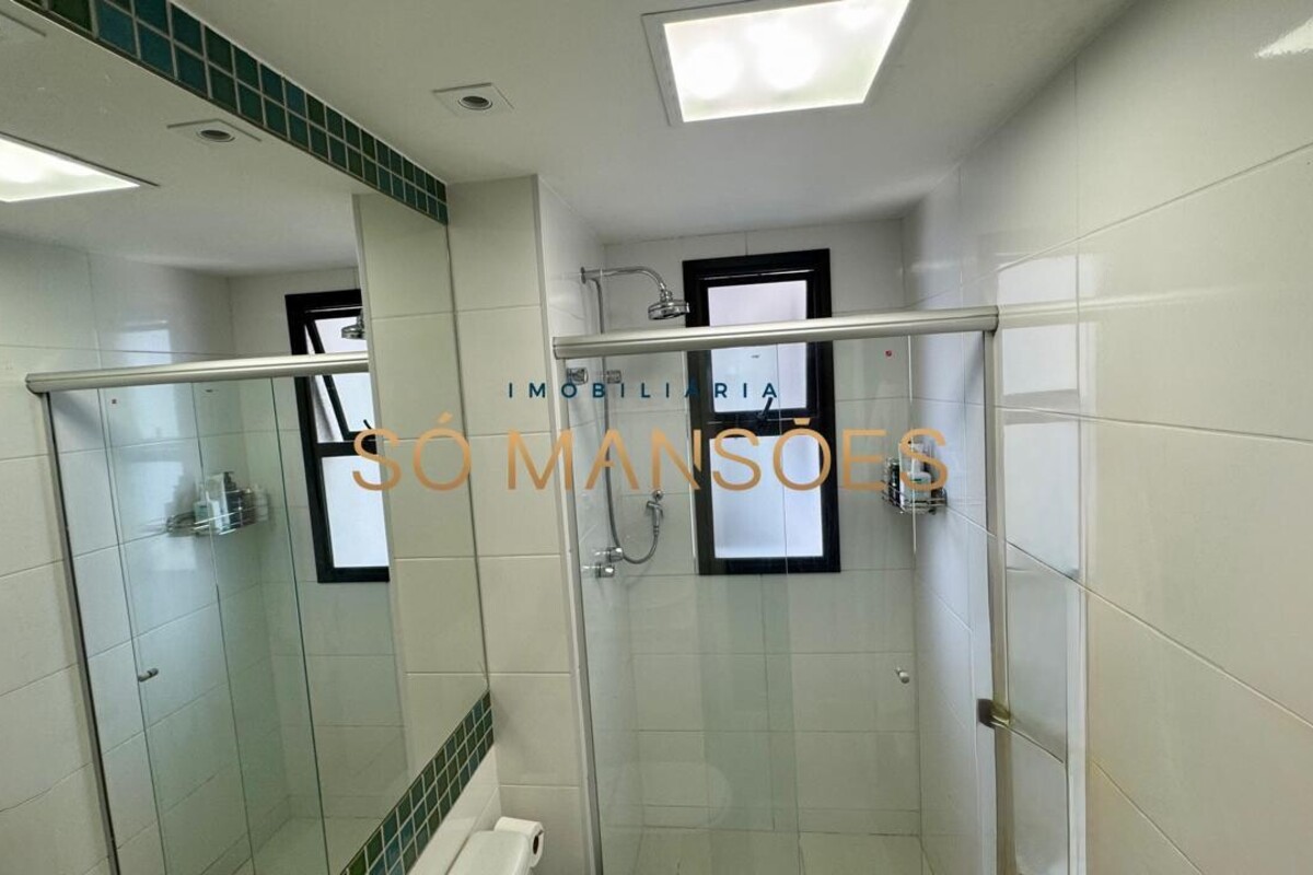 A climatização é garantida por ar-condicionado split na sala e na suíte. As cortinas da marca Columbia complementam os ambientes com sofisticação, incluindo persianas rolô motorizadas na sala, além de persianas nos quartos e cozinha e cortina em linho na suíte.