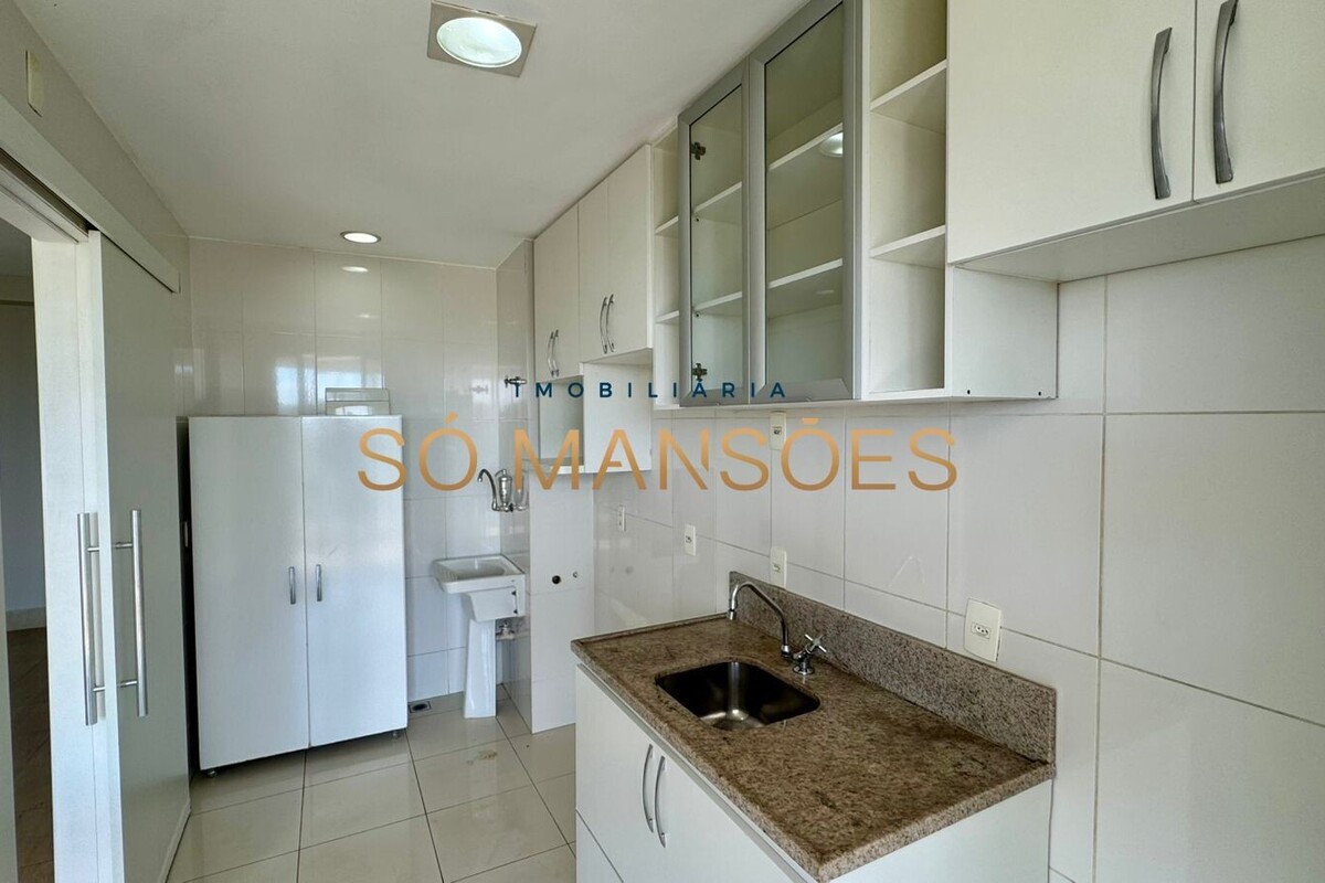 A cozinha é totalmente montada, equipada com armários planejados, oferecendo praticidade no dia a dia. A área de serviço é funcional e conta com tanque.