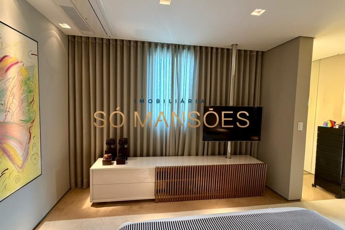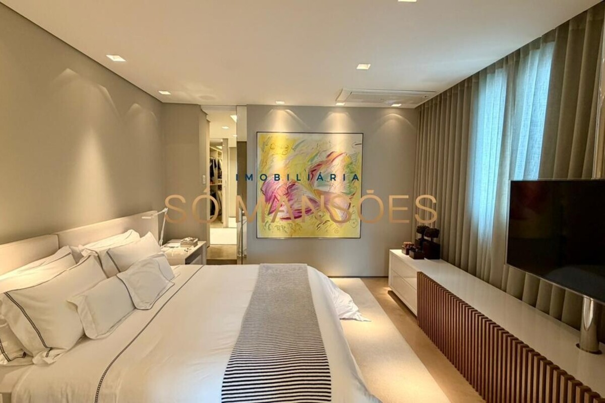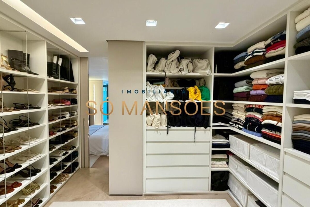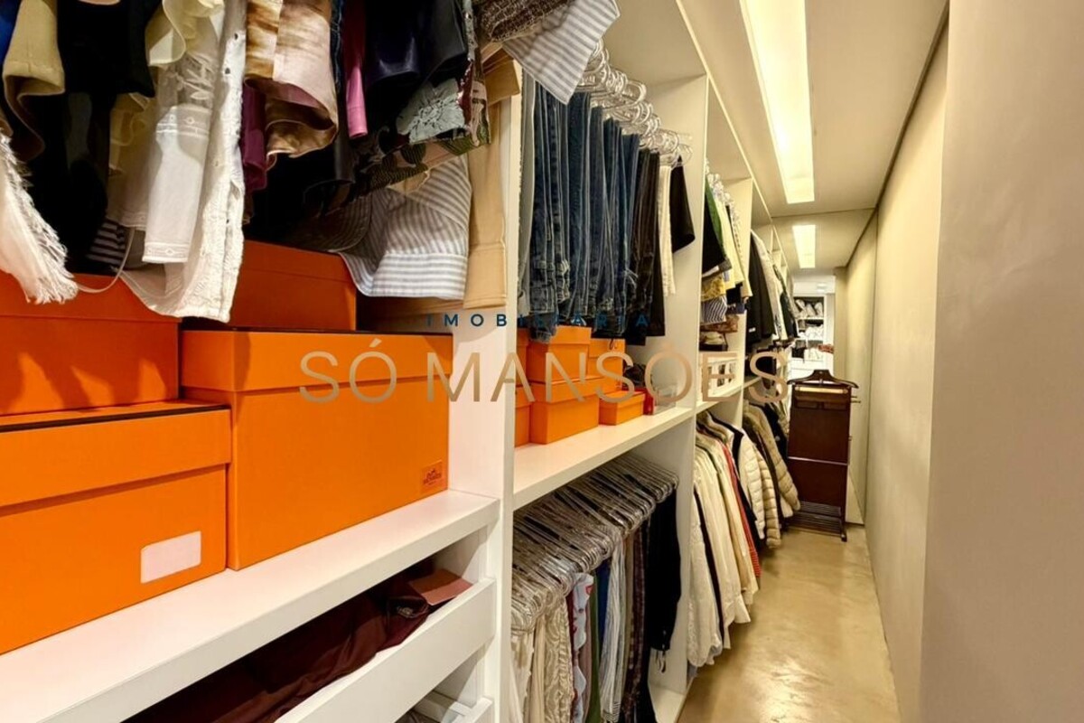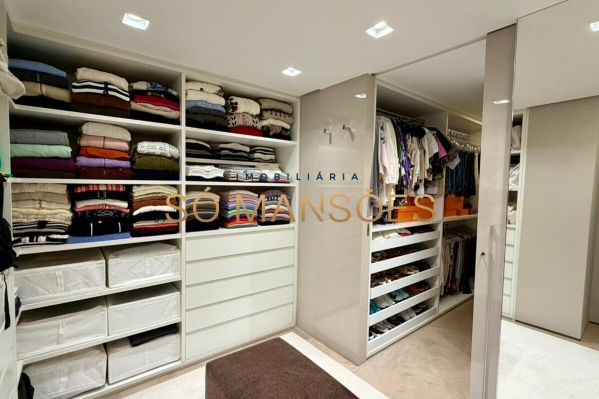 No primeiro pavimento, a ampla sala com pé-direito duplo proporciona imponência e excelente iluminação natural, integrando os espaços com elegância e conforto. O imóvel conta com projeto completo de iluminação, sistema de automação e ar-condicionado, agregando tecnologia e sofisticação ao ambiente. A cozinha é espaçosa e equipada com marcenaria sob medida, além de área de serviço independente, dependência completa de empregada e box de despejo.