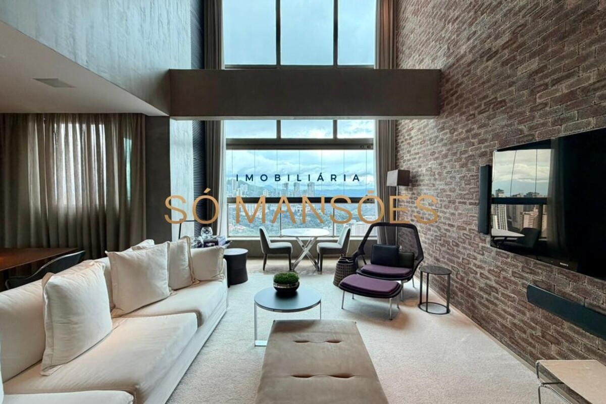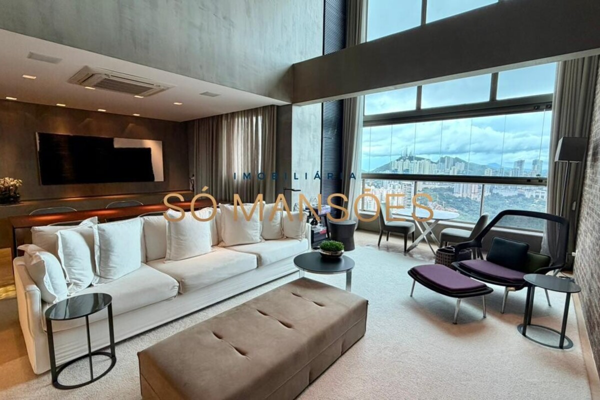 Apartamento duplex de alto padrão, com arquitetura contemporânea e projeto assinado por Eliane Pinheiro, destacando-se pelo acabamento de luxo, integração dos ambientes e vista privilegiada.