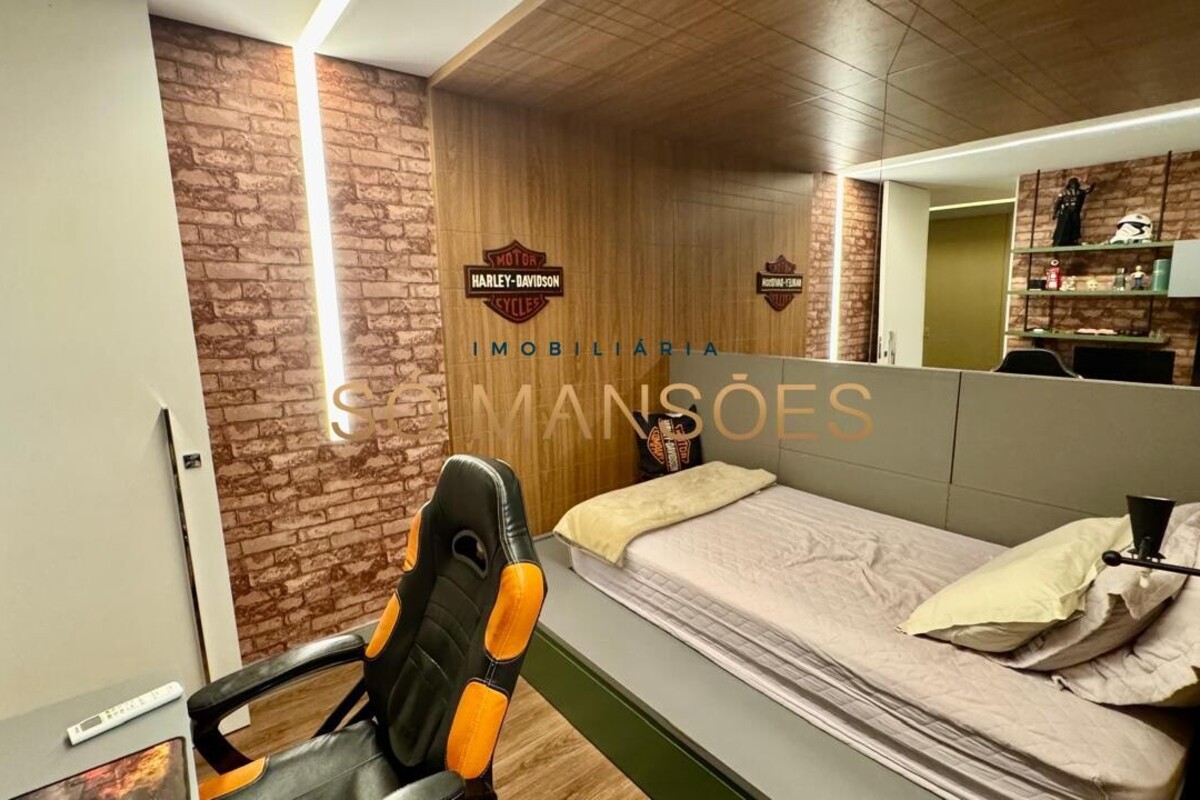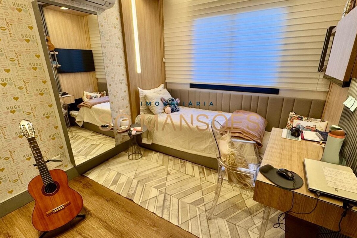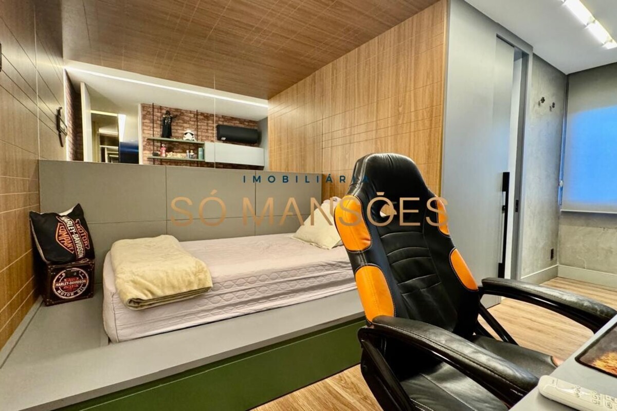 A área íntima conta com 4 quartos bem distribuídos, sendo 1 suíte master com closet e hidromassagem, 1 suíte adicional e 2 semi-suítes, garantindo conforto e privacidade para toda a família. Todos os ambientes foram planejados com marcenaria sob medida e excelente aproveitamento de espaço.