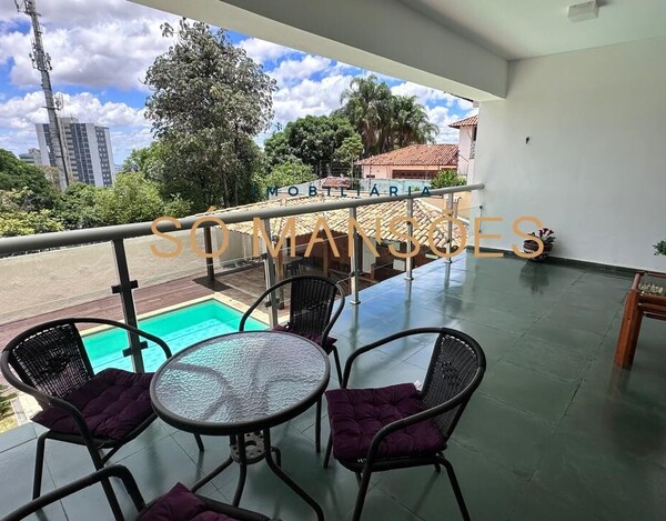 No pavimento inferior, encontra-se um salão de jogos com armários e piso em pedra São Tomé. Este nível também inclui DCE completo, lavanderia e uma área de lazer composta por espaço gourmet com churrasqueira, piscina com bar molhado, sauna e um jardim bem cuidado.