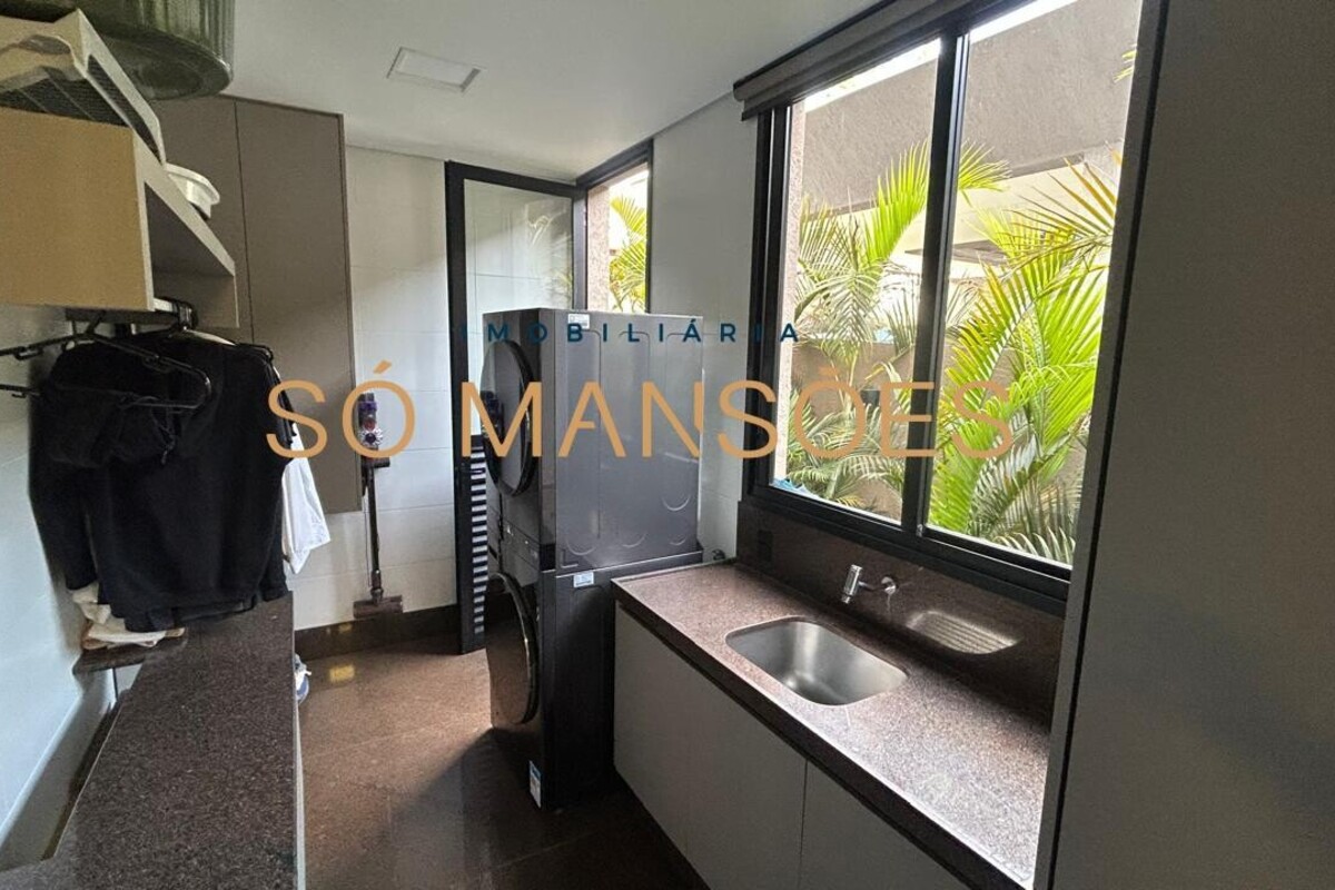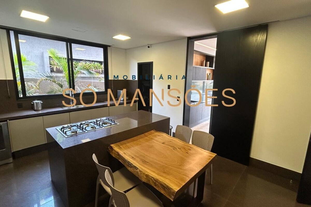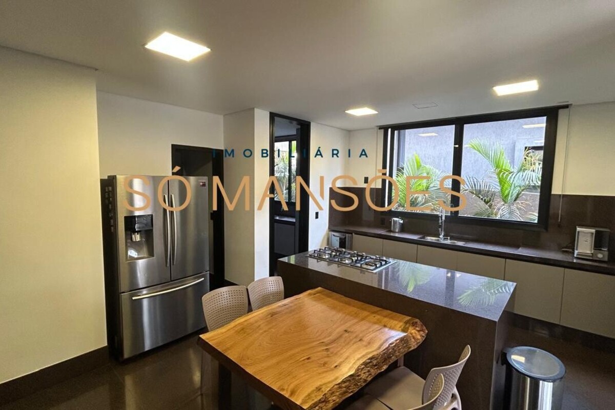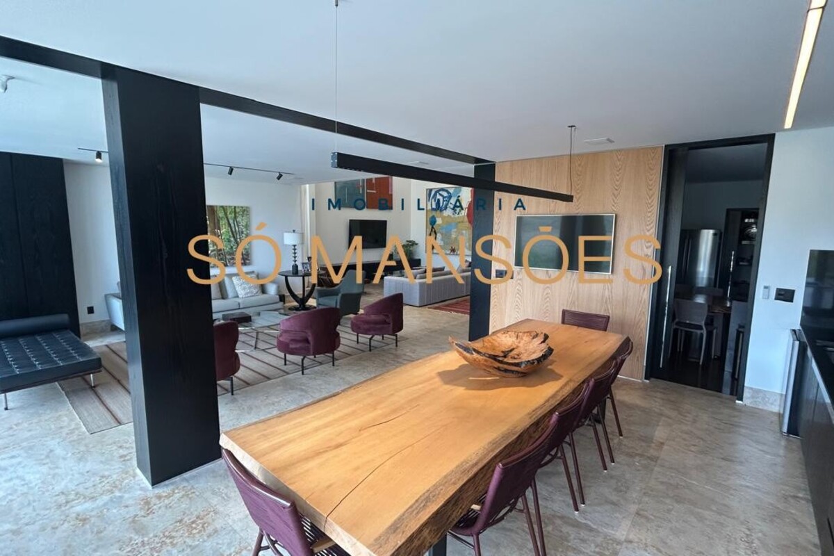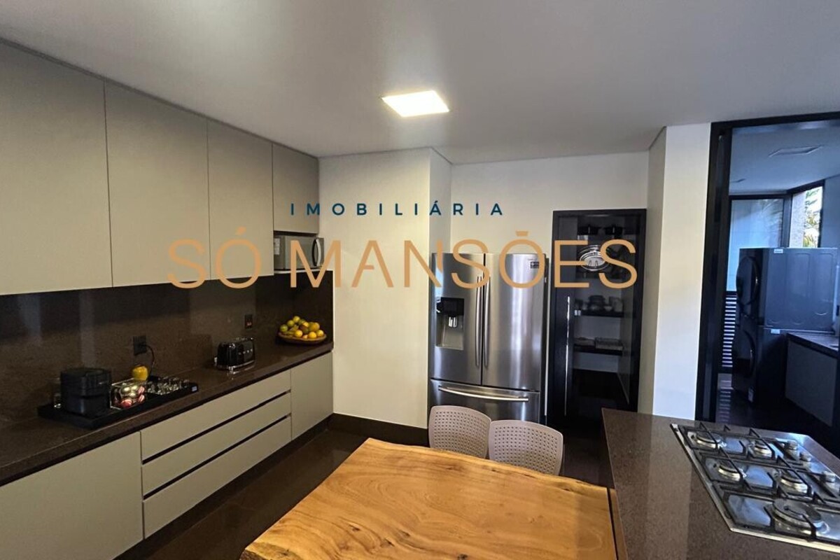 As salas de estar e jantar são amplas, possuem lareira e vista para o verde. A cozinha gourmet, integrada às áreas sociais, conta com bancadas em granito, armários planejados e eletrodomésticos de excelente qualidade.