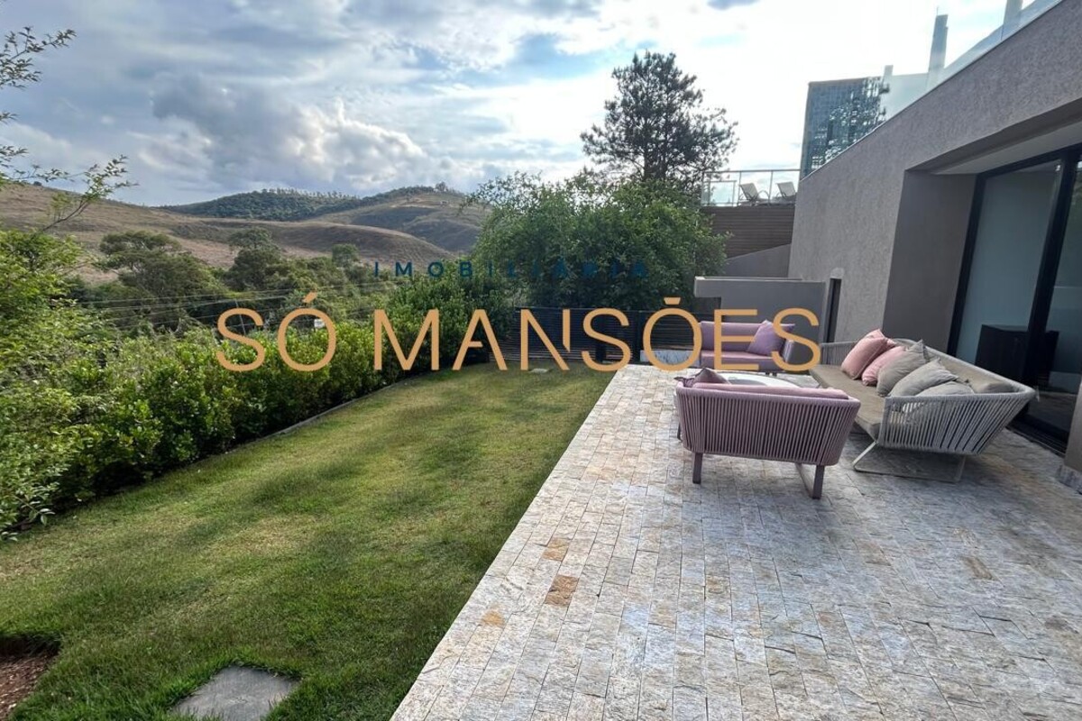 Na área íntima, a casa oferece quatro quartos, sendo duas suítes e duas semi-suítes. A suíte master dispõe de closet e varanda privativa com vista definitiva para a área de preservação.