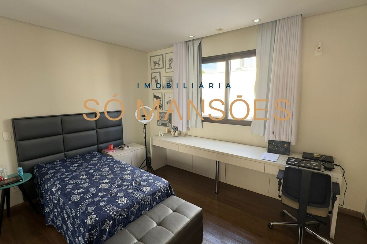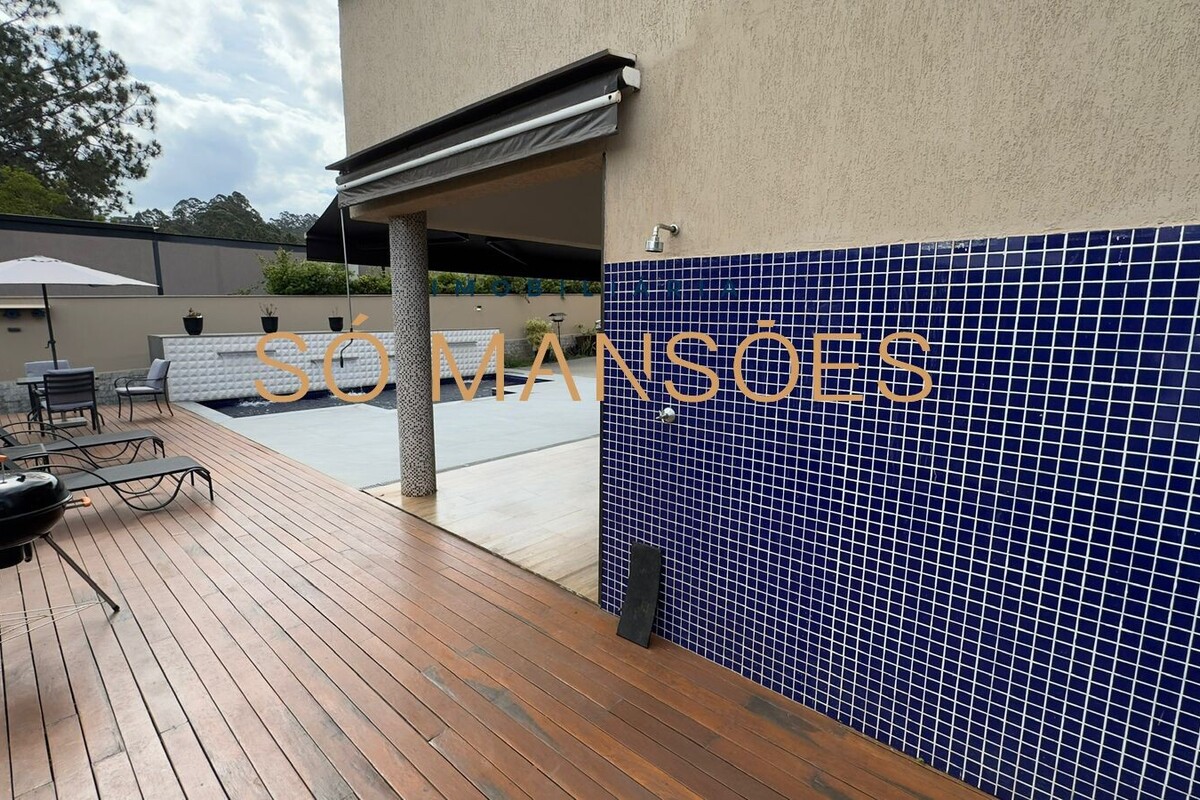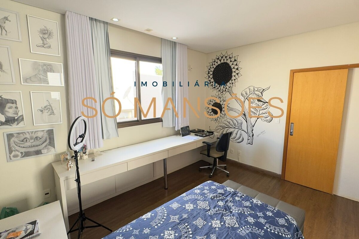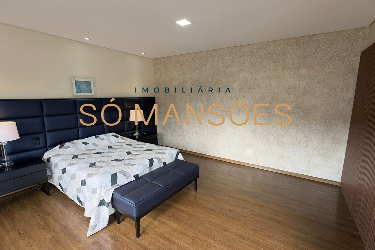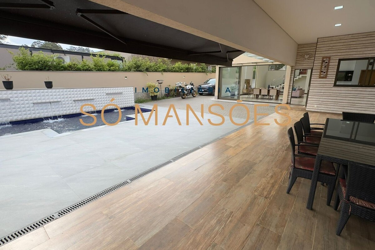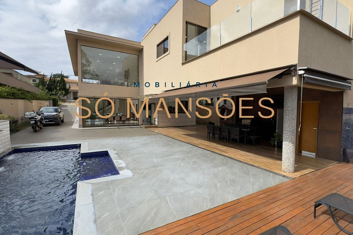 A entrada apresenta pé-direito elevado e ampla iluminação natural. Os ambientes sociais são espaçosos e bem distribuídos, com sala de estar equipada com lareira e vista para o verde. A cozinha gourmet possui bancadas em granito, armários planejados e eletrodomésticos de alto padrão, integrando praticidade e sofisticação no dia a dia.
