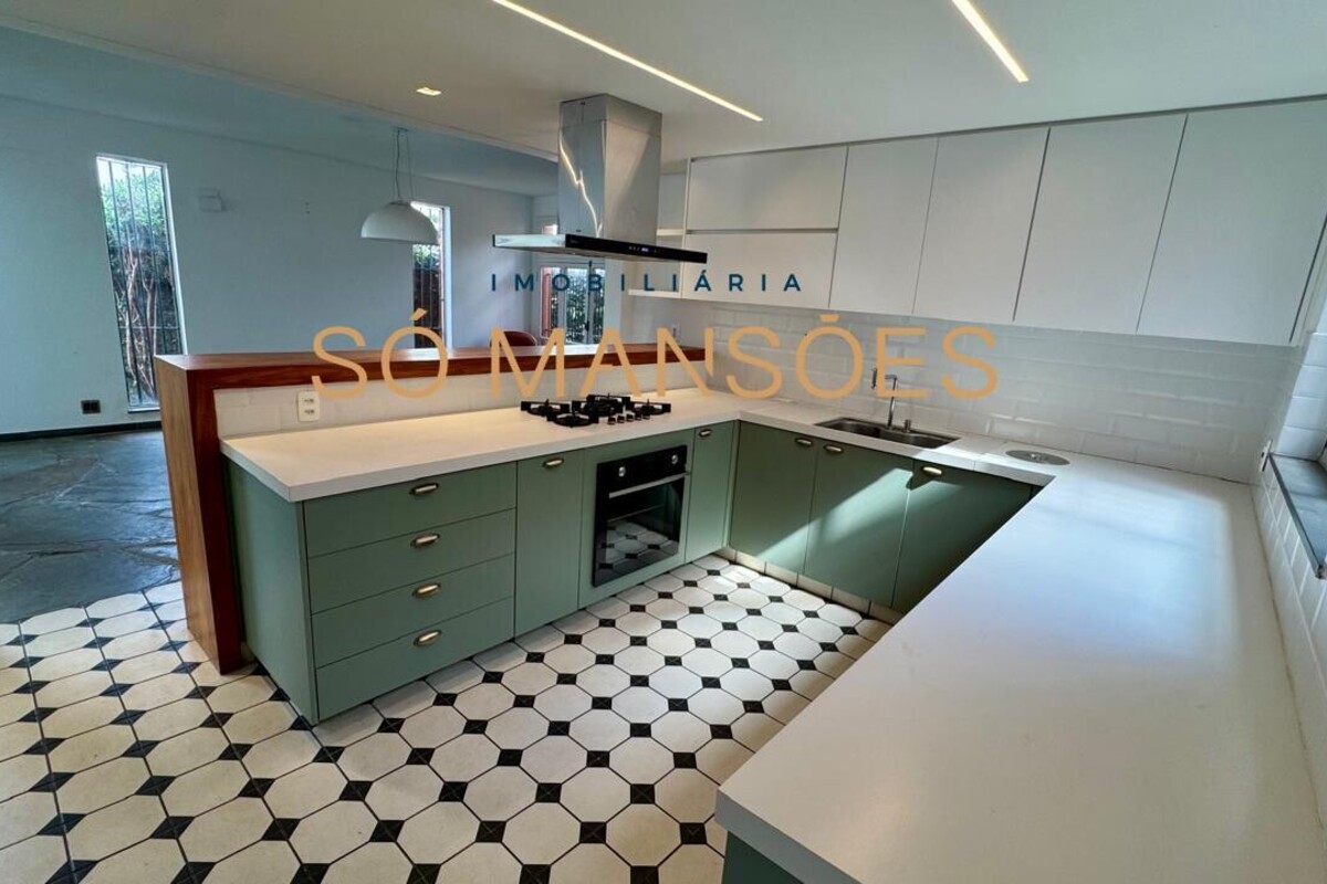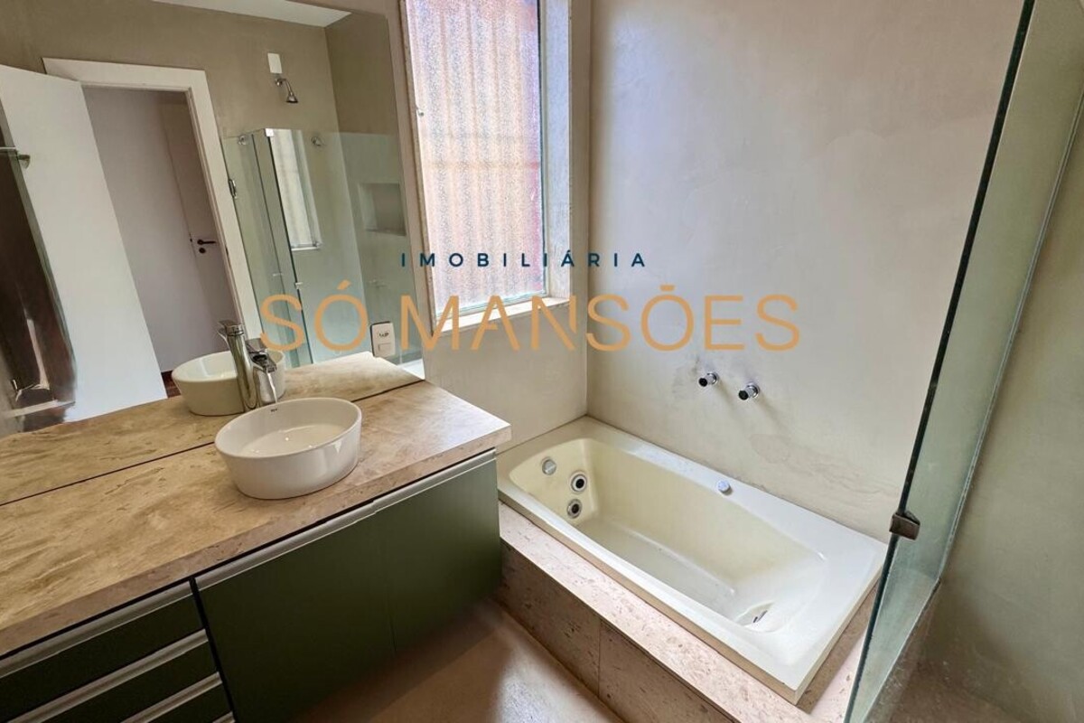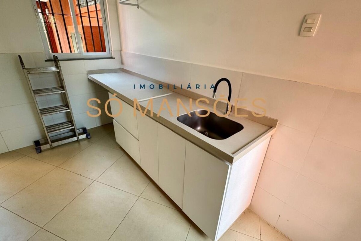 O imóvel dispõe de quatro salas, incluindo uma com pé-direito duplo e outra que pode ser convertida em quarto, oferecendo flexibilidade na utilização dos espaços. A cozinha integrada à área social possui lavabo, bancadas em supernanoglass e marcenaria nova, de padrão elevado.