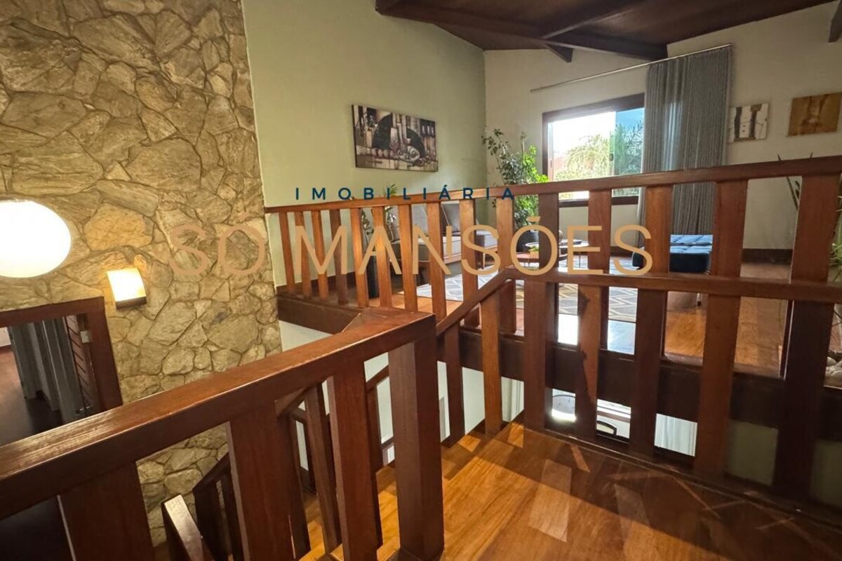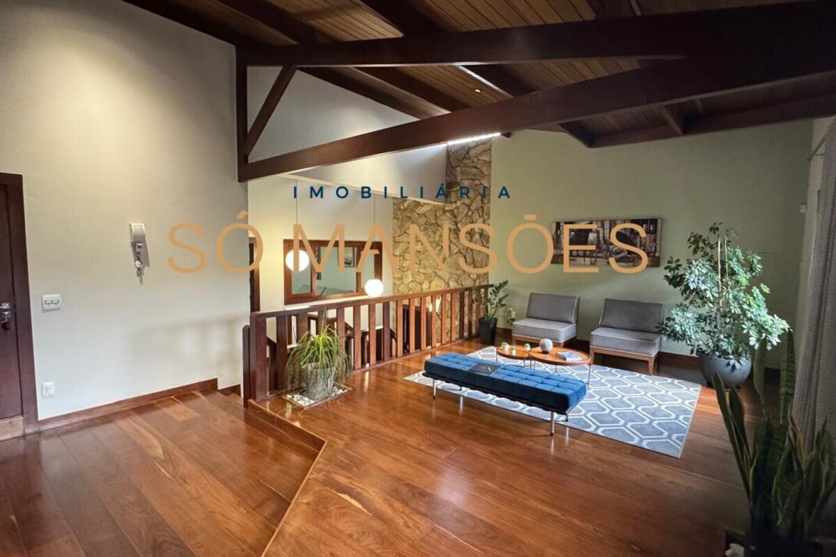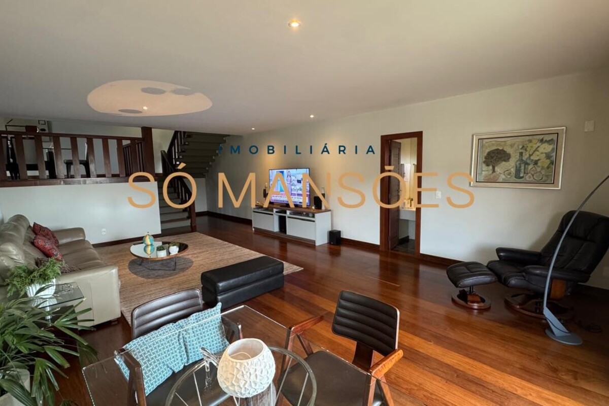 Logo na entrada, a sala de estar espaçosa, com pé-direito duplo e mezanino, impressiona pela luminosidade natural e pelo clima acolhedor. São quatro salas bem distribuídas, perfeitas para receber com estilo e conforto.