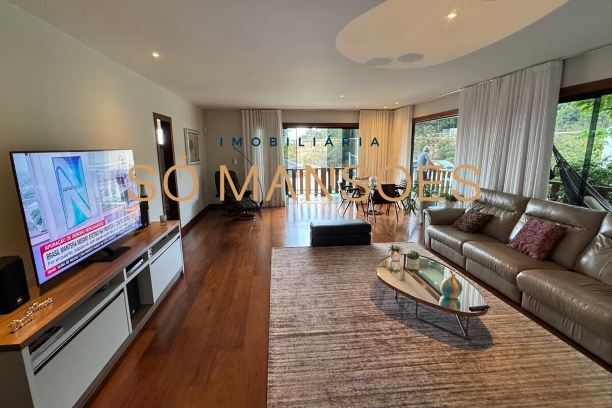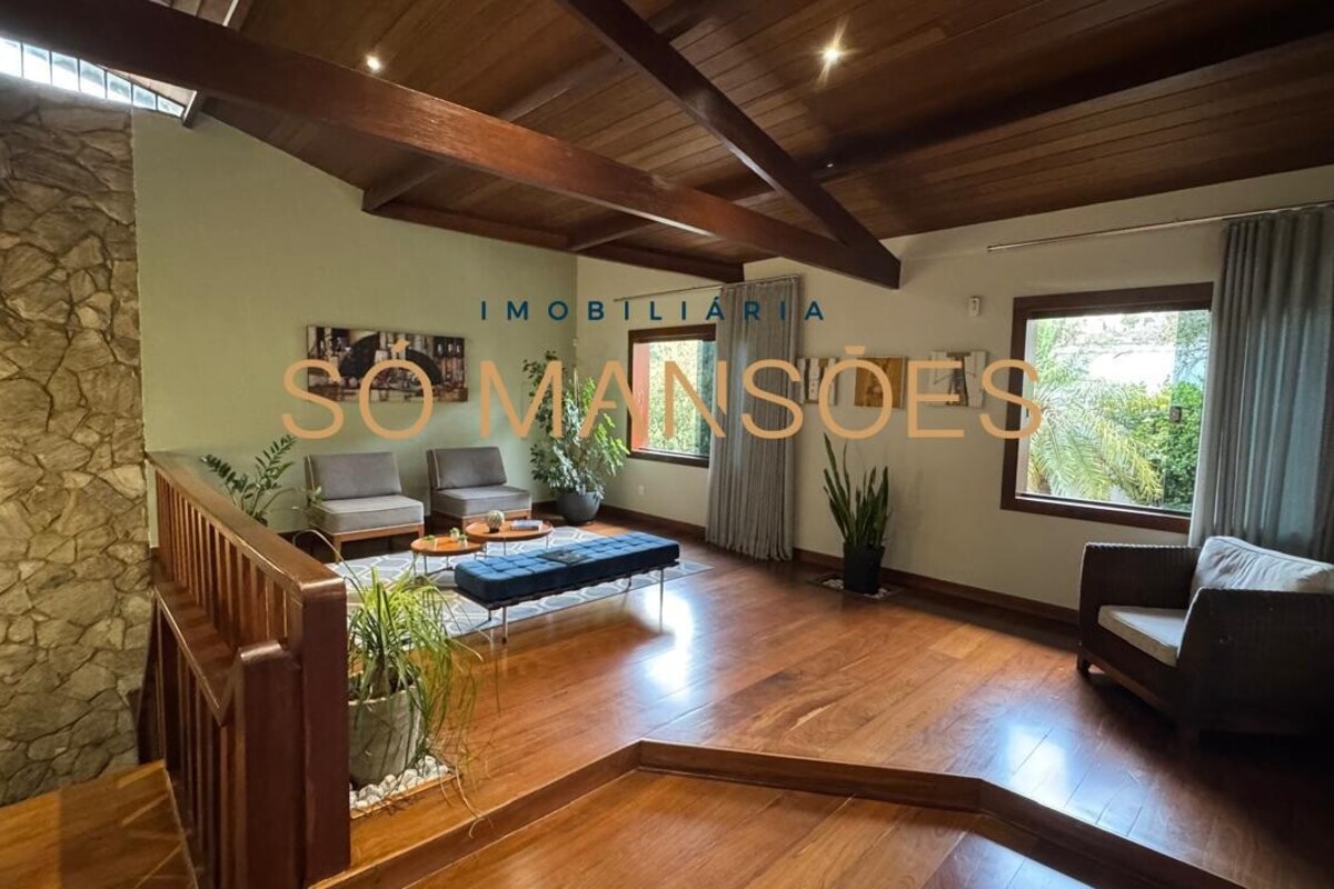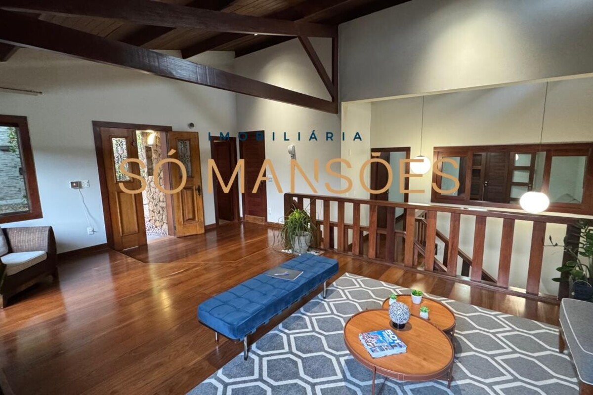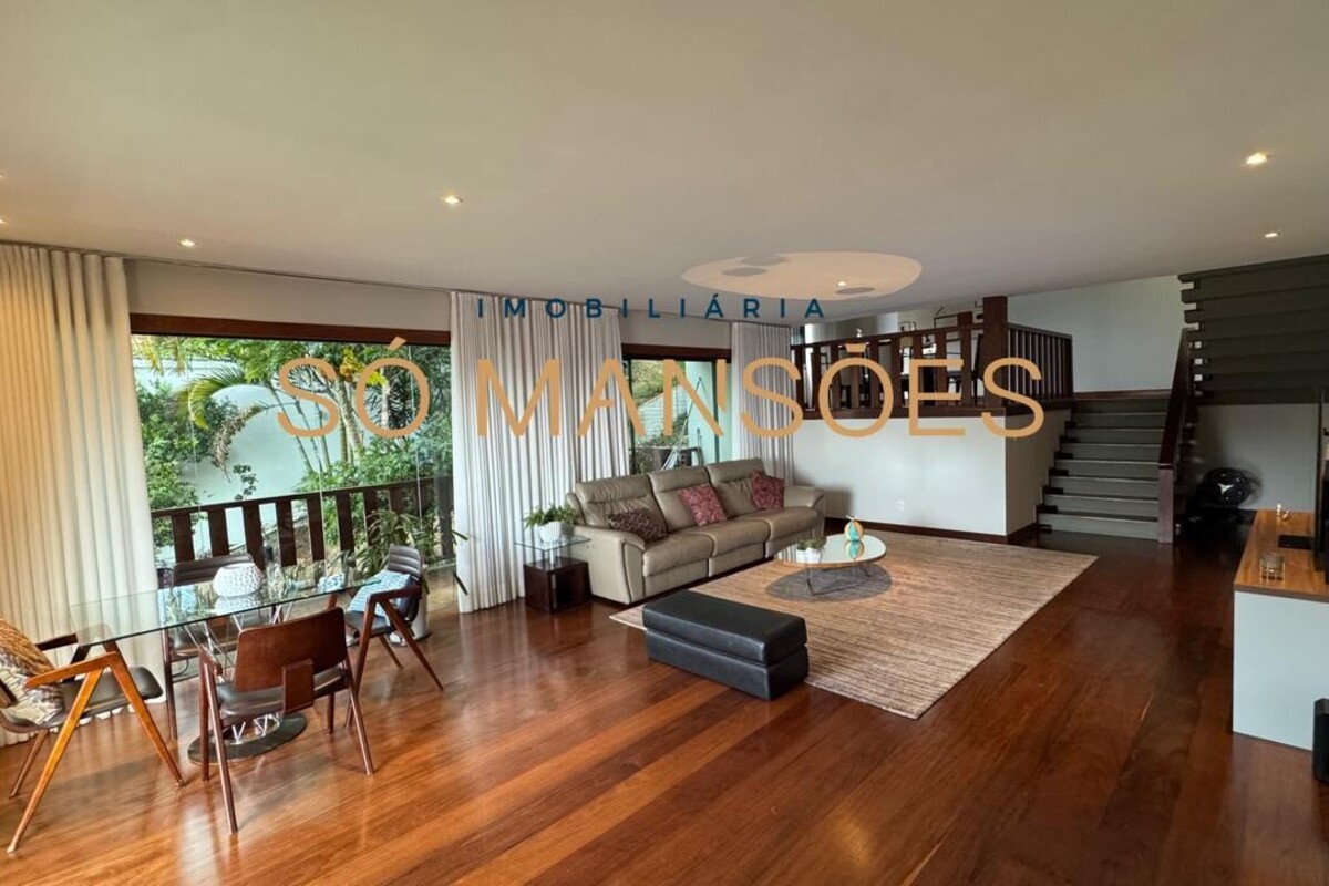 Logo na entrada, a sala de estar espaçosa, com pé-direito duplo e mezanino, impressiona pela luminosidade natural e pelo clima acolhedor. São quatro salas bem distribuídas, perfeitas para receber com estilo e conforto.