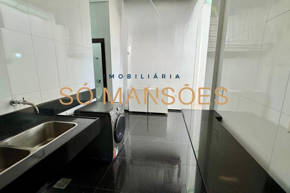 A cozinha é espaçosa e funcional, com piso e bancadas em granito, além de excelente ventilação. A área de serviço é independente e bem equipada, com espaço para secagem de roupas e apoio doméstico, garantindo discrição e praticidade.