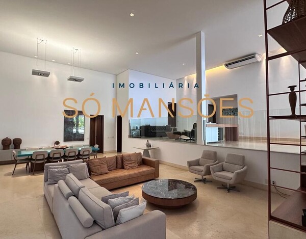 A casa ainda dispõe de uma sala ampla, ideal para criar ambientes de estar e jantar com sofisticação, uma dependência completa para empregados e um quarto de despejo, garantindo funcionalidade e organização.