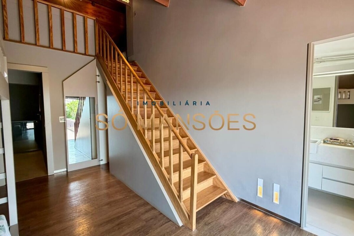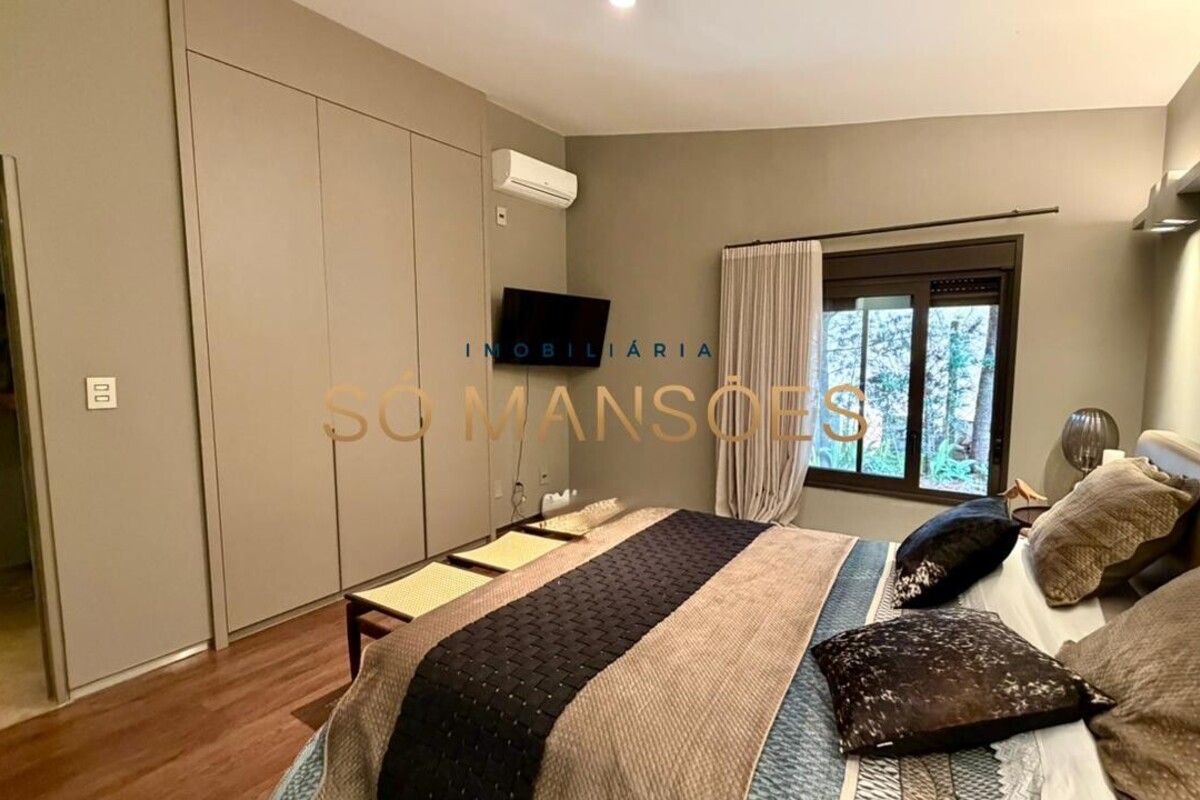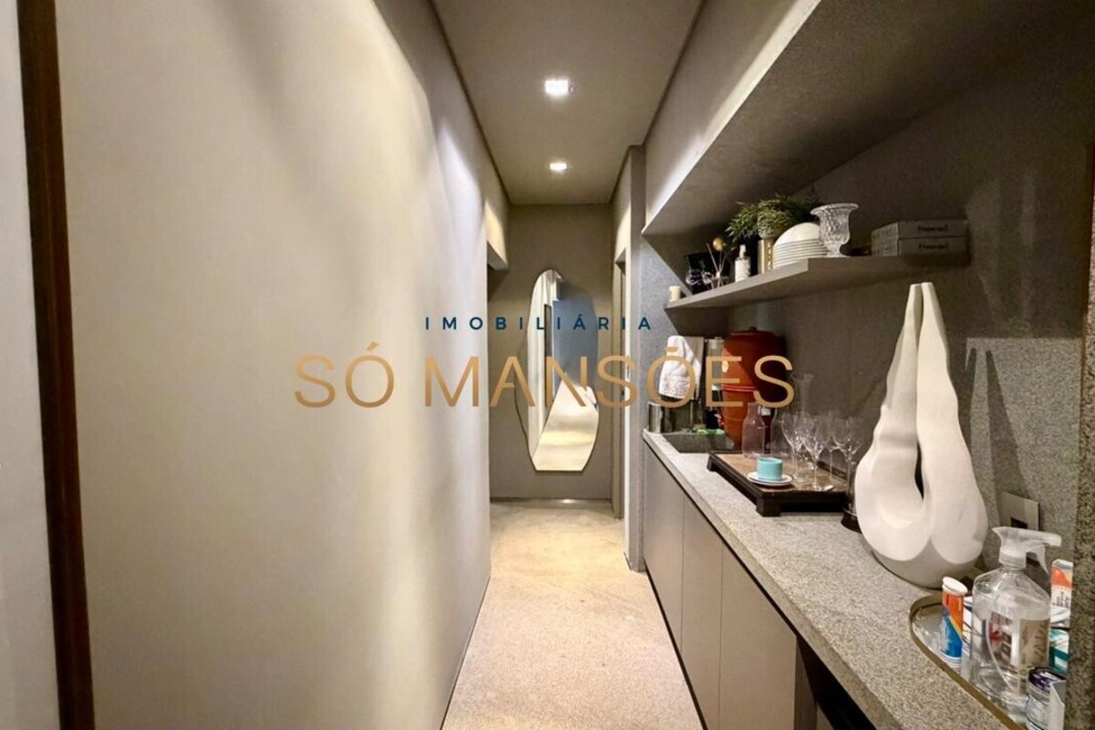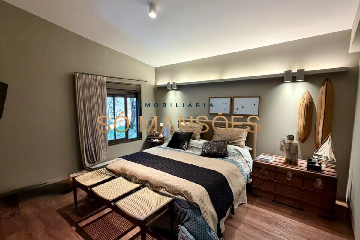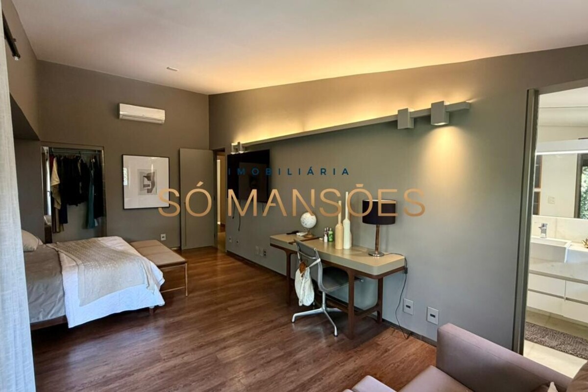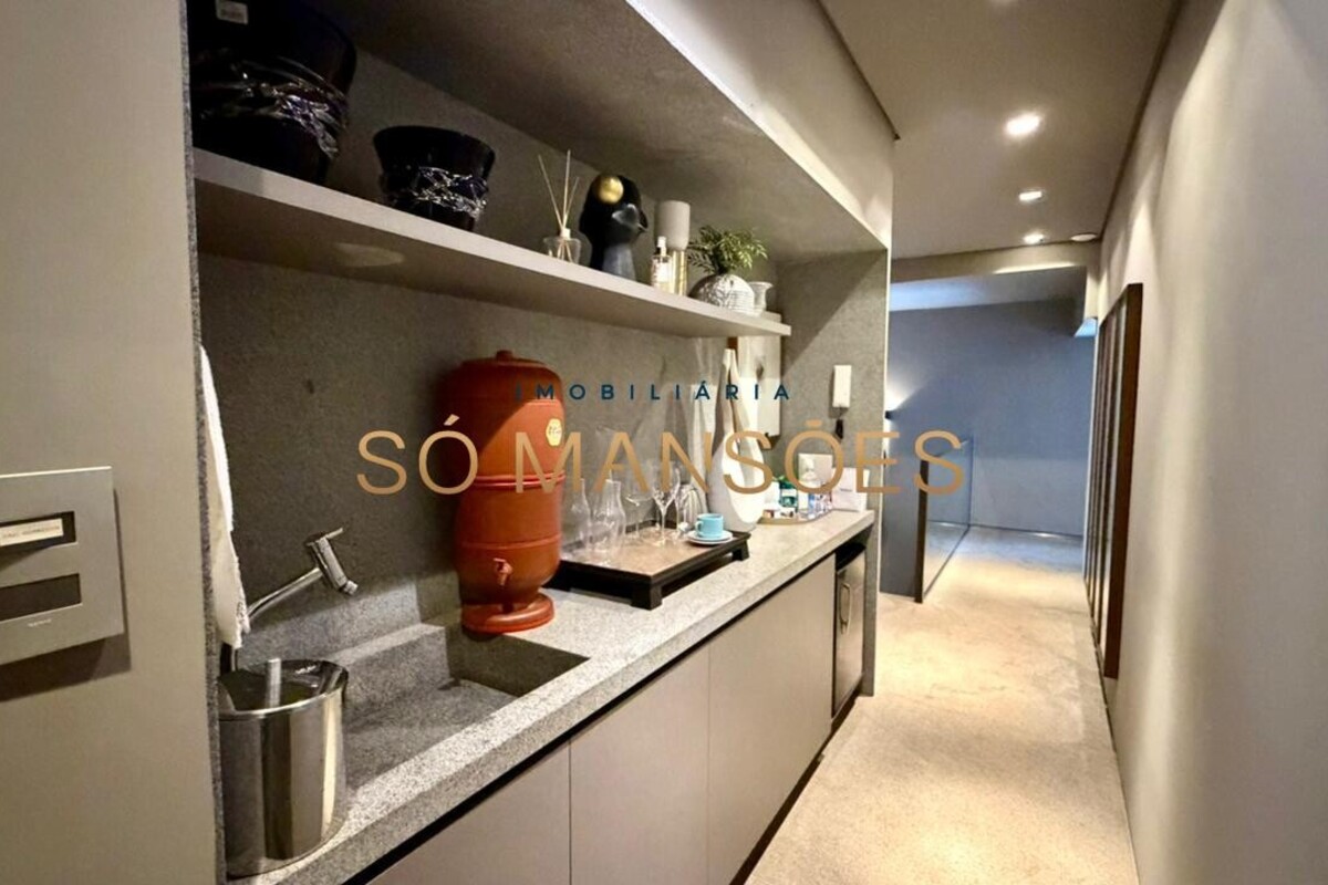 A casa apresenta acabamento em granito e madeira, além de contar com projeto luminotécnico, sistema de som, ar-condicionado nos quartos e na sala, persianas automatizadas e sistema de aquecimento de água.