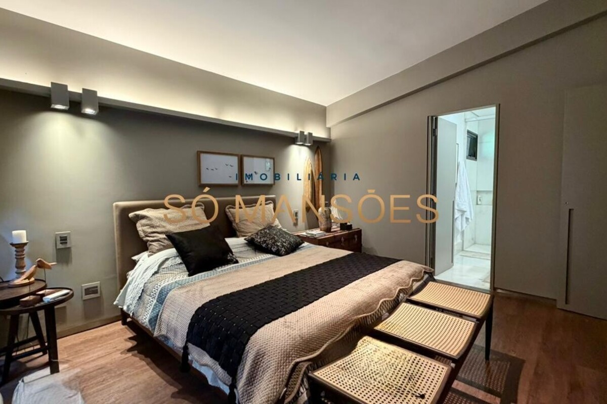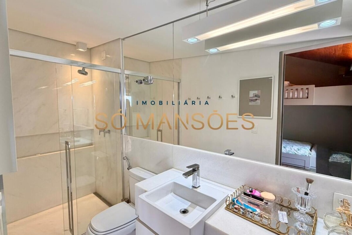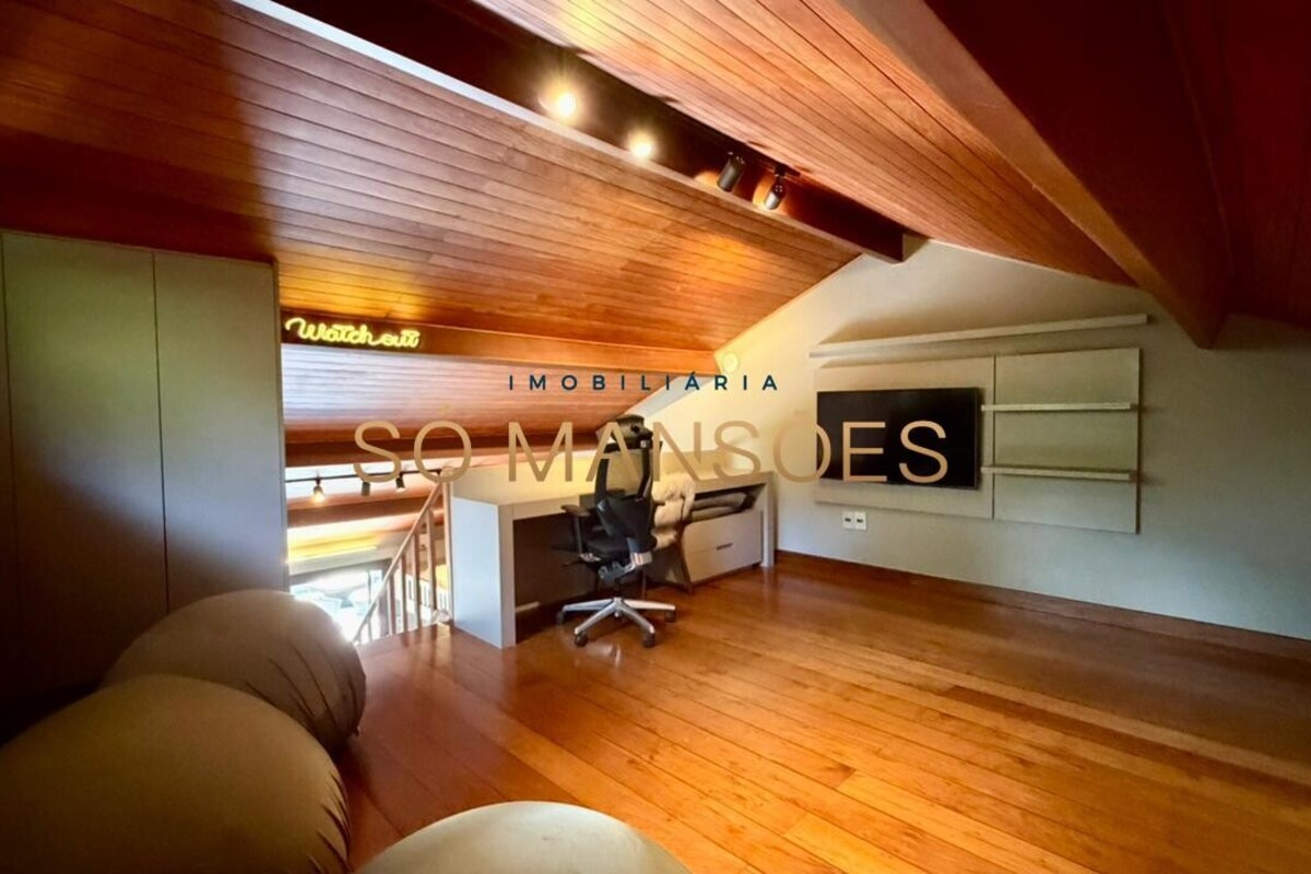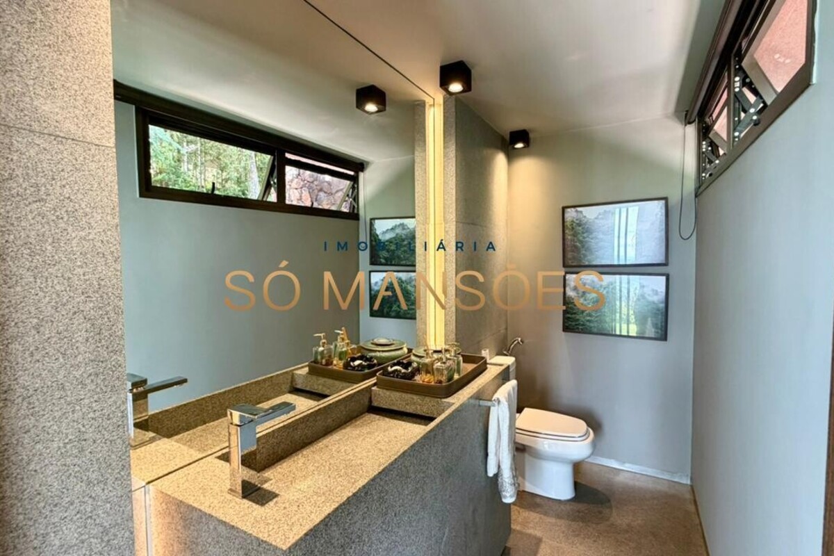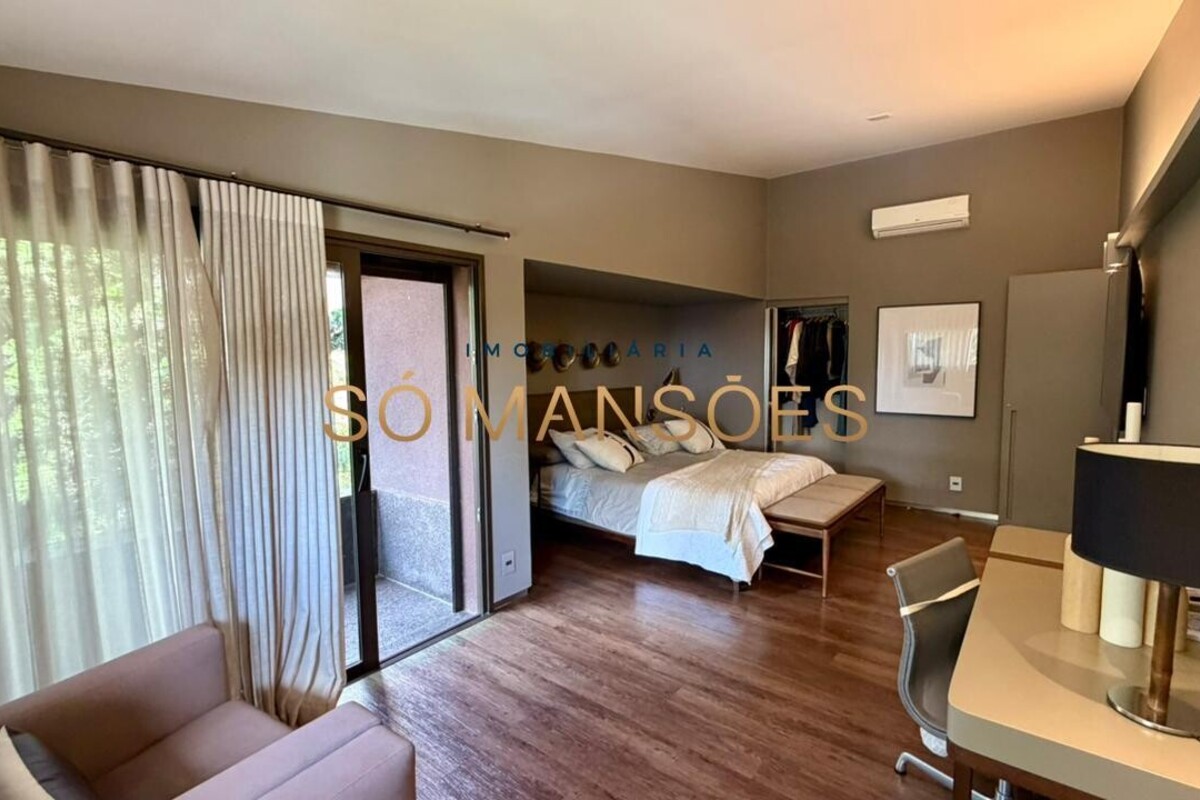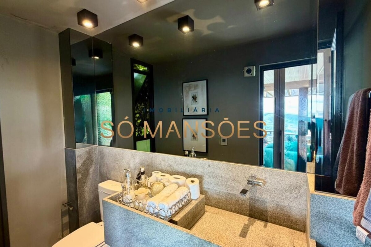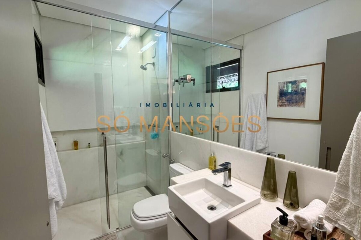 A casa apresenta acabamento em granito e madeira, além de contar com projeto luminotécnico, sistema de som, ar-condicionado nos quartos e na sala, persianas automatizadas e sistema de aquecimento de água.