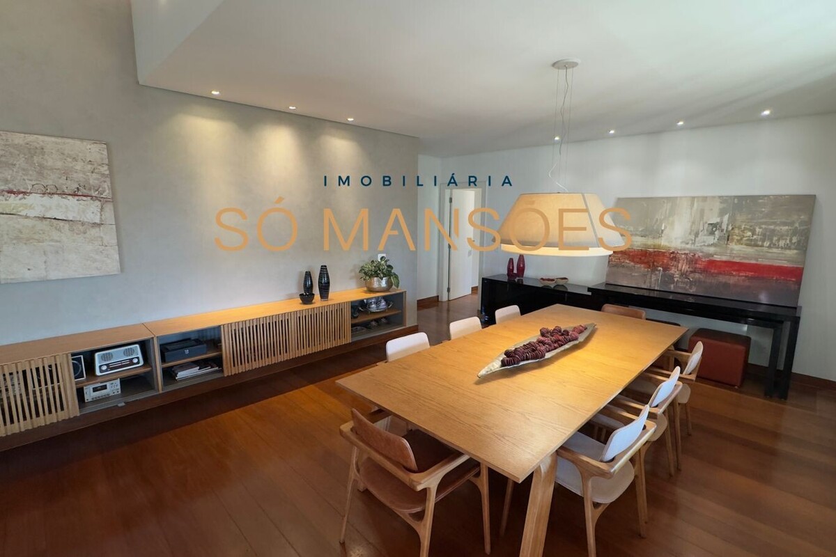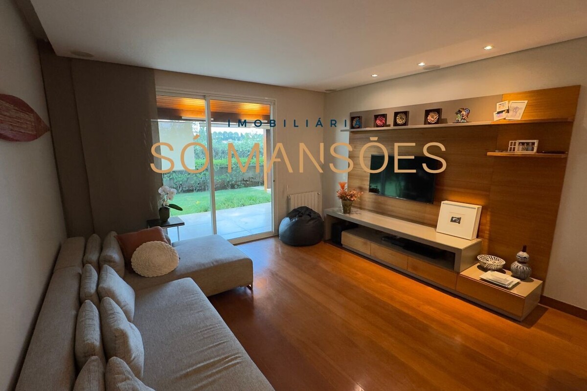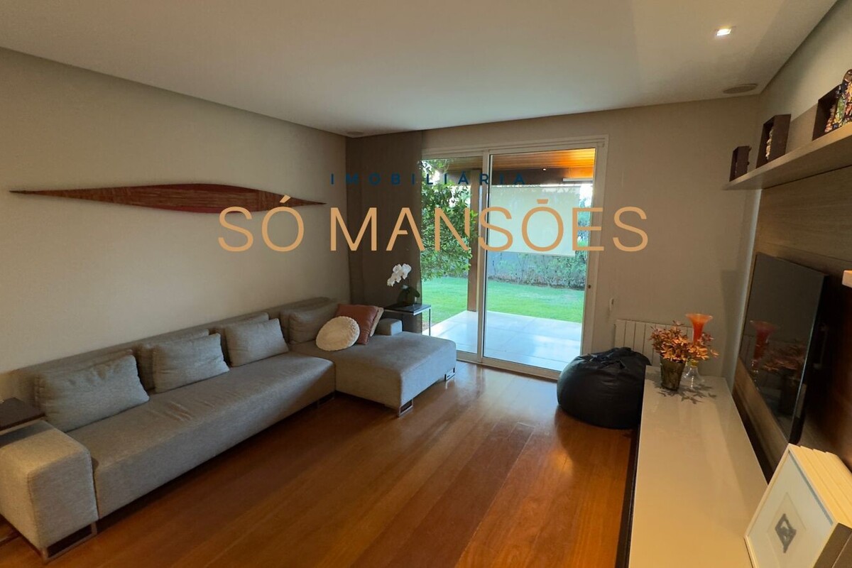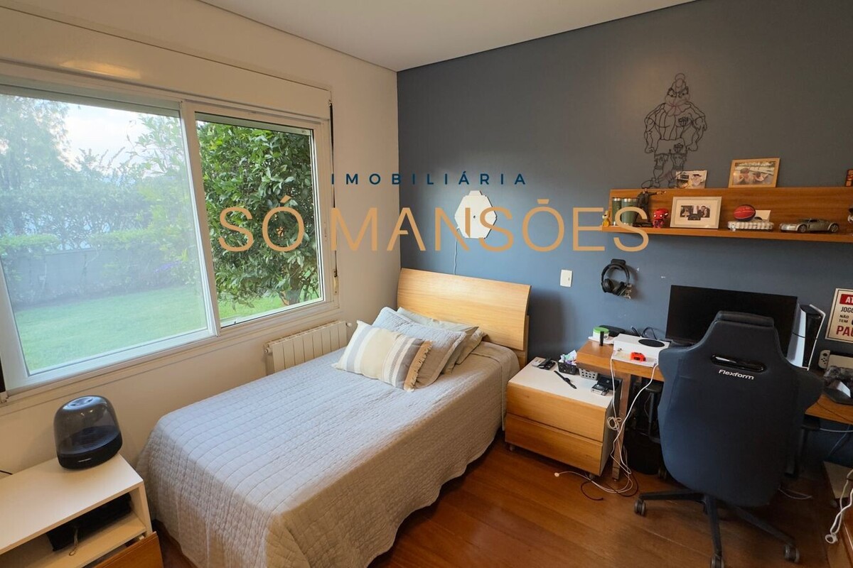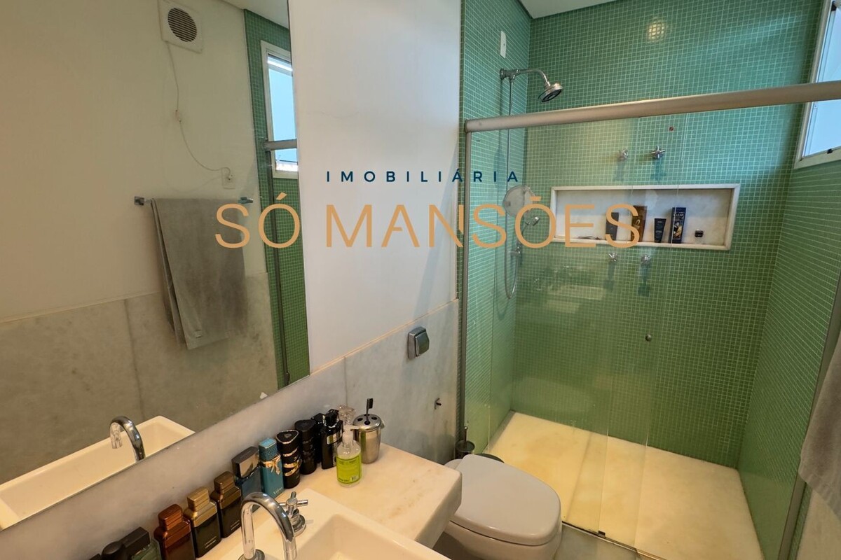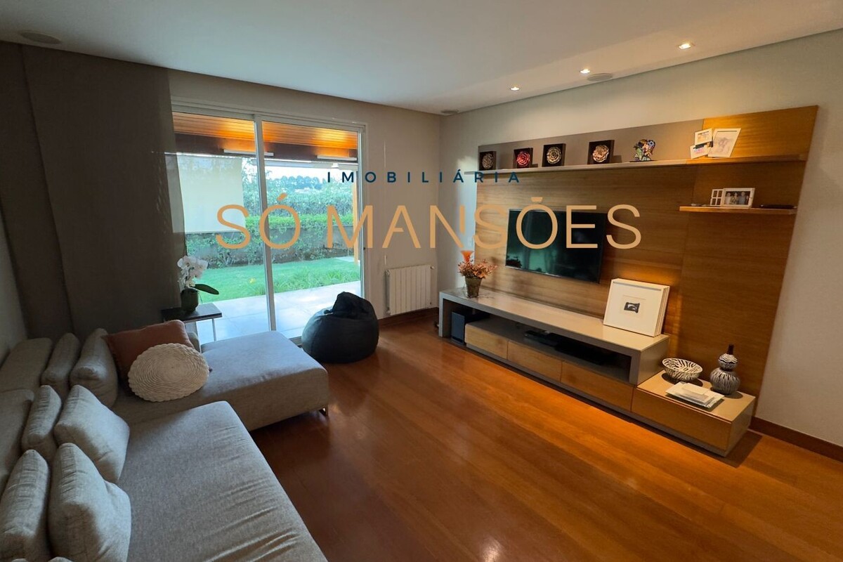 A área íntima conta com 4 suítes, todas com armários. A suíte master se destaca pela metragem generosa, banheiro em mármore com cubas duplas, banheira de hidromassagem, closet bem planejado e acesso direto ao jardim. Um espaço pensado para oferecer tranquilidade no dia a dia.