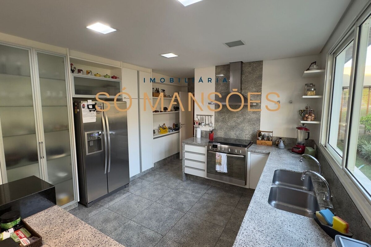 A cozinha é ampla e funcional, com bancadas em granito, espaço para refeições, despensa e acabamento de ótima qualidade. A casa também dispõe de lavabo, lavanderia e DCE.