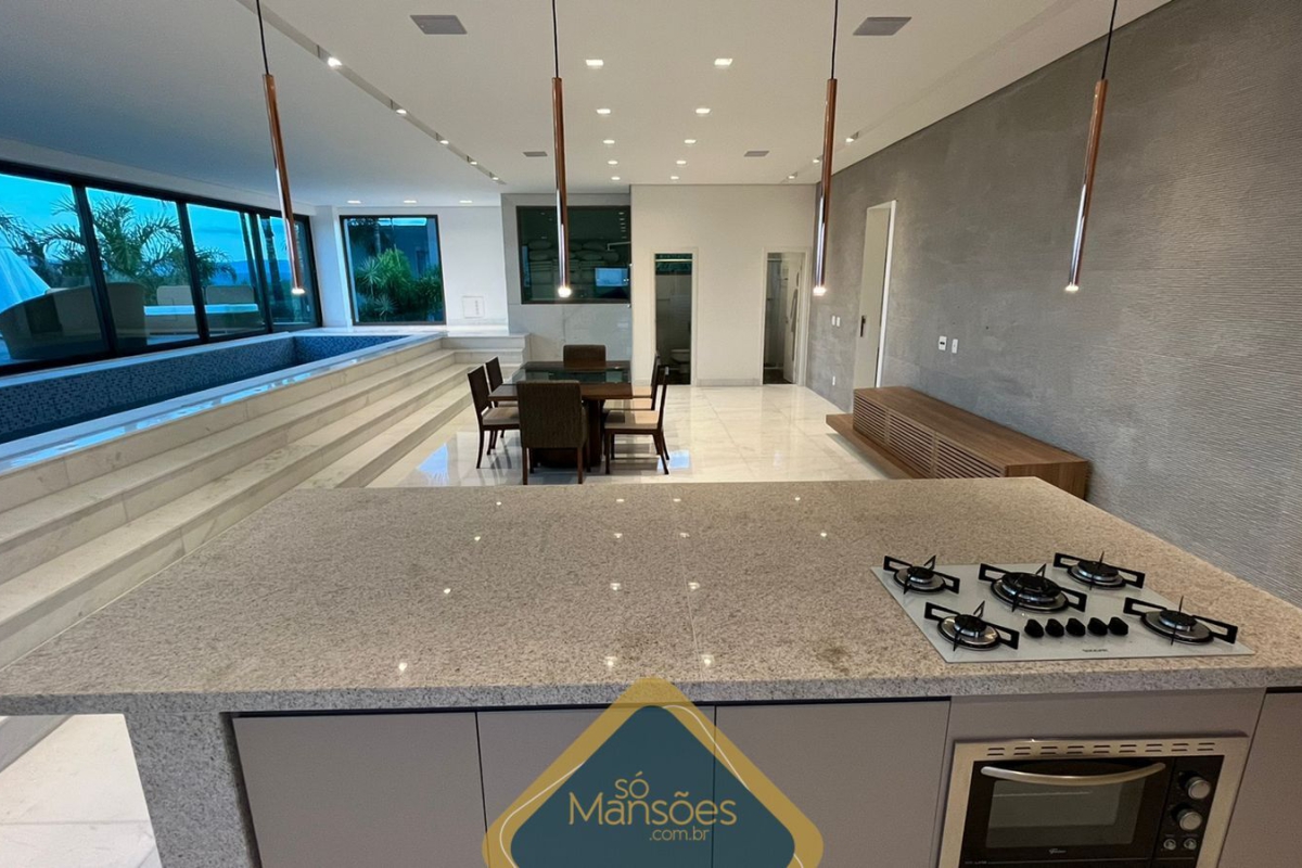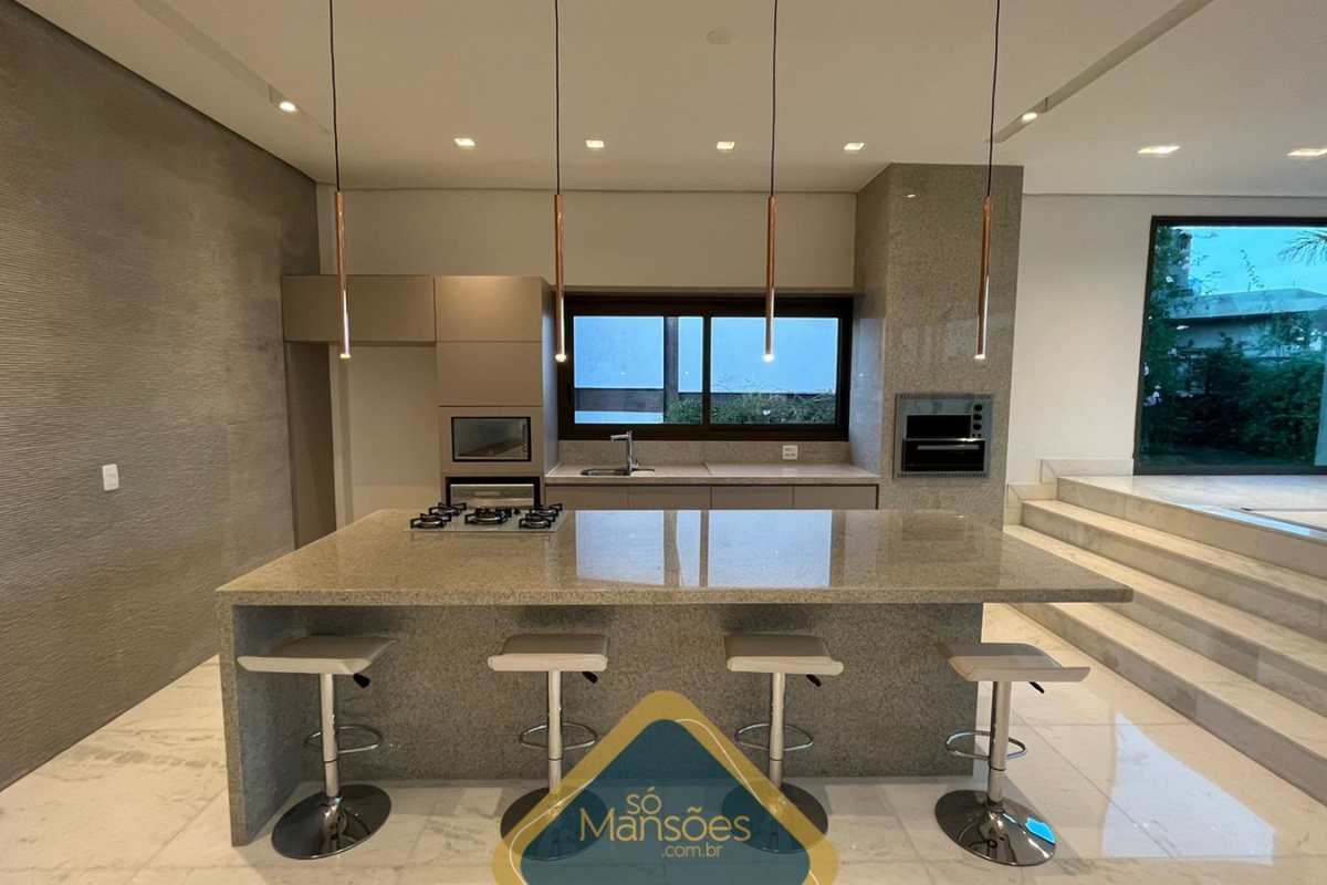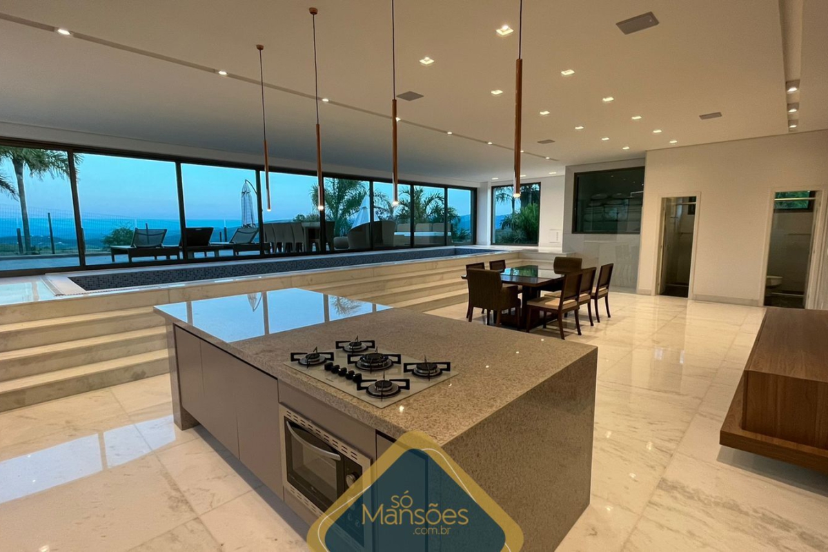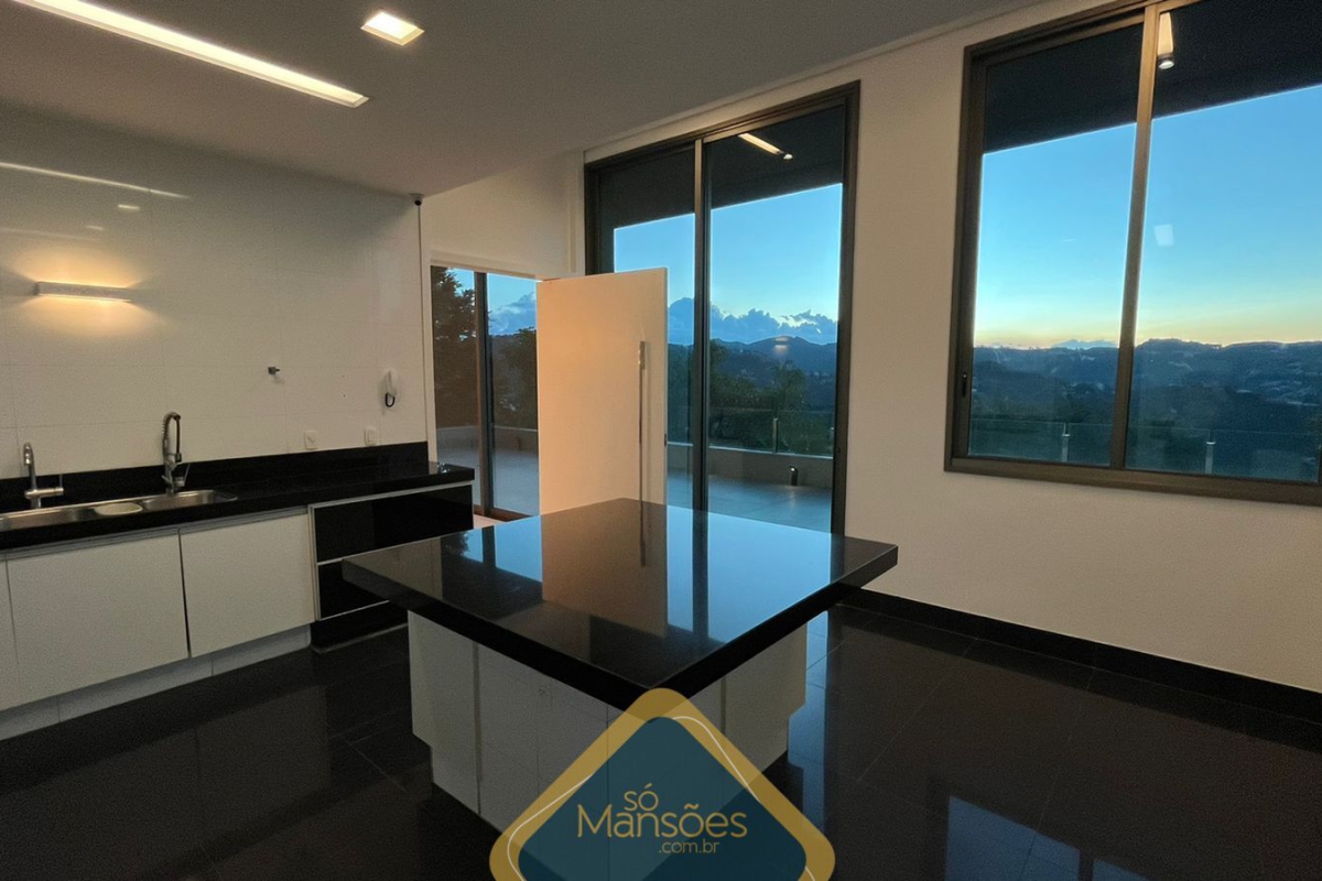 Localizada em uma posição privilegiada, a casa oferece uma vista panorâmica de 360° e está distribuída em 3 pavimentos. No pavimento de entrada, encontramos uma sala principal para 4 ambientes, 2 suítes, um amplo espaço gourmet, lavabo, varanda, cozinha com ilha, lavanderia e despensa. A área verde externa inclui um balanço, 2 quartos de funcionários e banheiro.