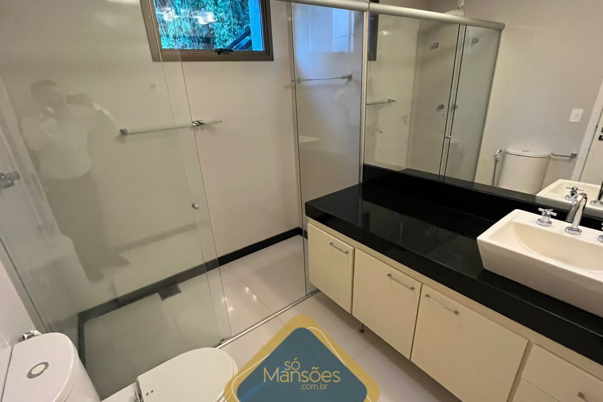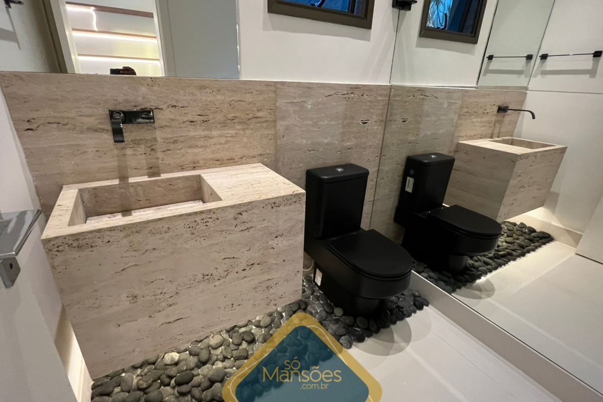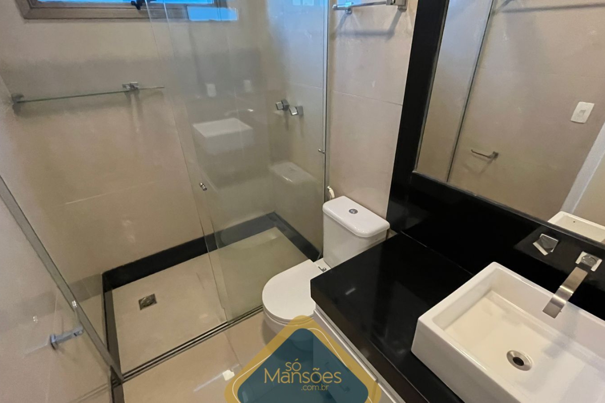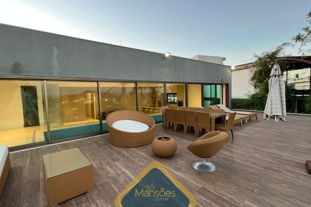 No pavimento superior, há um espaço gourmet completo, 2 banheiros (masculino e feminino), sauna, piscina coberta e um deck de madeira com uma vista deslumbrante. A área íntima possui uma rouparia, 3 suítes com banheira e closet, copa e varanda.