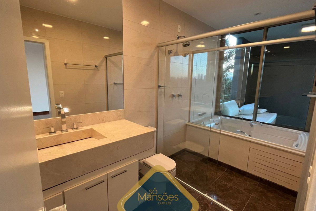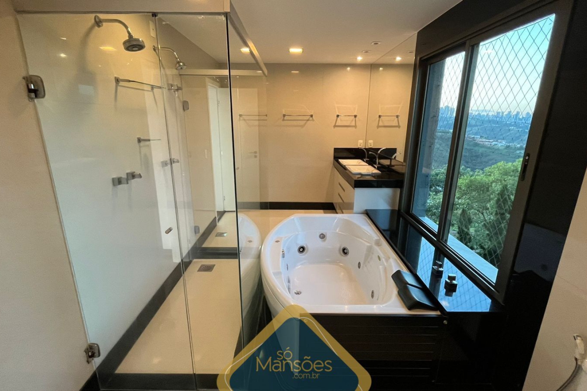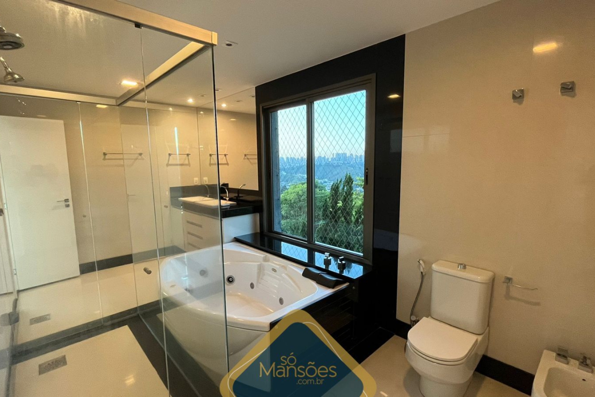 Na área íntima há uma rouparia, 3 suítes com banheira e closet, copa e varanda.