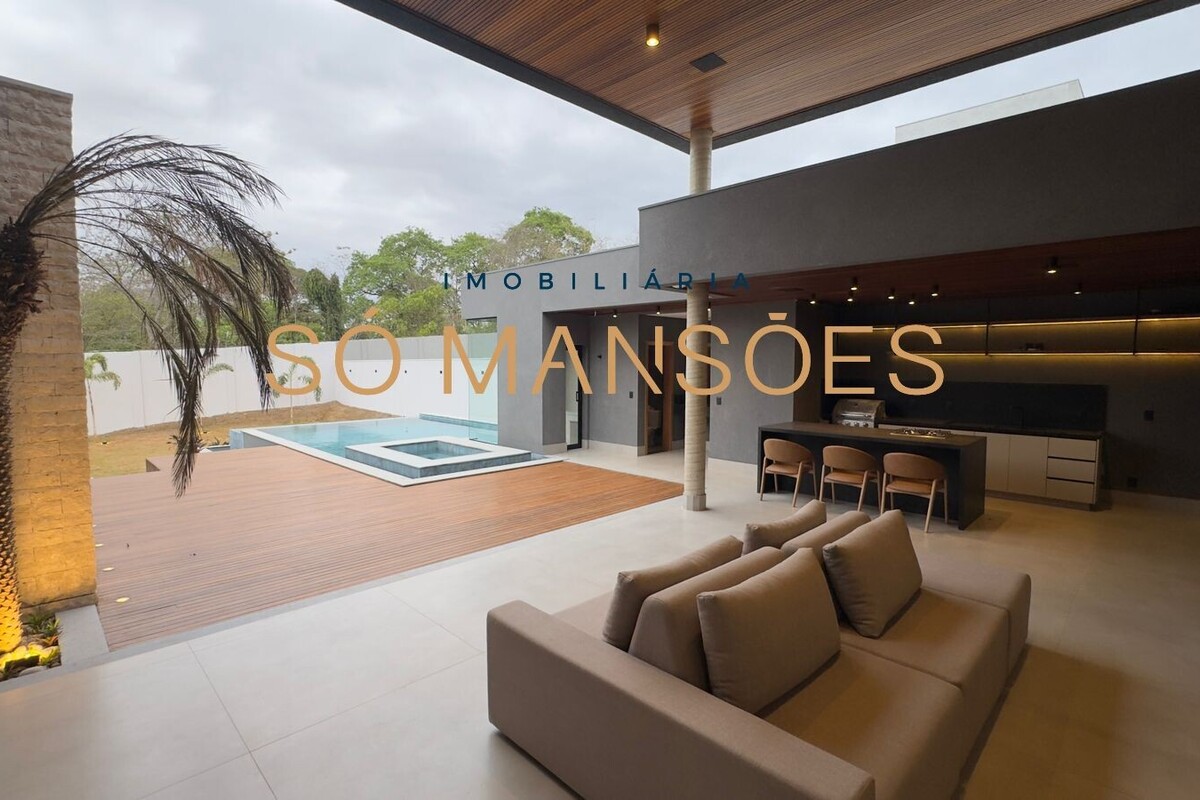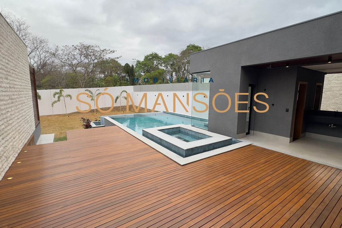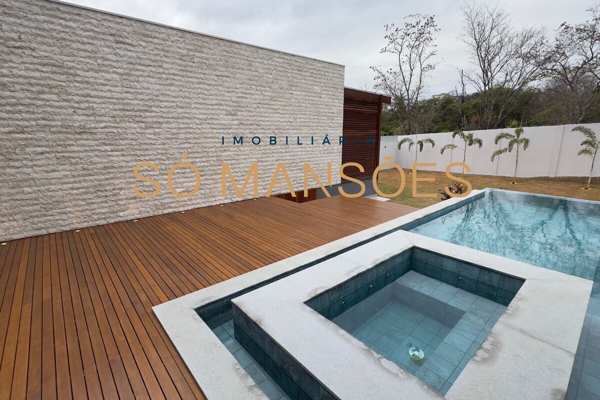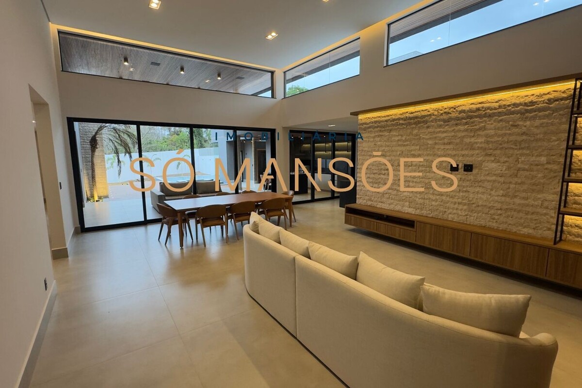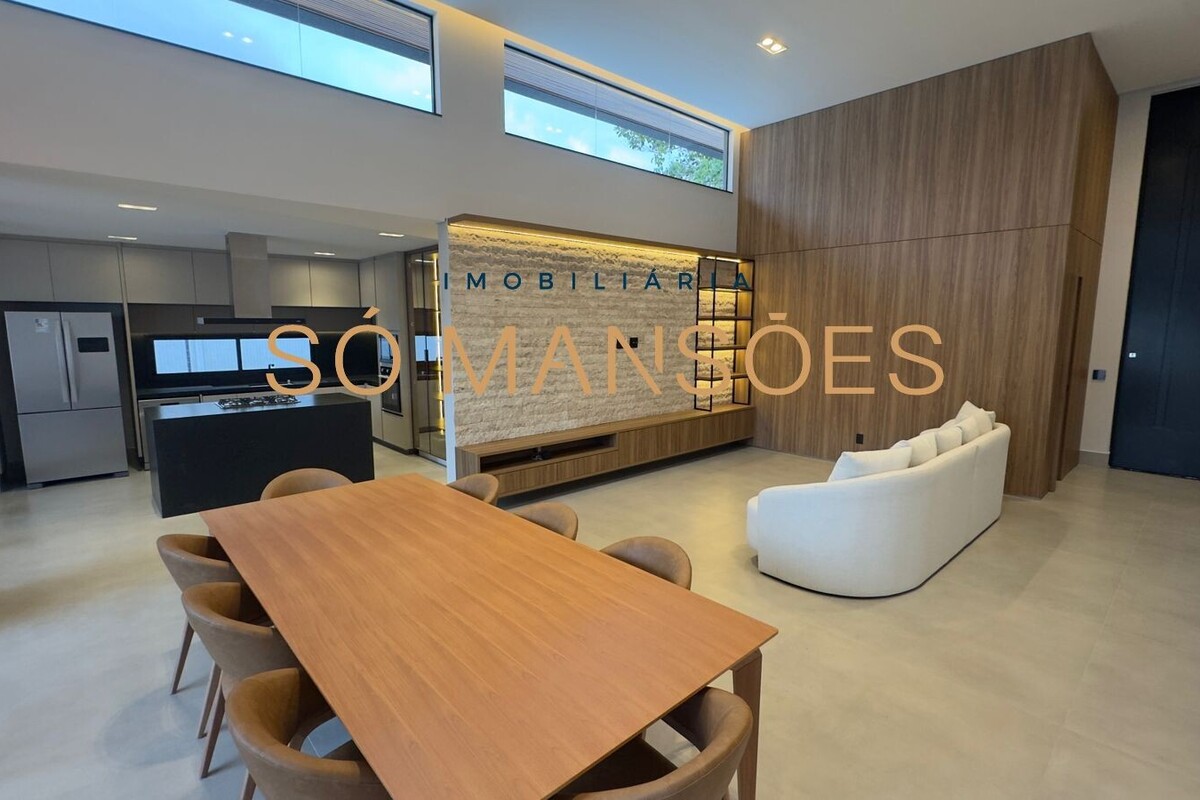 O living com pé-direito duplo se conecta harmoniosamente à cozinha com ilha central e ao espaço gourmet, criando um ambiente perfeito para receber com estilo. A área externa é um verdadeiro refúgio, com piscina com spa, sauna, deck elevado, fogo de chão e um paisagismo deslumbrante com gramado livre.