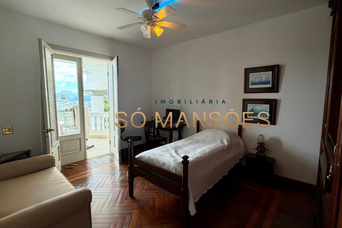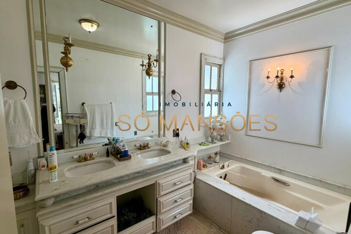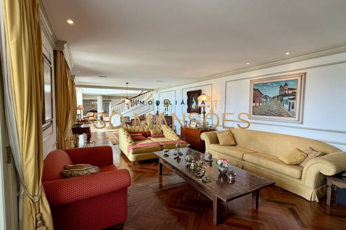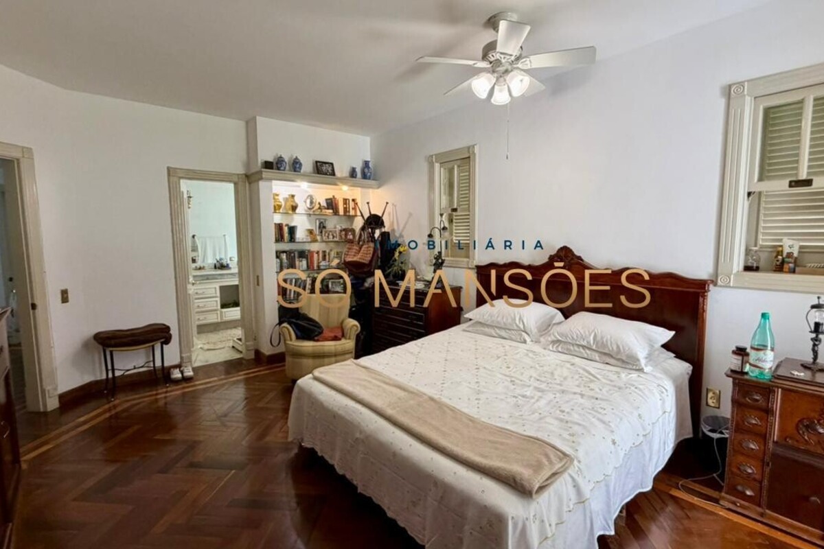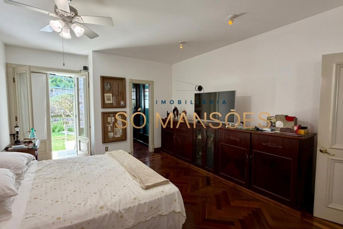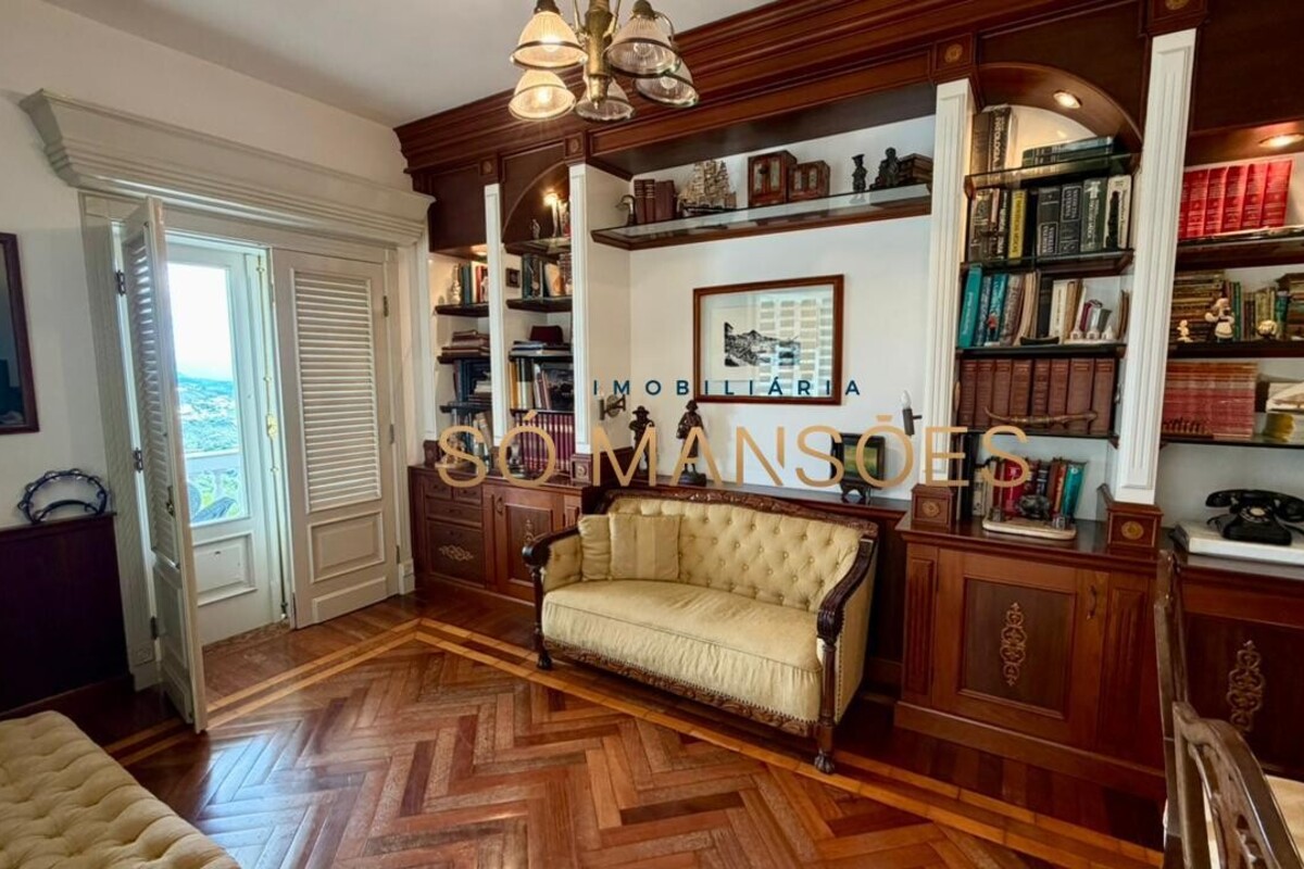 No primeiro pavimento, a casa conta com amplo hall de entrada. À direita, há um escritório com varanda, além de dois quartos com varanda e banheiro social. No lado esquerdo, o imóvel oferece estar íntimo com lareira, ponto de apoio com frigobar e pia, rouparia e três suítes, sendo duas delas com closet e banheiro com hidromassagem. Duas suítes possuem varanda e a suíte master conta com acesso direto ao jardim, que dispõe de cascata, proporcionando integração e conforto.