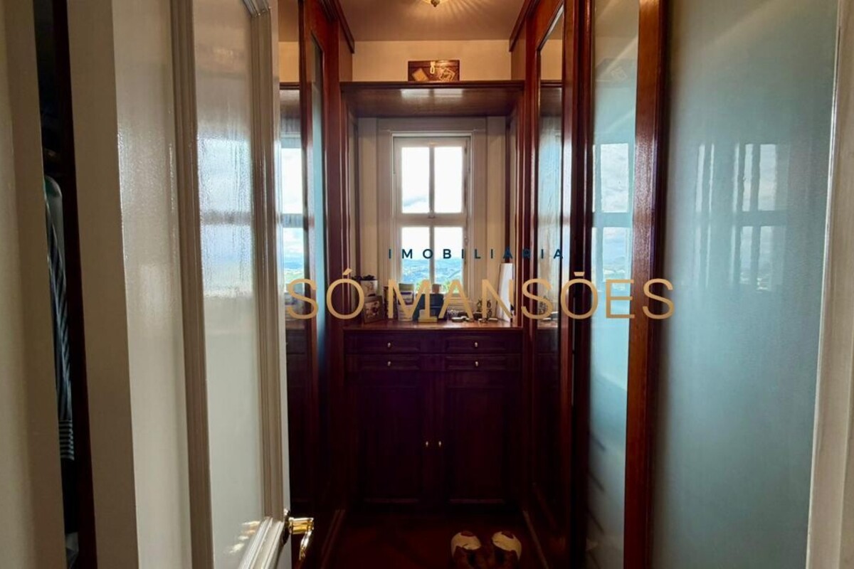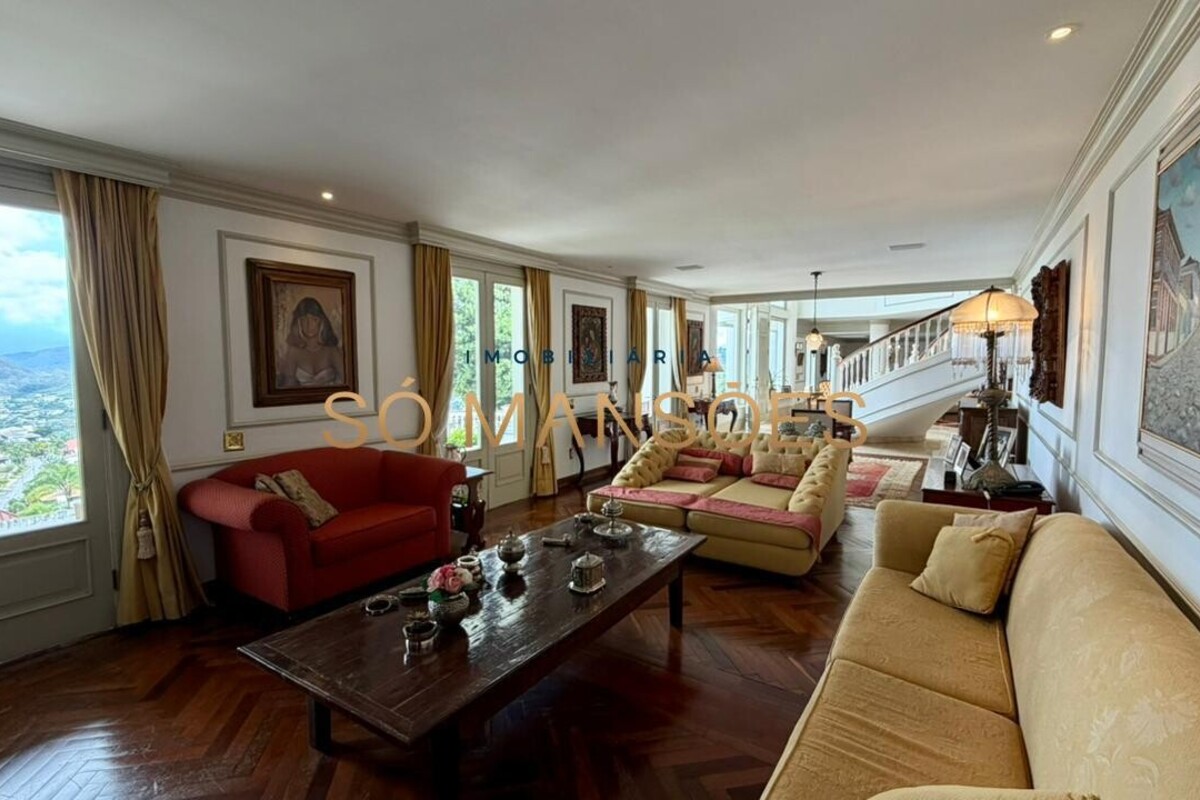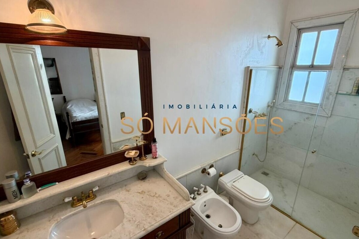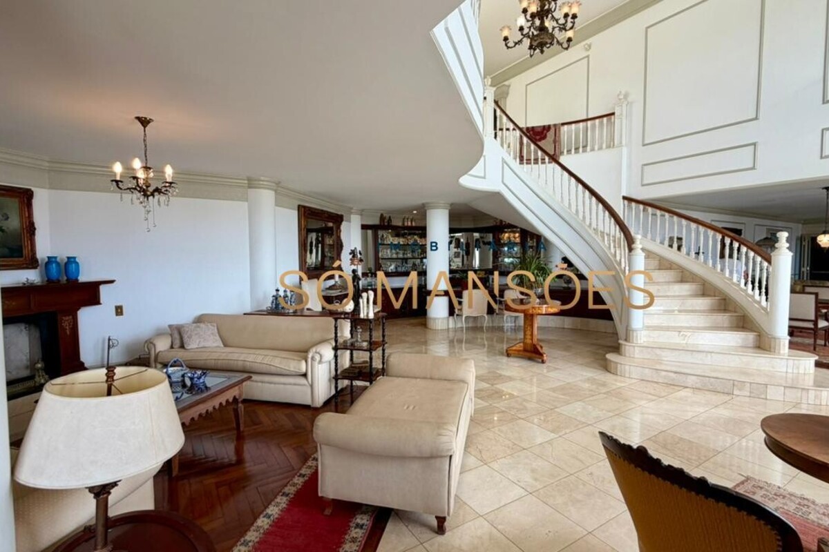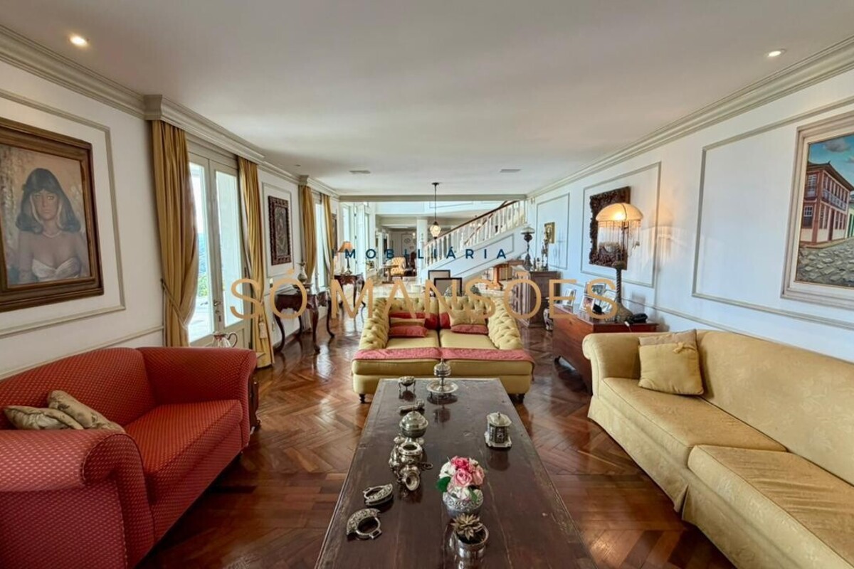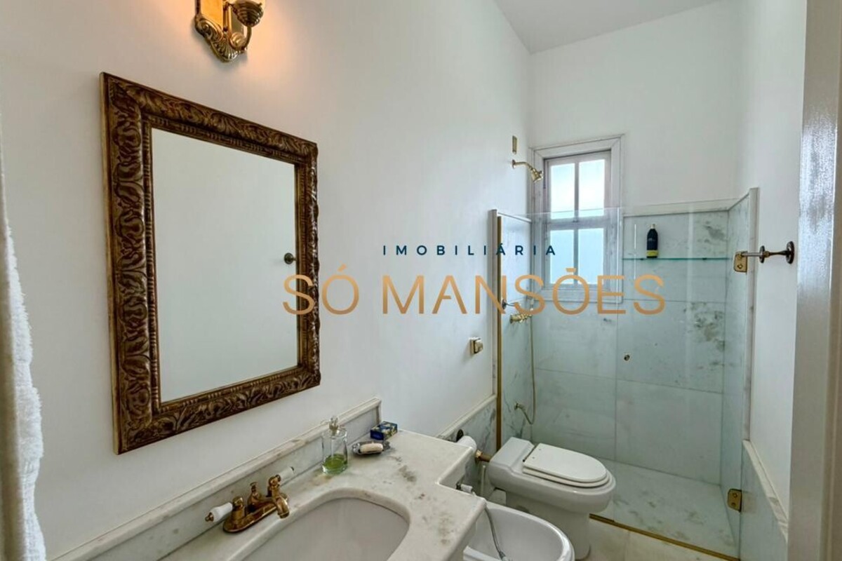 No primeiro pavimento, a casa conta com amplo hall de entrada. À direita, há um escritório com varanda, além de dois quartos com varanda e banheiro social. No lado esquerdo, o imóvel oferece estar íntimo com lareira, ponto de apoio com frigobar e pia, rouparia e três suítes, sendo duas delas com closet e banheiro com hidromassagem. Duas suítes possuem varanda e a suíte master conta com acesso direto ao jardim, que dispõe de cascata, proporcionando integração e conforto.