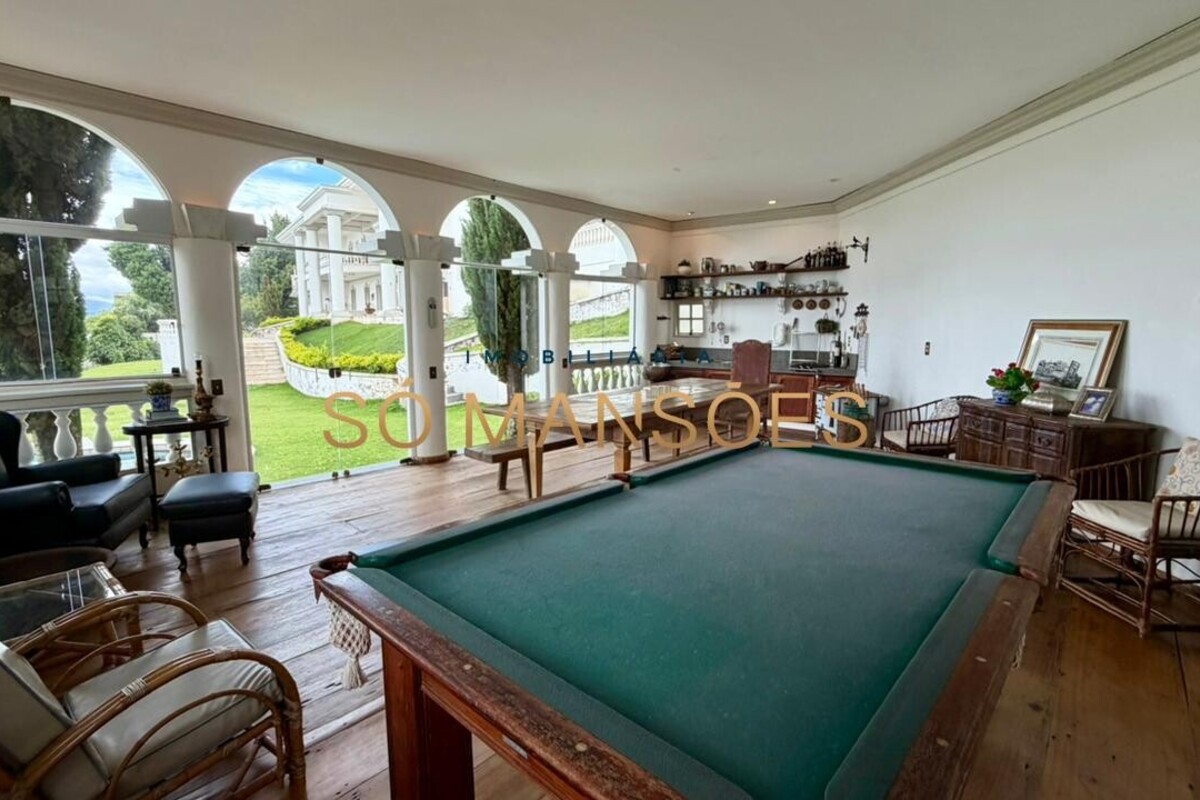 A partir da sala, há acesso a uma varanda ampla integrada ao jardim e à área da piscina. O quintal é amplo, bem distribuído e conta com pomar. O espaço gourmet é generoso, integrado à sala de jogos, e dispõe de banheiro de apoio, oferecendo funcionalidade para momentos de lazer e convivência.