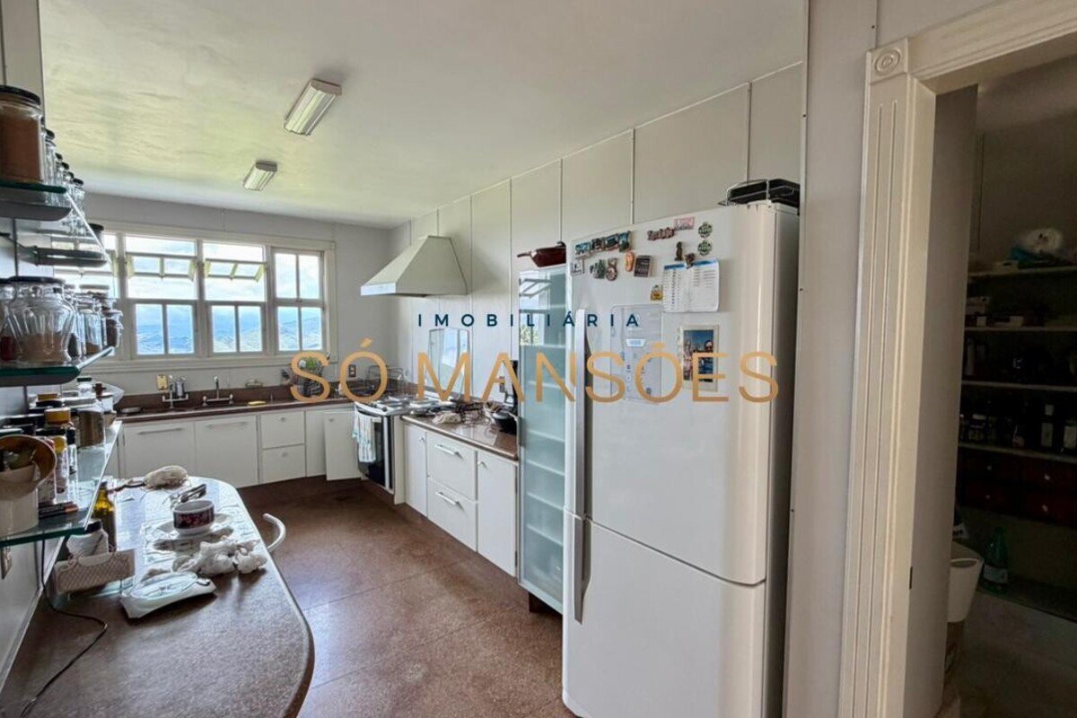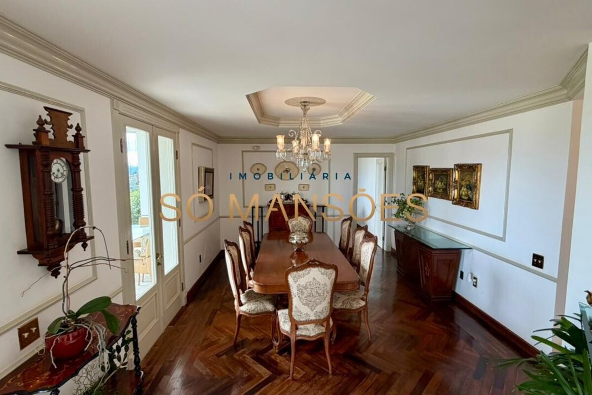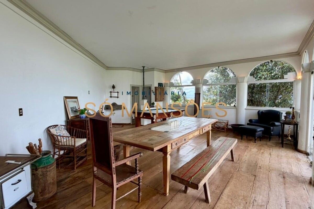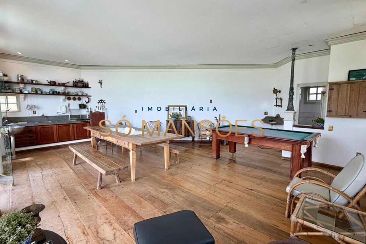 A residência conta ainda com um apartamento para caseiro, composto por sala integrada à cozinha e uma suíte, garantindo praticidade e apoio à manutenção do imóvel.