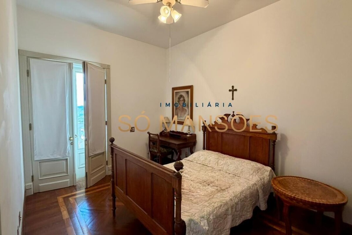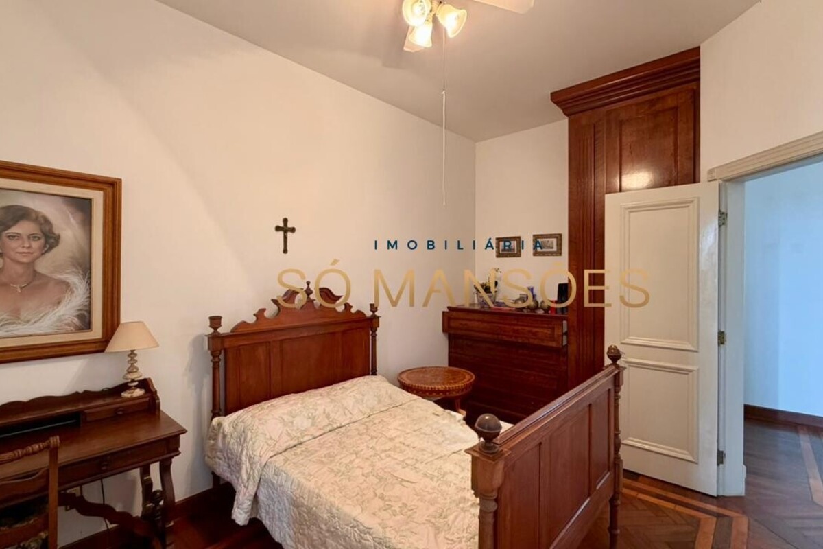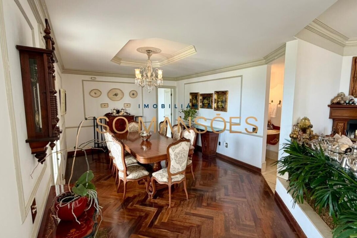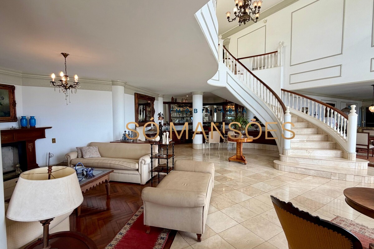 A residência conta ainda com um apartamento para caseiro, composto por sala integrada à cozinha e uma suíte, garantindo praticidade e apoio à manutenção do imóvel.