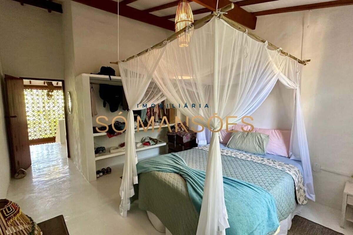 No pavimento superior, encontram-se quatro suítes, sendo a suíte master com varanda, proporcionando maior ventilação e luminosidade ao espaço.