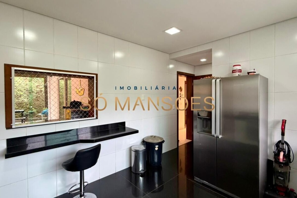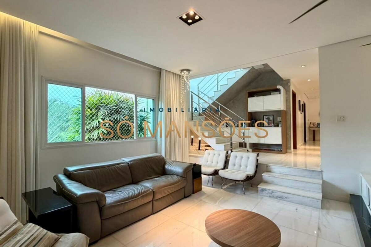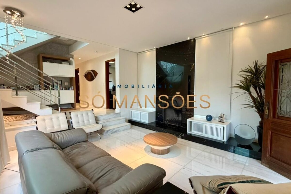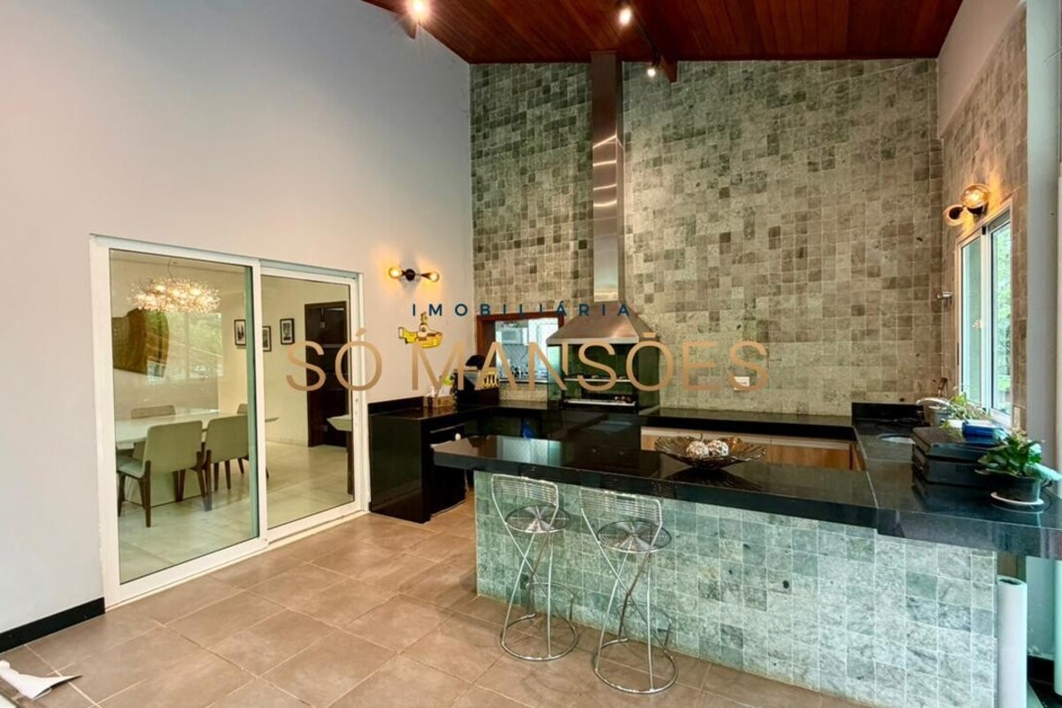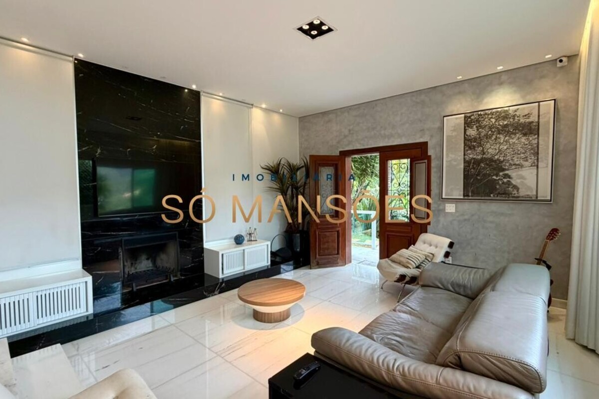 No primeiro pavimento, a área social apresenta ambientes bem distribuídos e acolhedores. A sala principal, com piso em mármore, é espaçosa e elegante, equipada com lareira e uma agradável vista para a mata. Neste pavimento encontram-se também um escritório com armário planejado, um quarto que pode ser utilizado como espaço para hóspedes ou brinquedoteca, banheiro de visitas, além de uma cozinha com piso em granito, armários planejados e despensa, integrada à sala de jantar.
