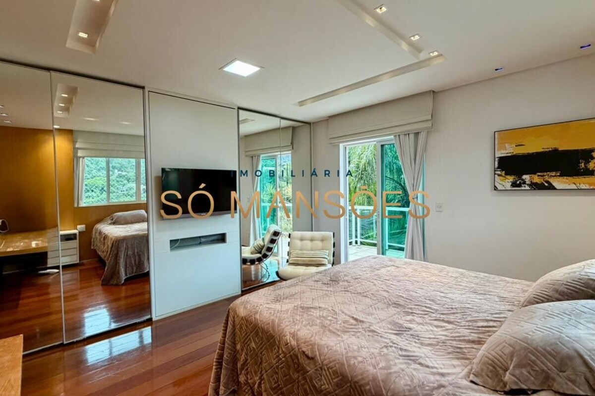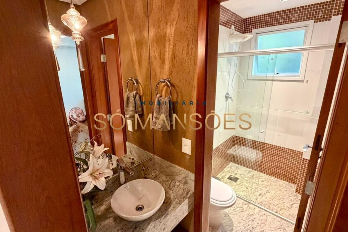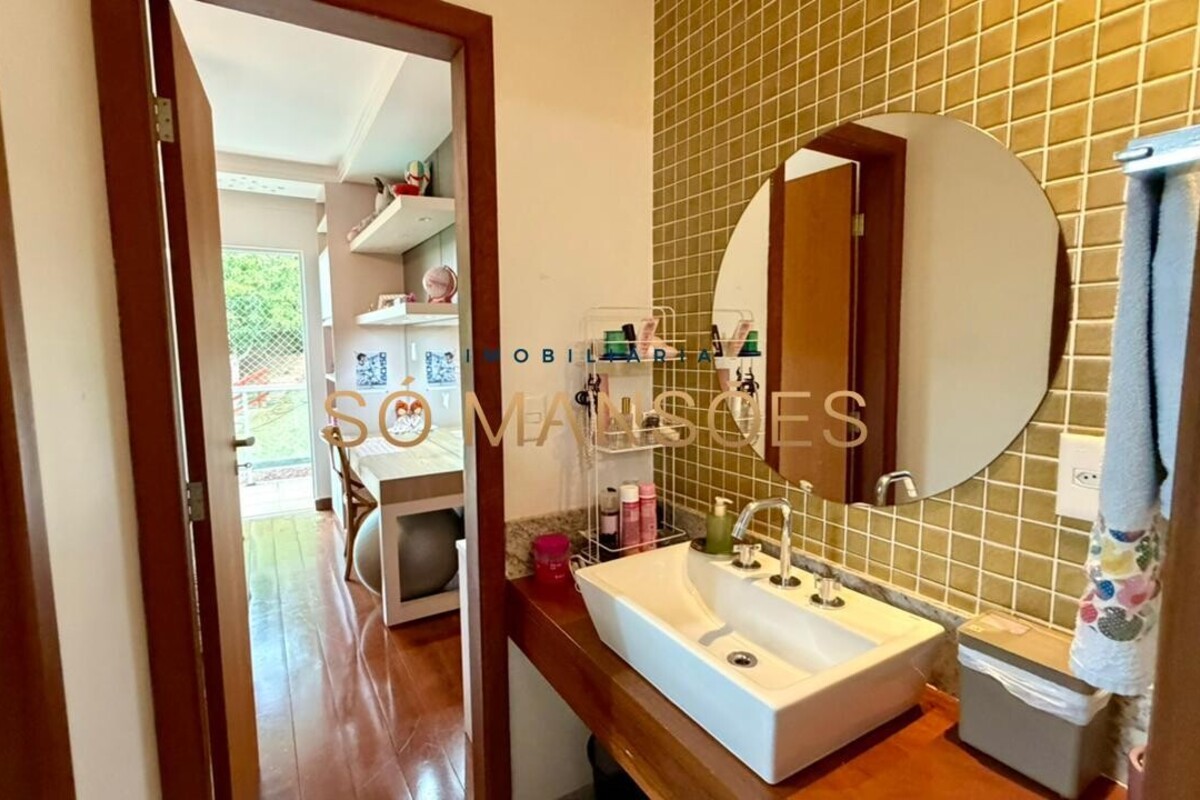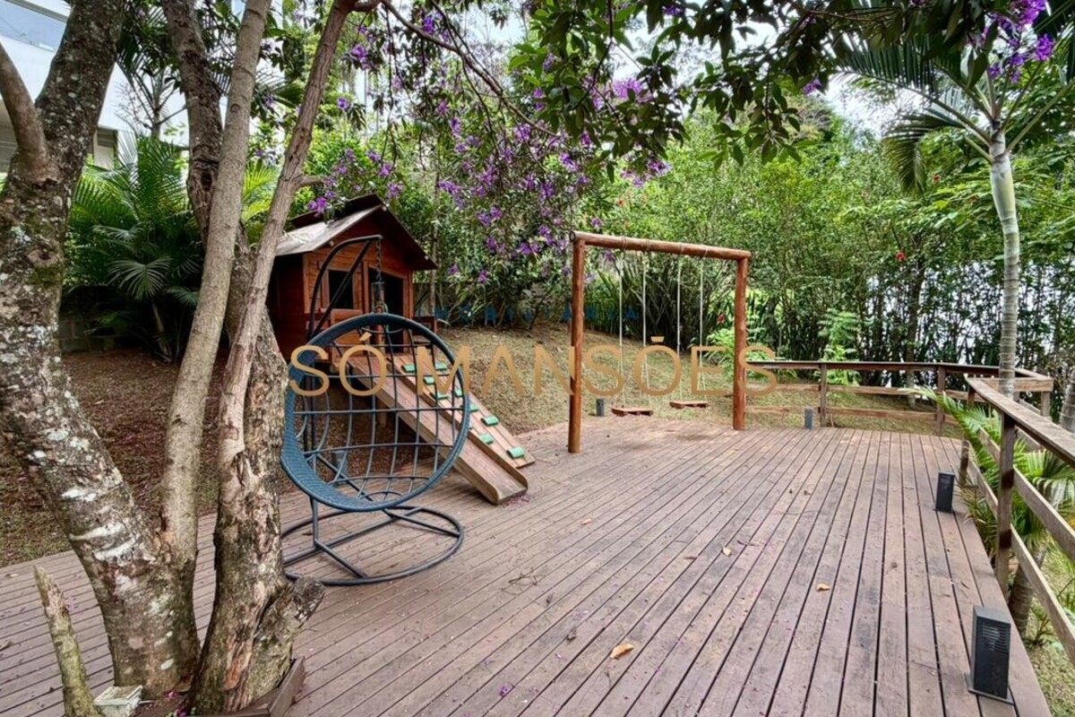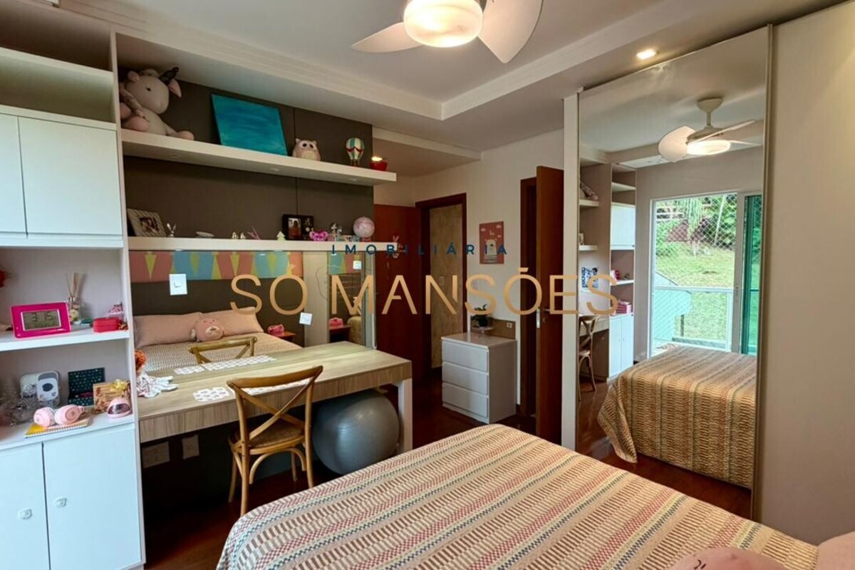 No segundo pavimento está a área íntima da residência, composta por quatro quartos, sendo duas suítes e duas semi-suítes. A suíte master se destaca pelo amplo closet, armários planejados, banheira de hidromassagem e varanda com vista para a mata. As duas semi-suítes possuem varandas amplas e agradáveis, enquanto a outra suíte oferece conforto e privacidade.