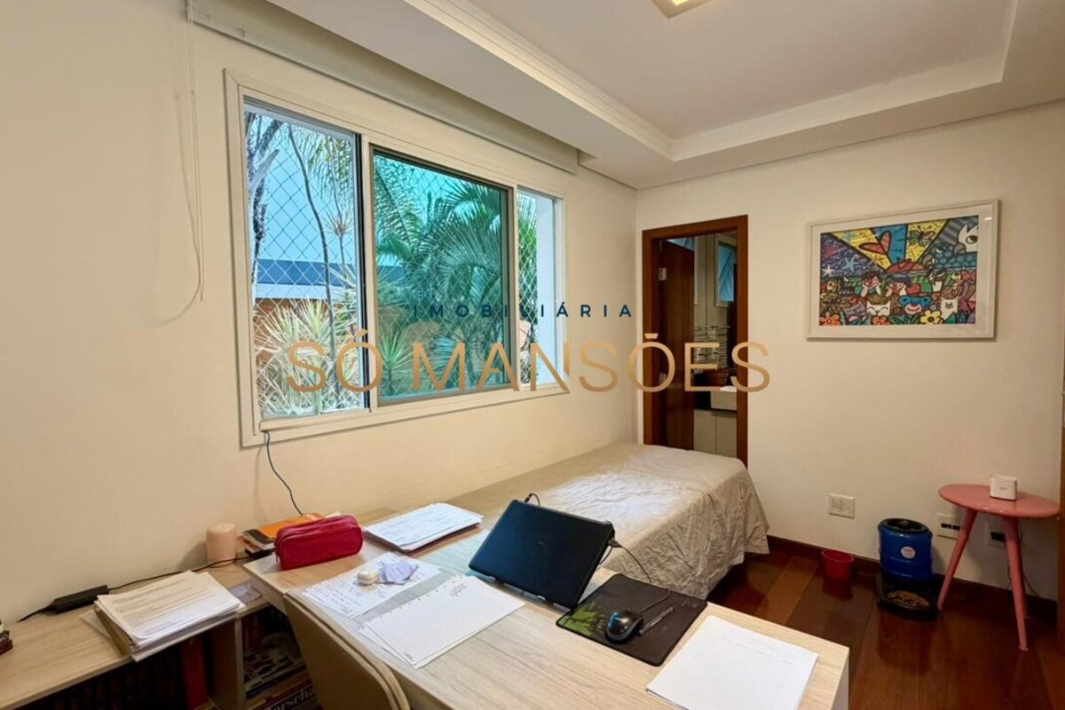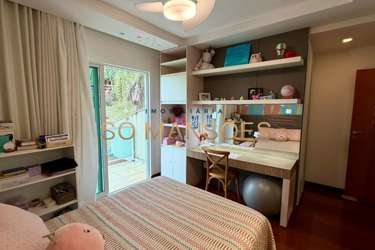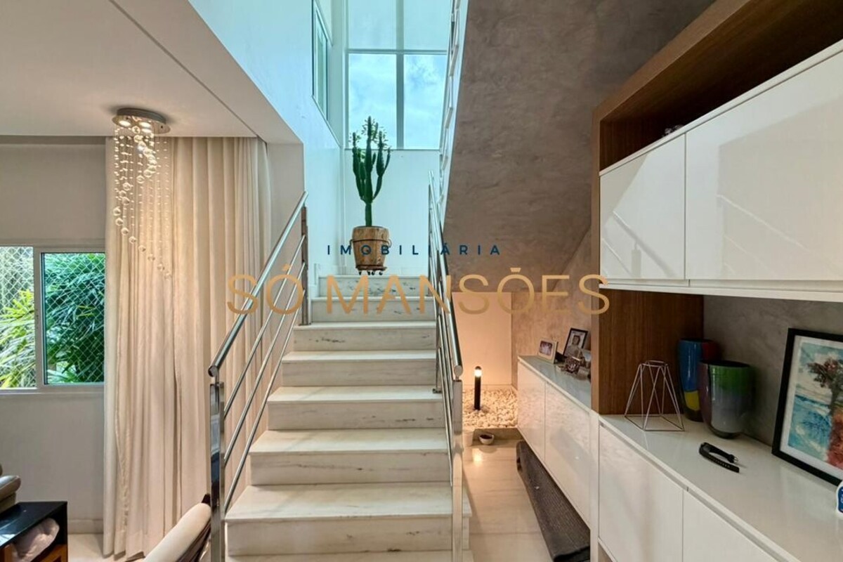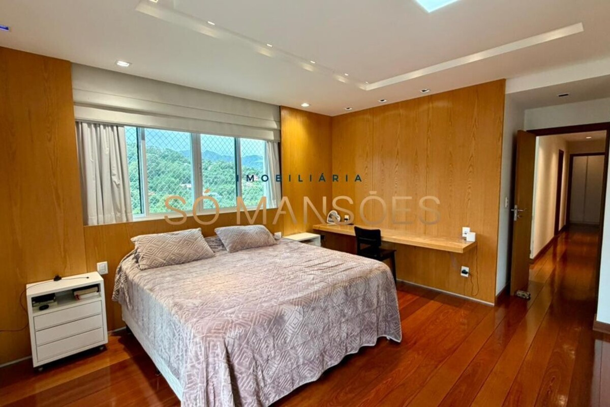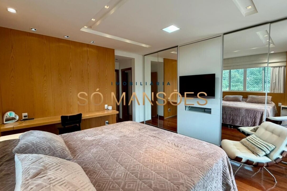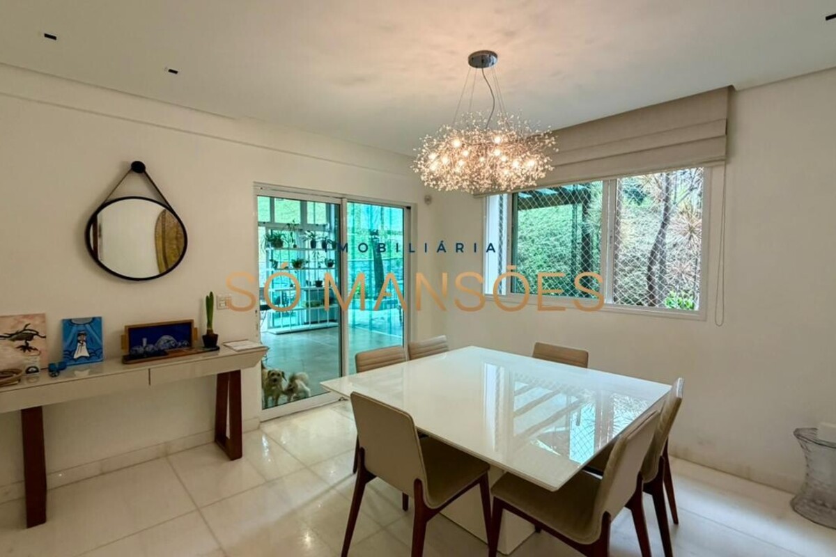 No segundo pavimento está a área íntima da residência, composta por quatro quartos, sendo duas suítes e duas semi-suítes. A suíte master se destaca pelo amplo closet, armários planejados, banheira de hidromassagem e varanda com vista para a mata. As duas semi-suítes possuem varandas amplas e agradáveis, enquanto a outra suíte oferece conforto e privacidade.