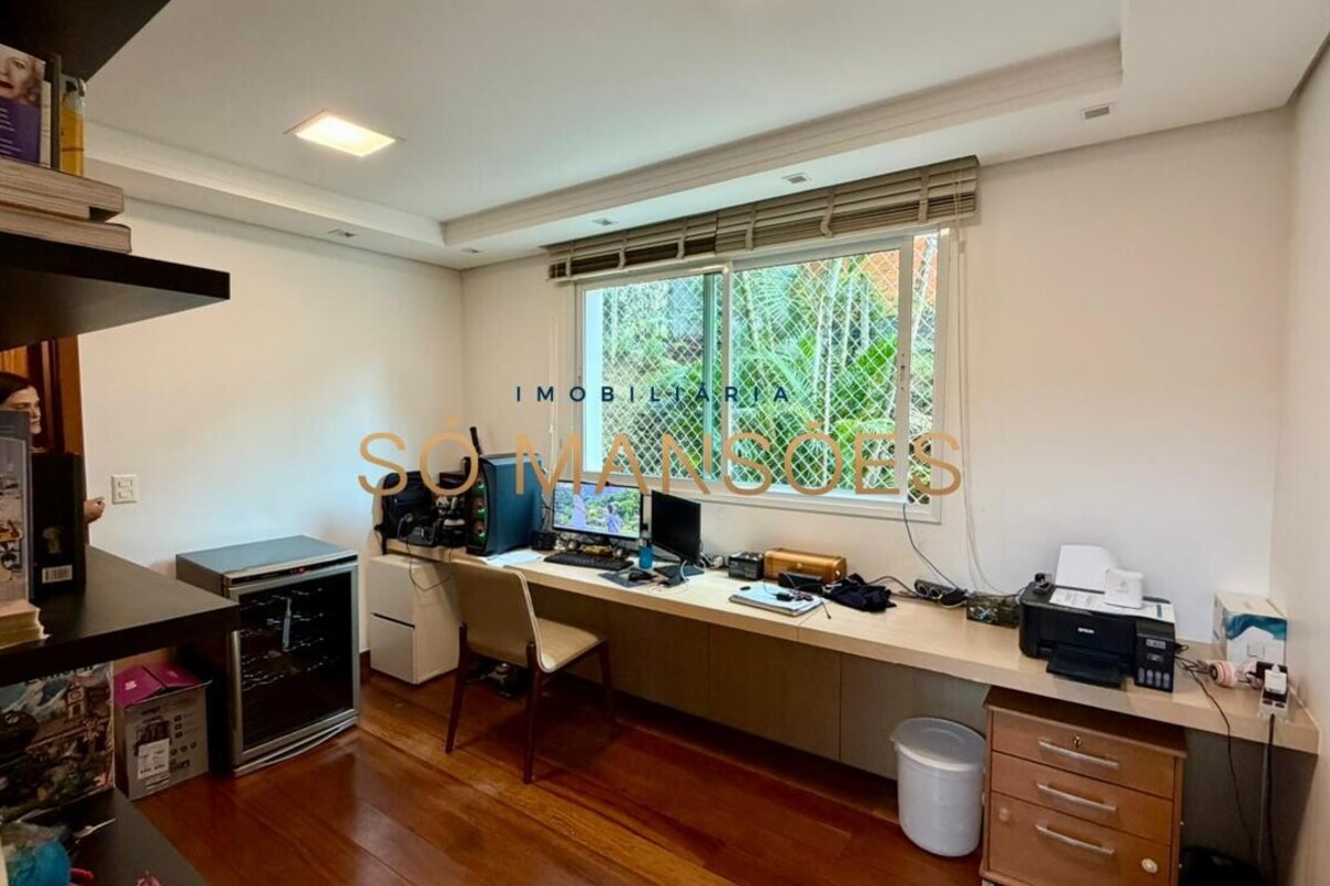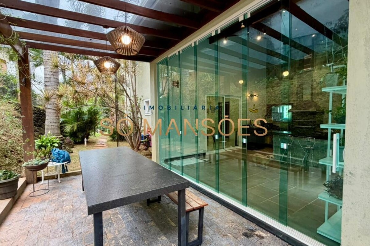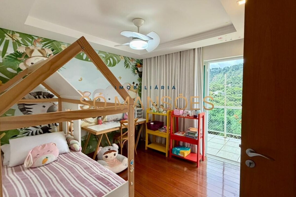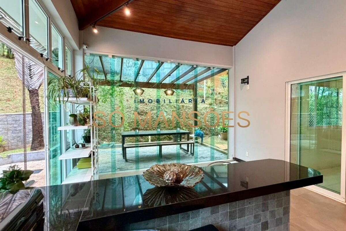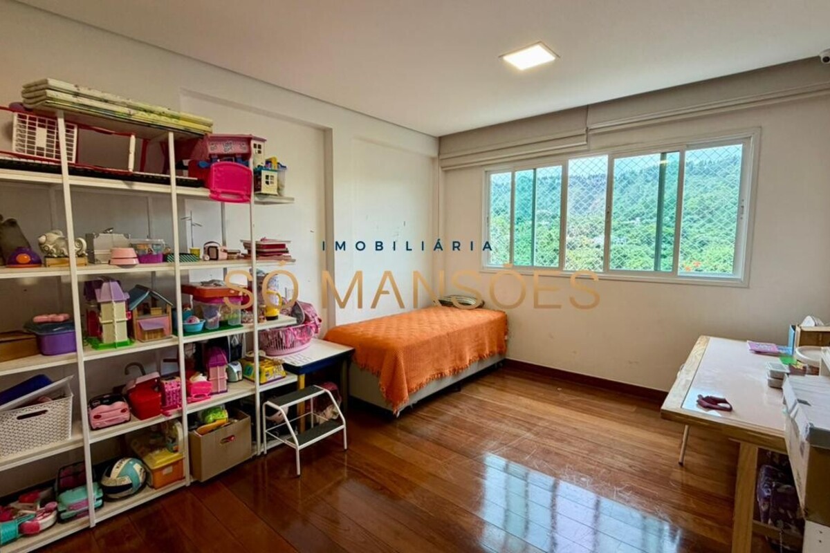 No segundo pavimento está a área íntima da residência, composta por quatro quartos, sendo duas suítes e duas semi-suítes. A suíte master se destaca pelo amplo closet, armários planejados, banheira de hidromassagem e varanda com vista para a mata. As duas semi-suítes possuem varandas amplas e agradáveis, enquanto a outra suíte oferece conforto e privacidade.
