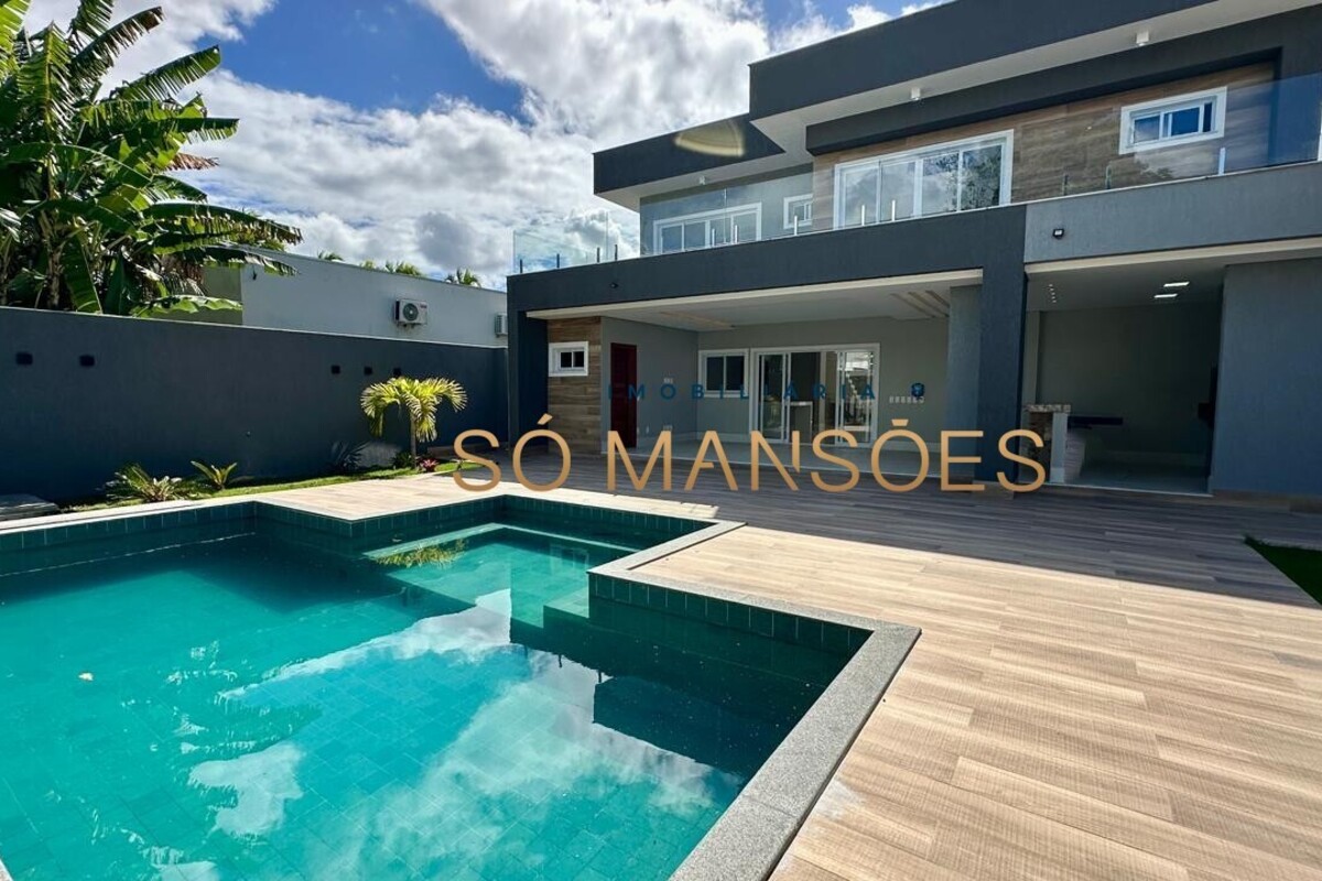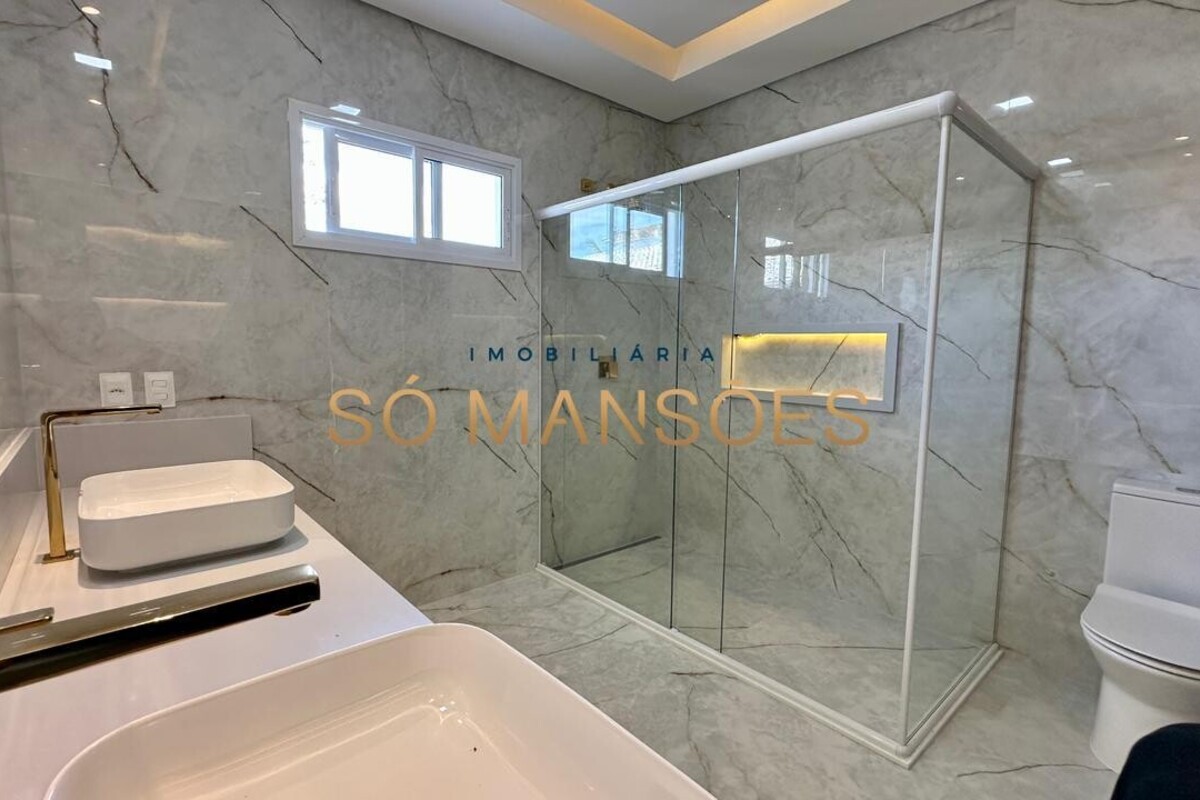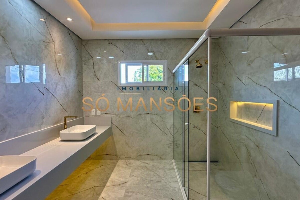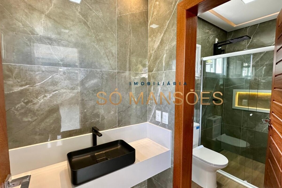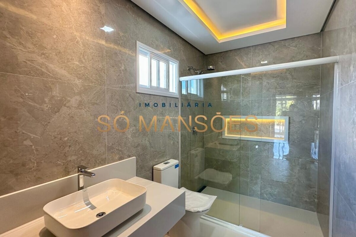 Os acabamentos incluem porcelanato, nanoglass, quartz e ônix. A casa também possui projeto luminotécnico e paisagismo, além de oferecer quatro vagas de garagem sendo duas cobertas e duas descobertas. O sistema de aquecimento solar e o pressurizador nas torneiras garantem mais eficiência e conforto.