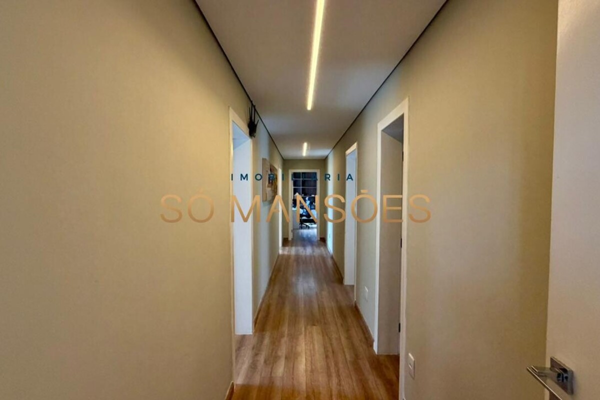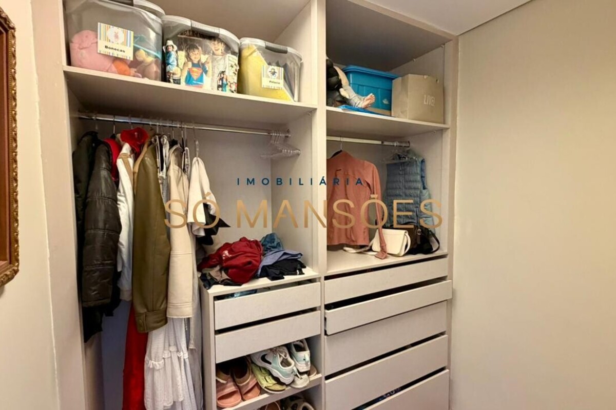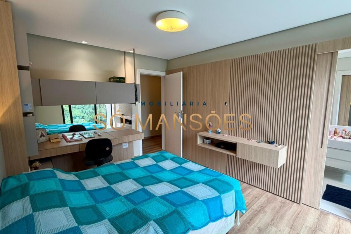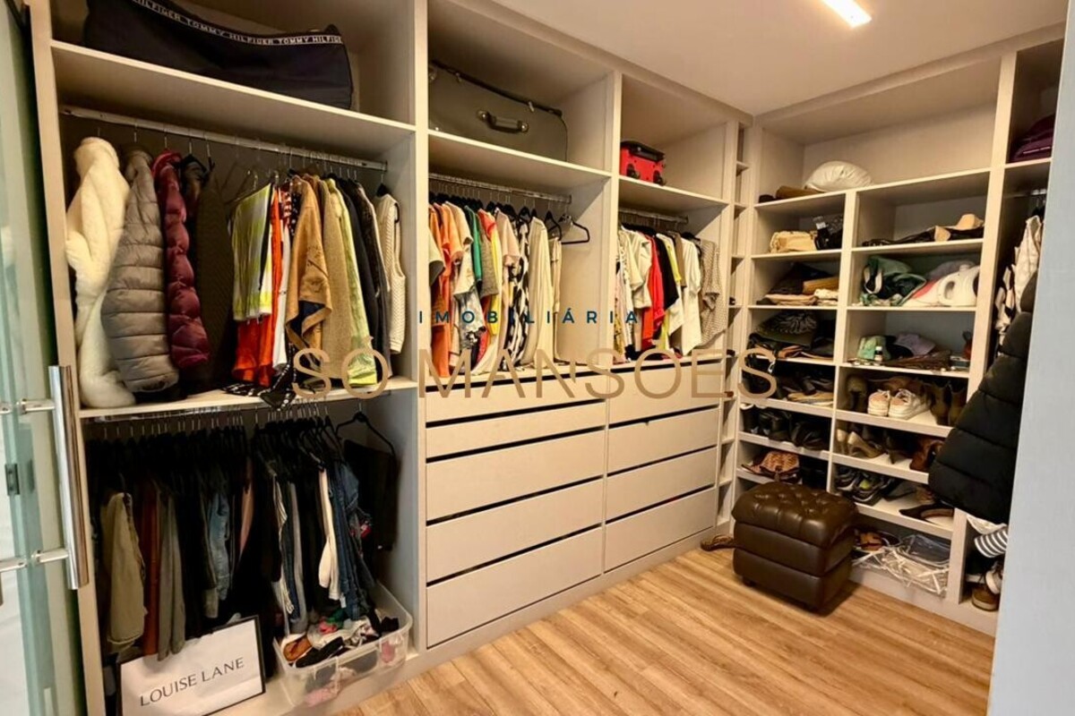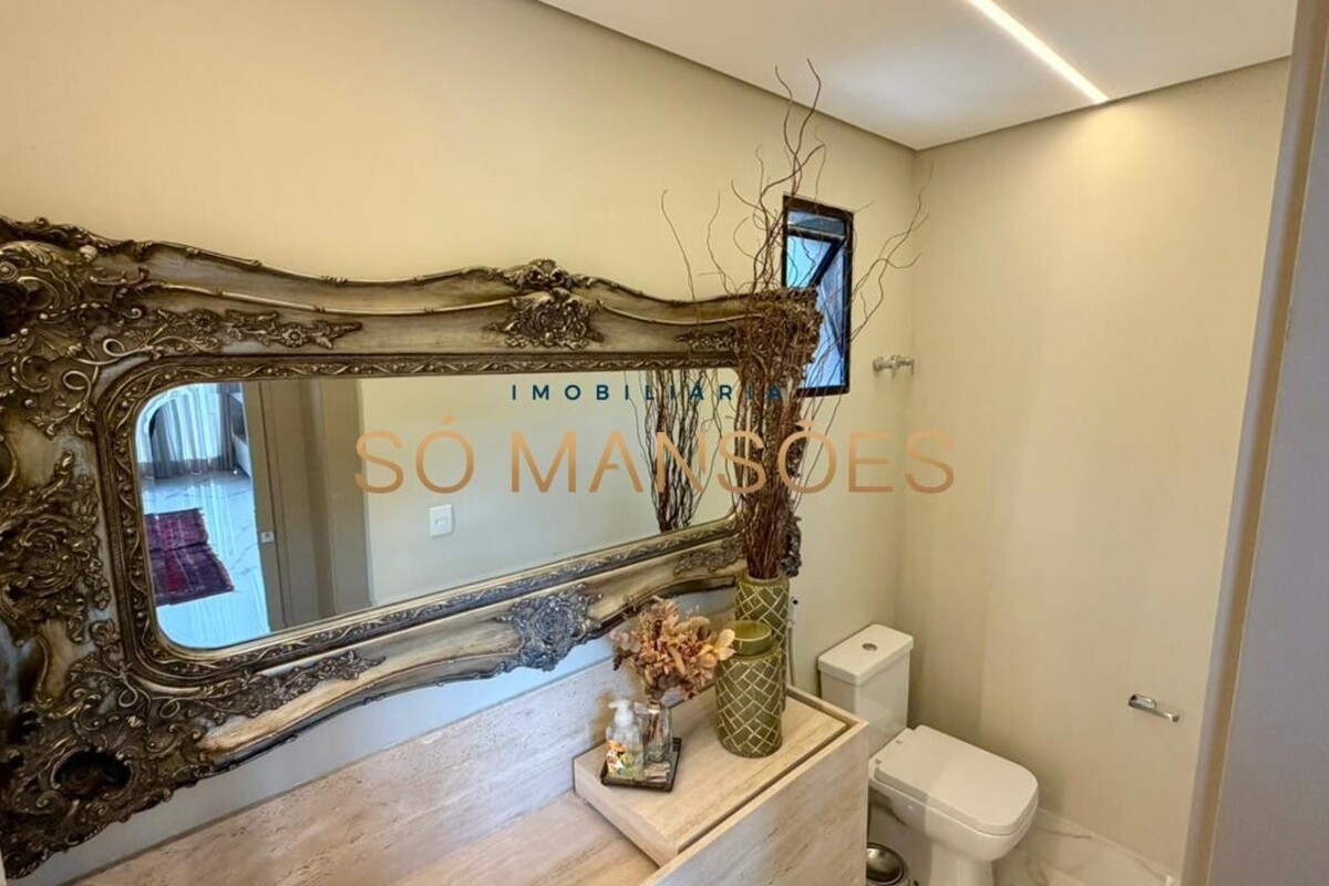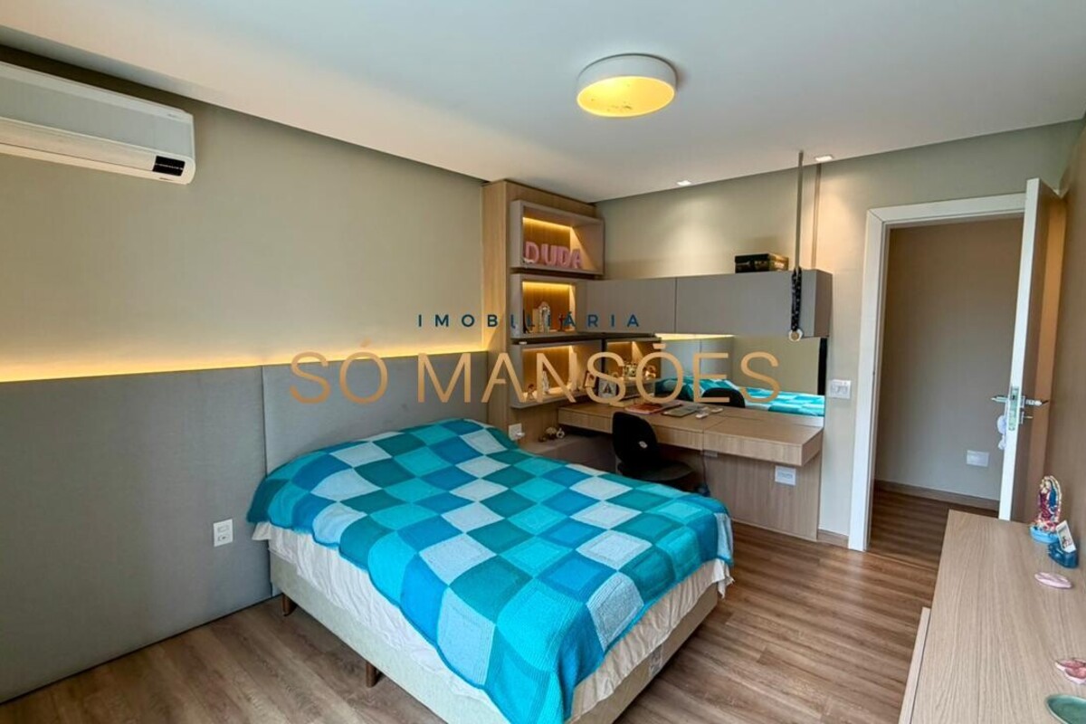 A residência apresenta fino acabamento em mármore, granito, porcelanato e piso laminado. Conta ainda com armários planejados nos quartos, banheiros, cozinha, área de serviço e espaço gourmet.