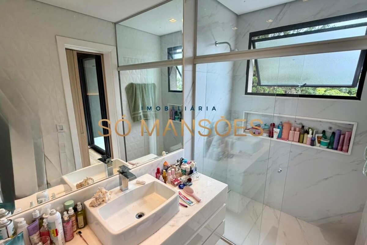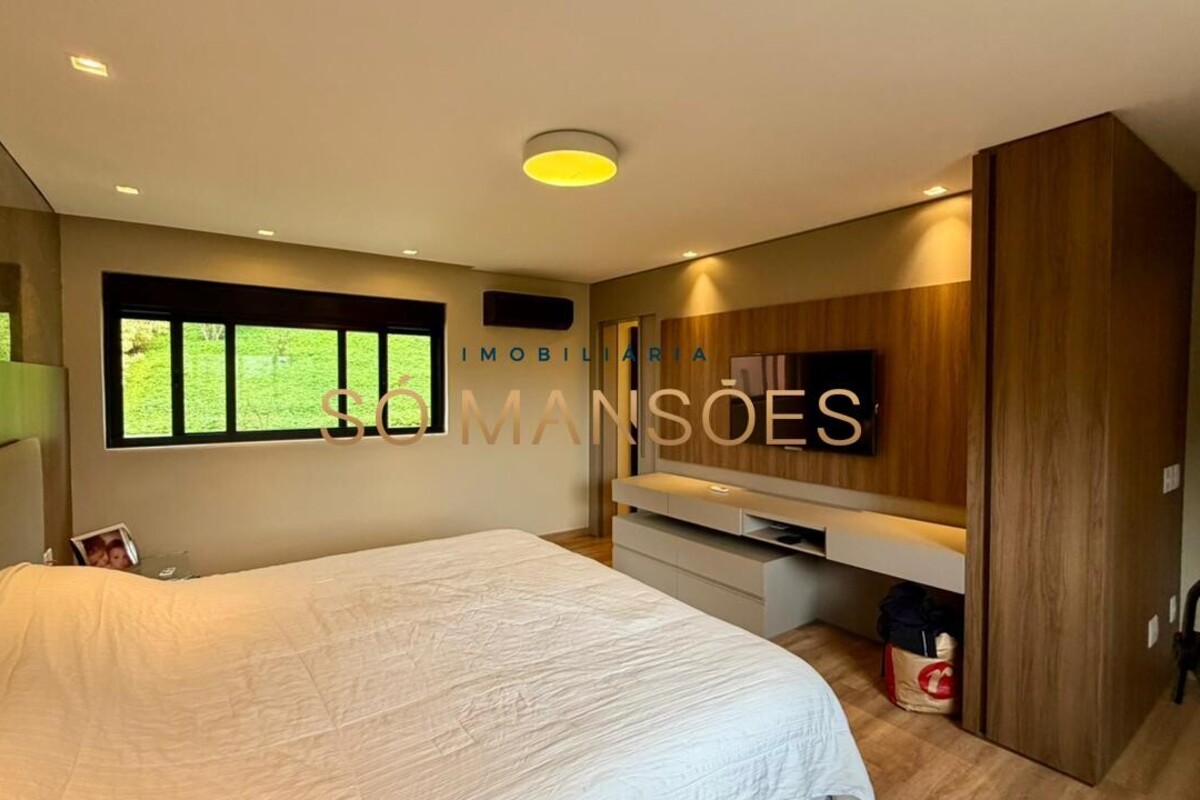 O imóvel possui ar-condicionado instalado em três suítes, persianas automatizadas nos quartos, sistema de aquecimento solar e energia fotovoltaica, agregando conforto térmico e eficiência energética.