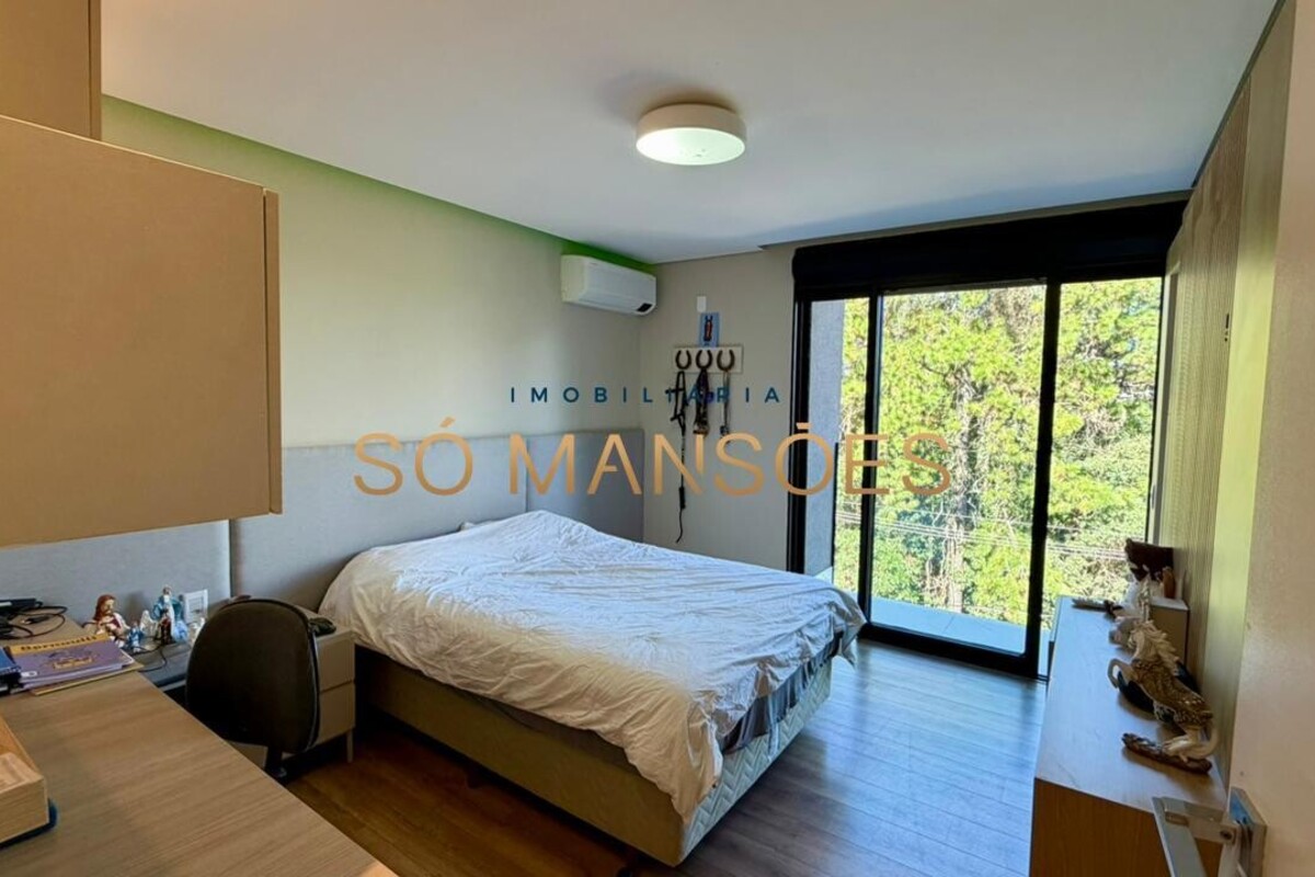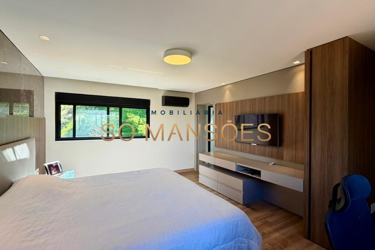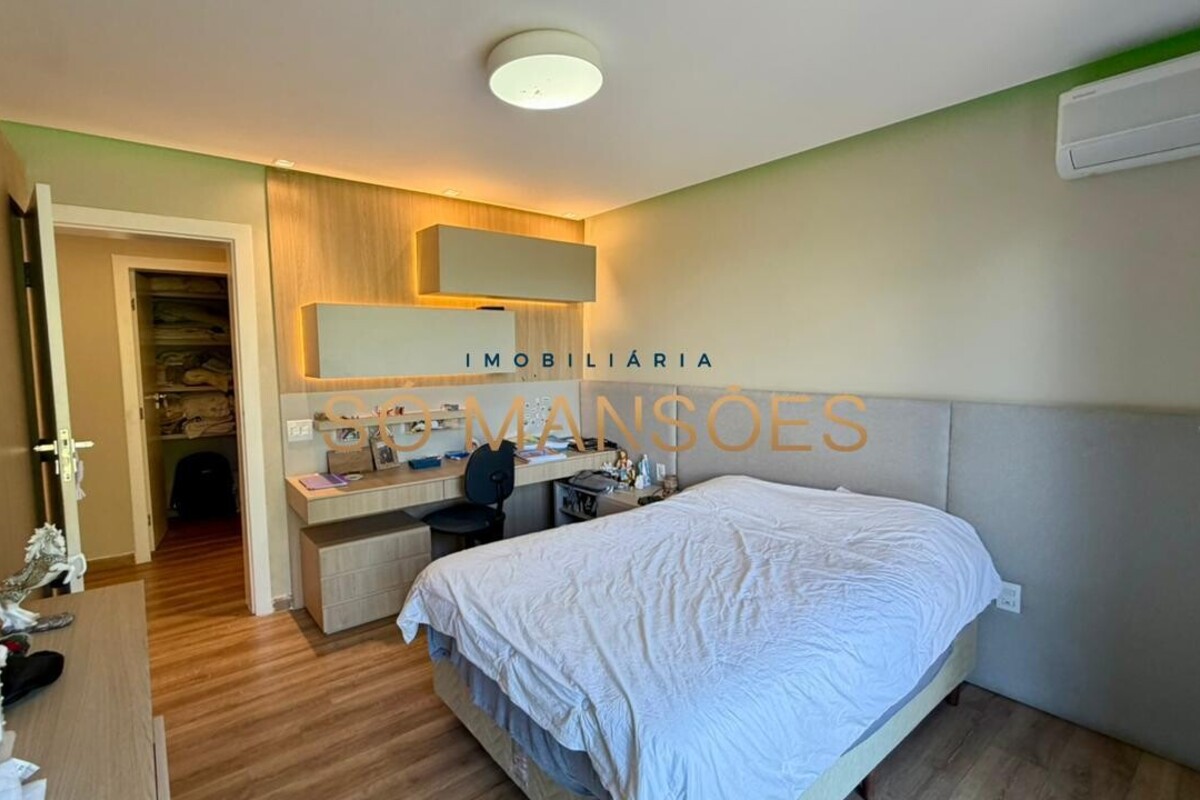 O imóvel possui ar-condicionado instalado em três suítes, persianas automatizadas nos quartos, sistema de aquecimento solar e energia fotovoltaica, agregando conforto térmico e eficiência energética.