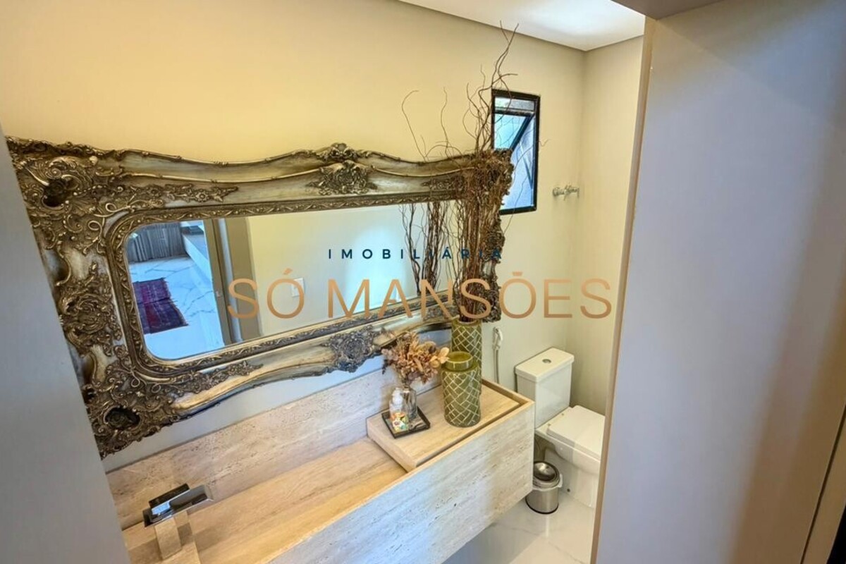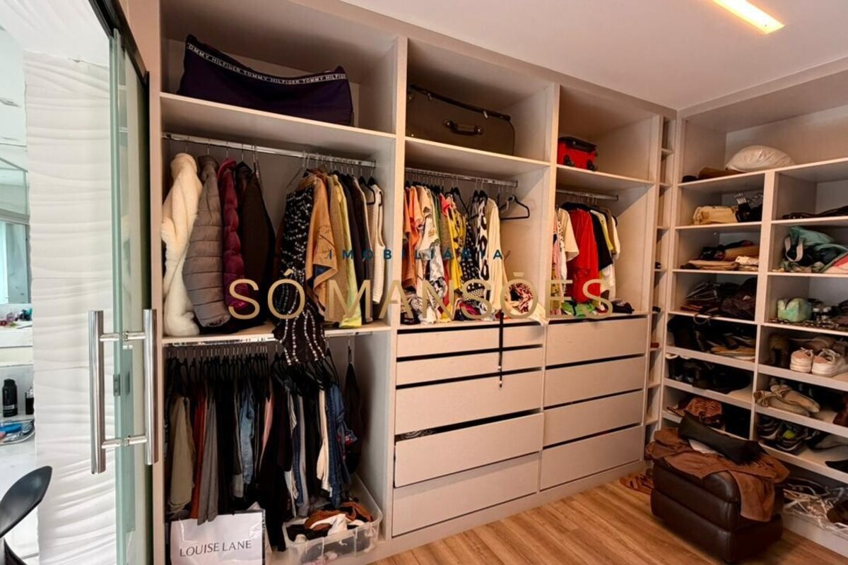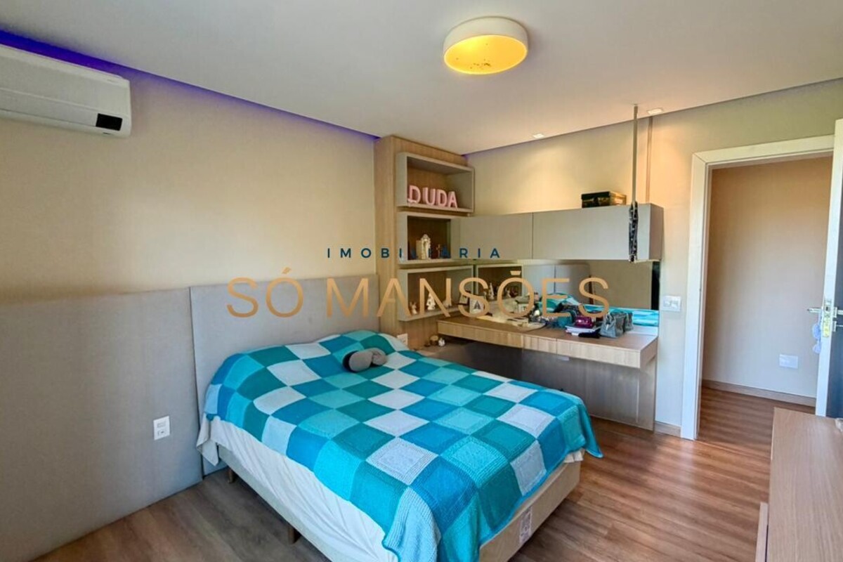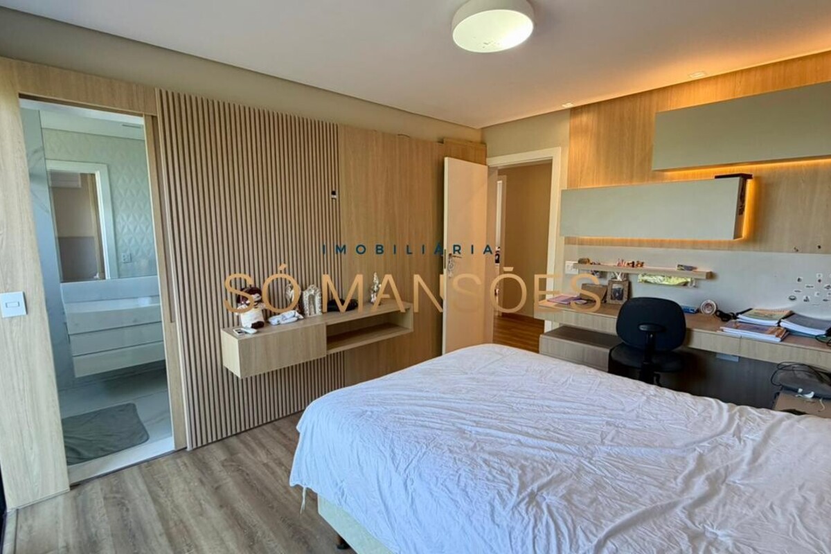 A residência apresenta fino acabamento em mármore, granito, porcelanato e piso laminado. Conta ainda com armários planejados nos quartos, banheiros, cozinha, área de serviço e espaço gourmet.