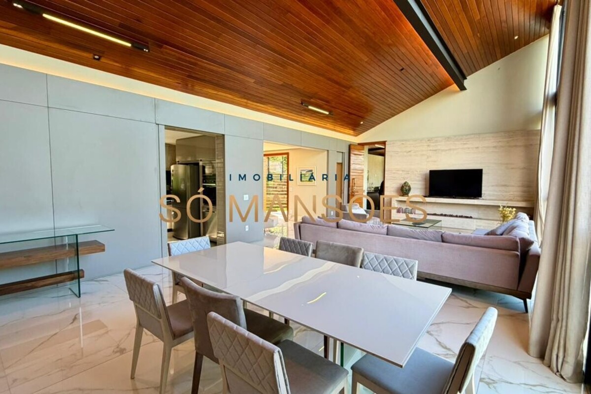Casa à venda no condomínio Bosque da Ribeira, com 400 m² de área construída, distribuída em dois pavimentos e com projeto que privilegia integração, funcionalidade e conforto.