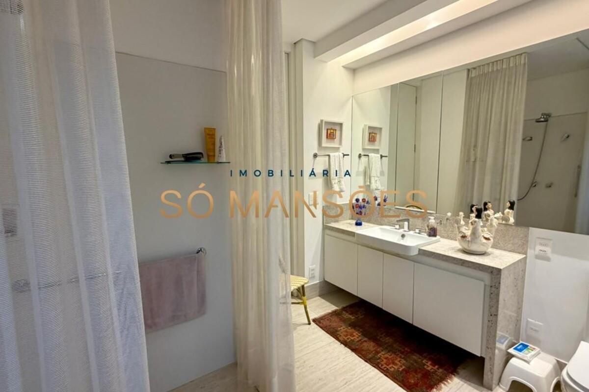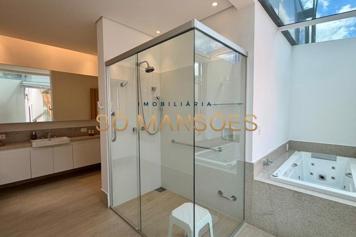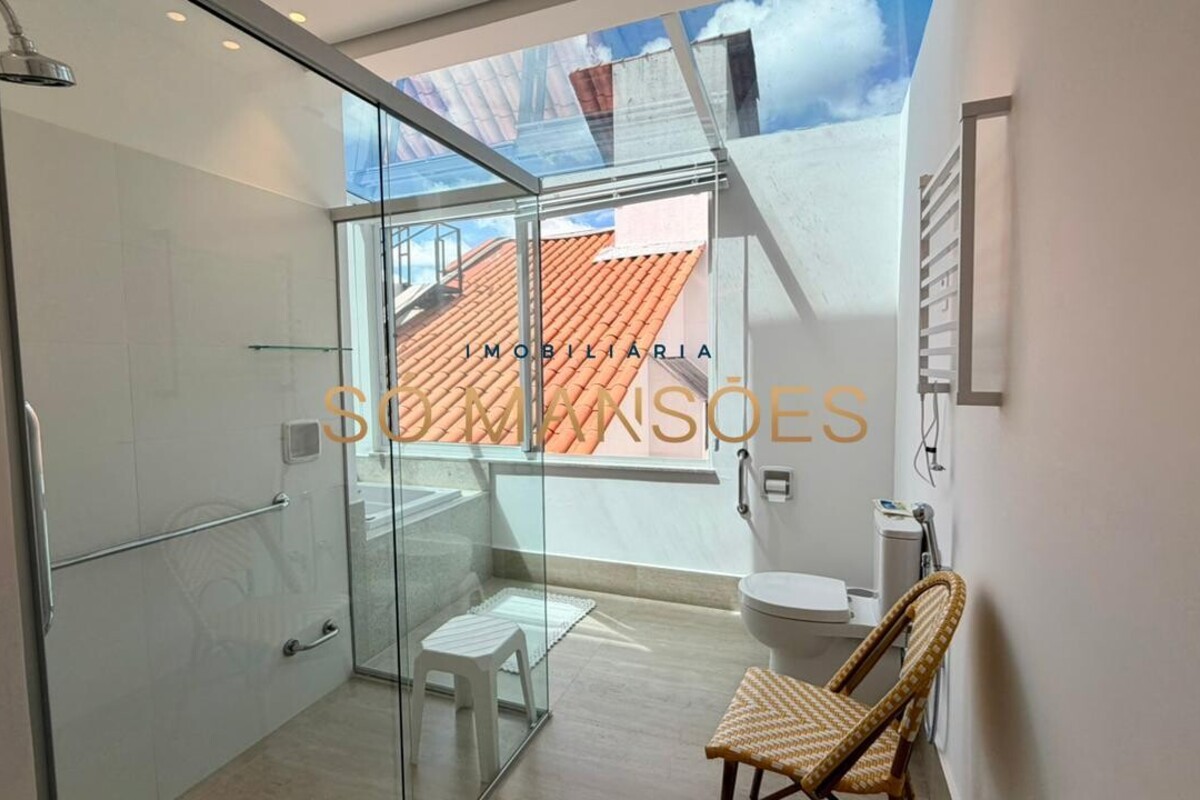 A casa possui elevador, automação de iluminação, sistema de segurança com câmeras, aquecimento solar e ar-condicionado na sala e nos quartos. Conta ainda com água filtrada em todas as torneiras e aquecedor de toalhas nos banheiros, agregando conforto ao dia a dia. O imóvel também possui adaptação para pessoas com necessidades especiais.