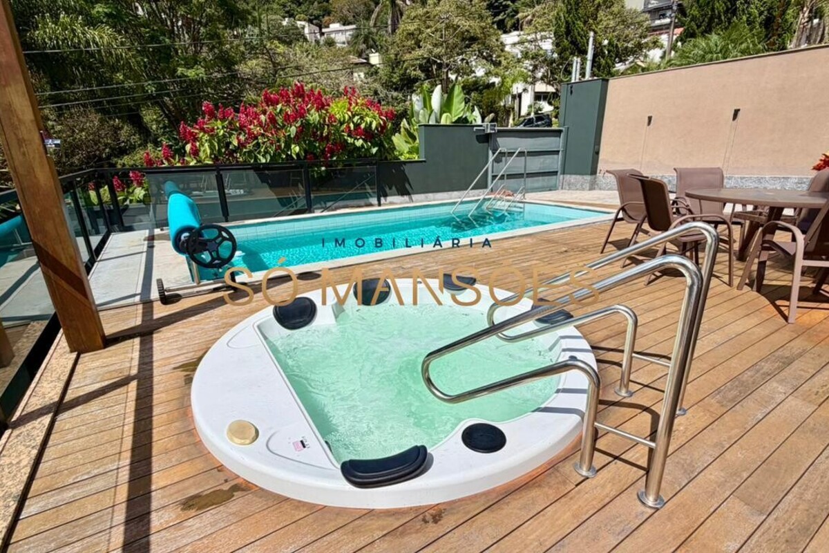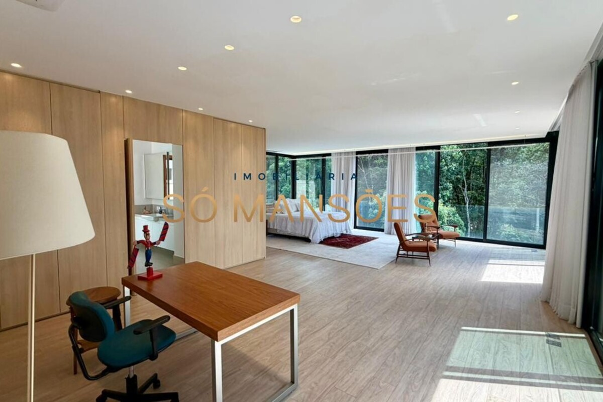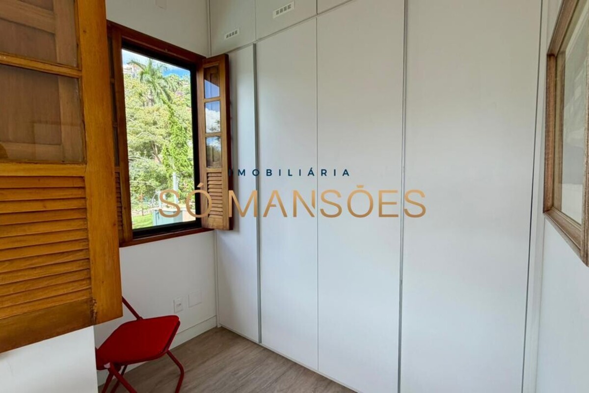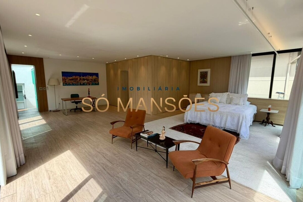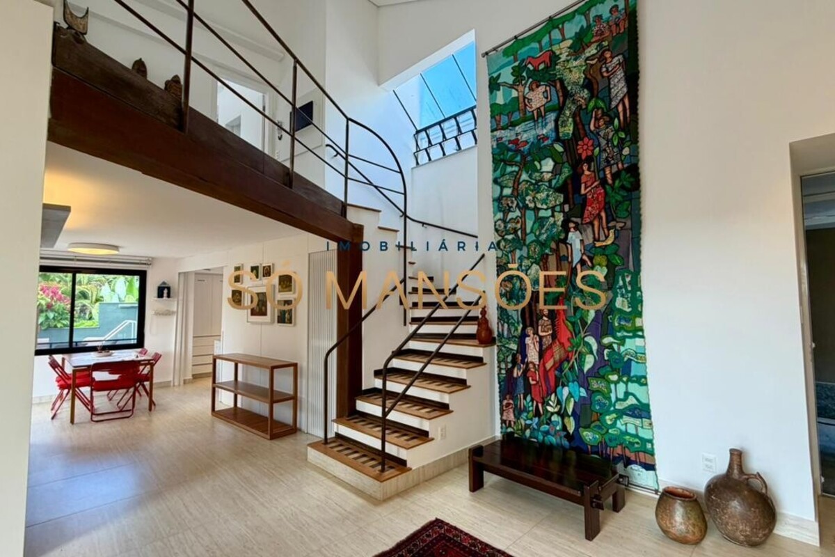 No pavimento superior, a área íntima é composta por duas suítes, sendo uma com closet, além de uma suíte master ampla, que conta com escritório, armários, varanda e banheiro com hidromassagem.