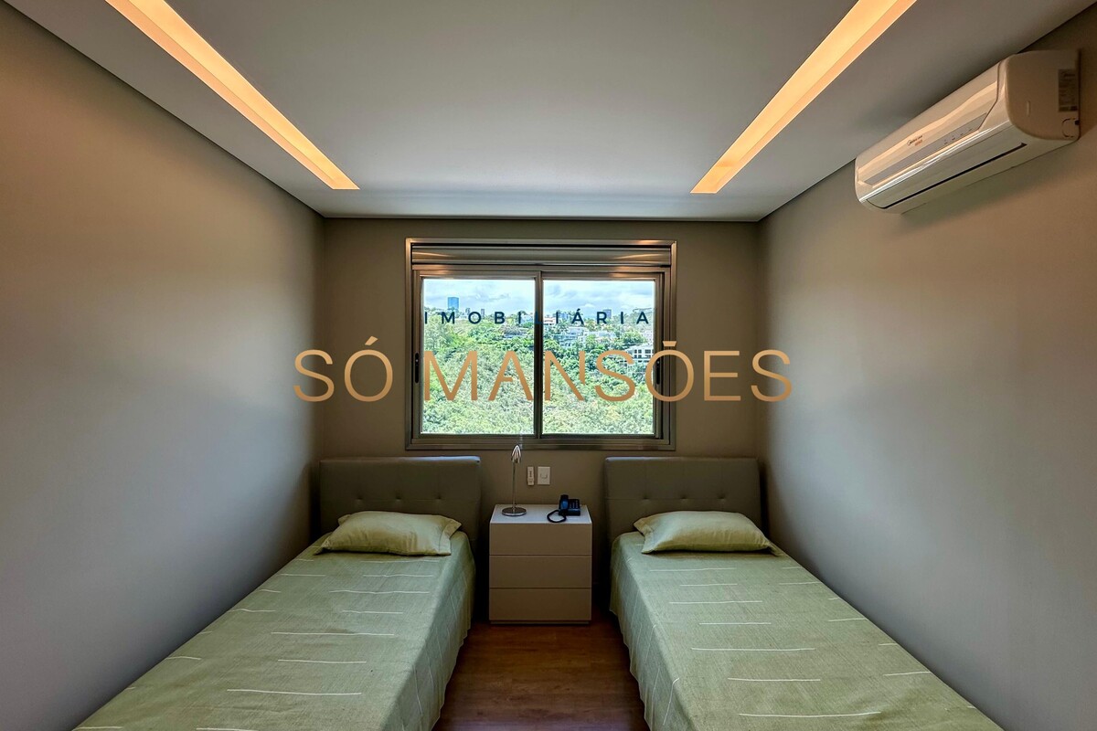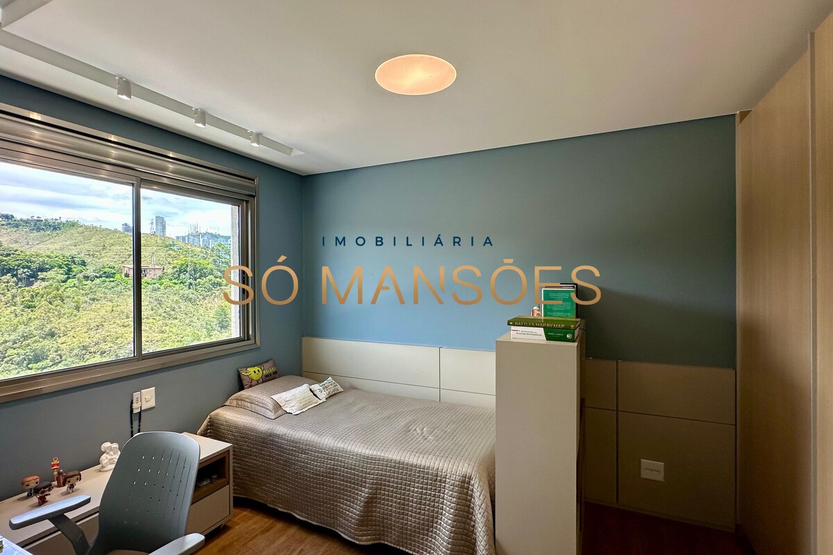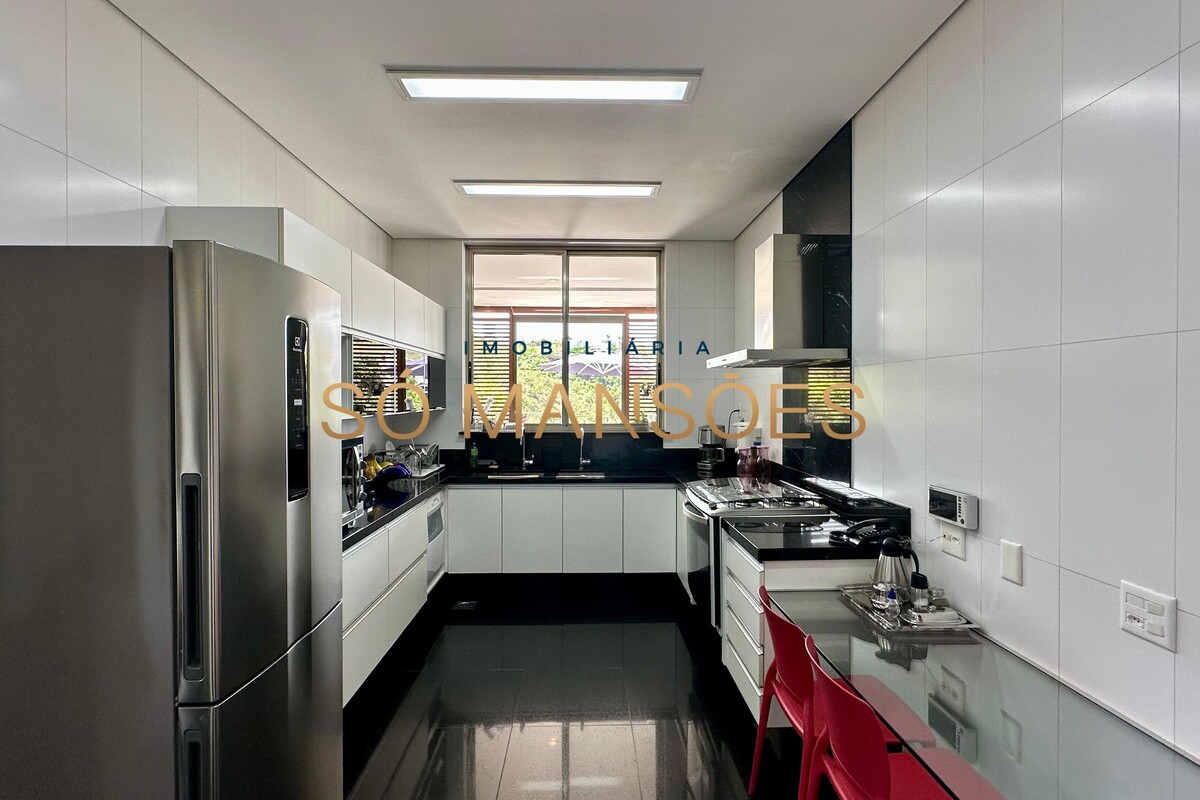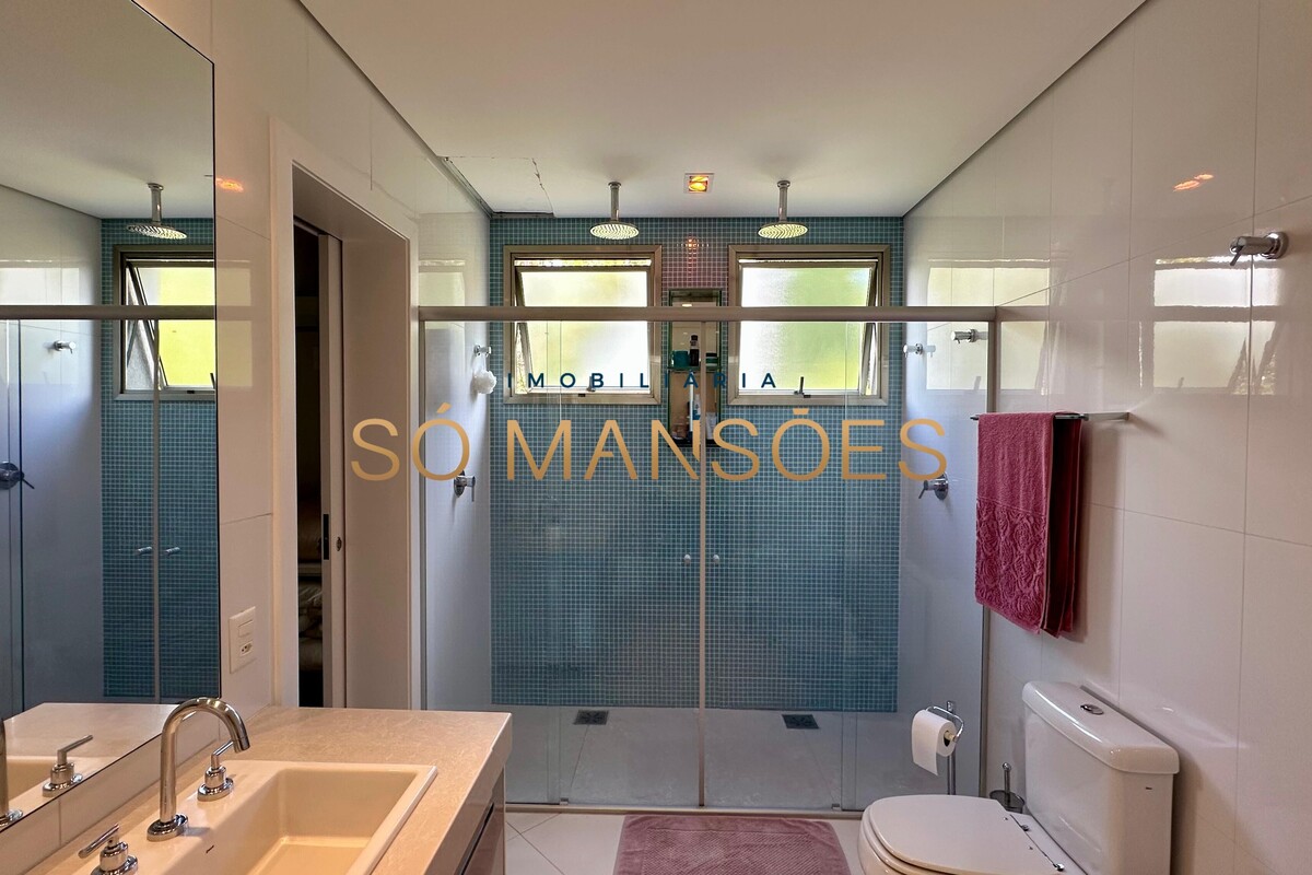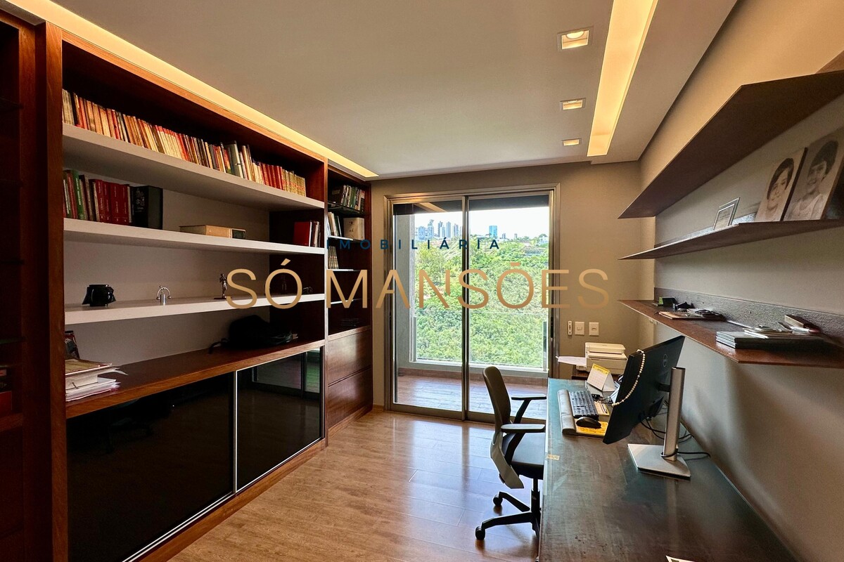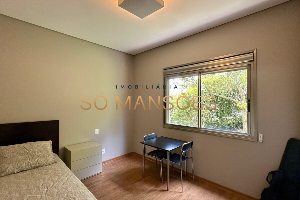 Distribuída em três pavimentos, a casa apresenta no pavimento íntimo três suítes bem dimensionadas, sendo a suíte master com closet, banheiro espaçoso e varanda privativa com vista especial. O andar conta ainda com escritório e rouparia, proporcionando praticidade ao dia a dia.