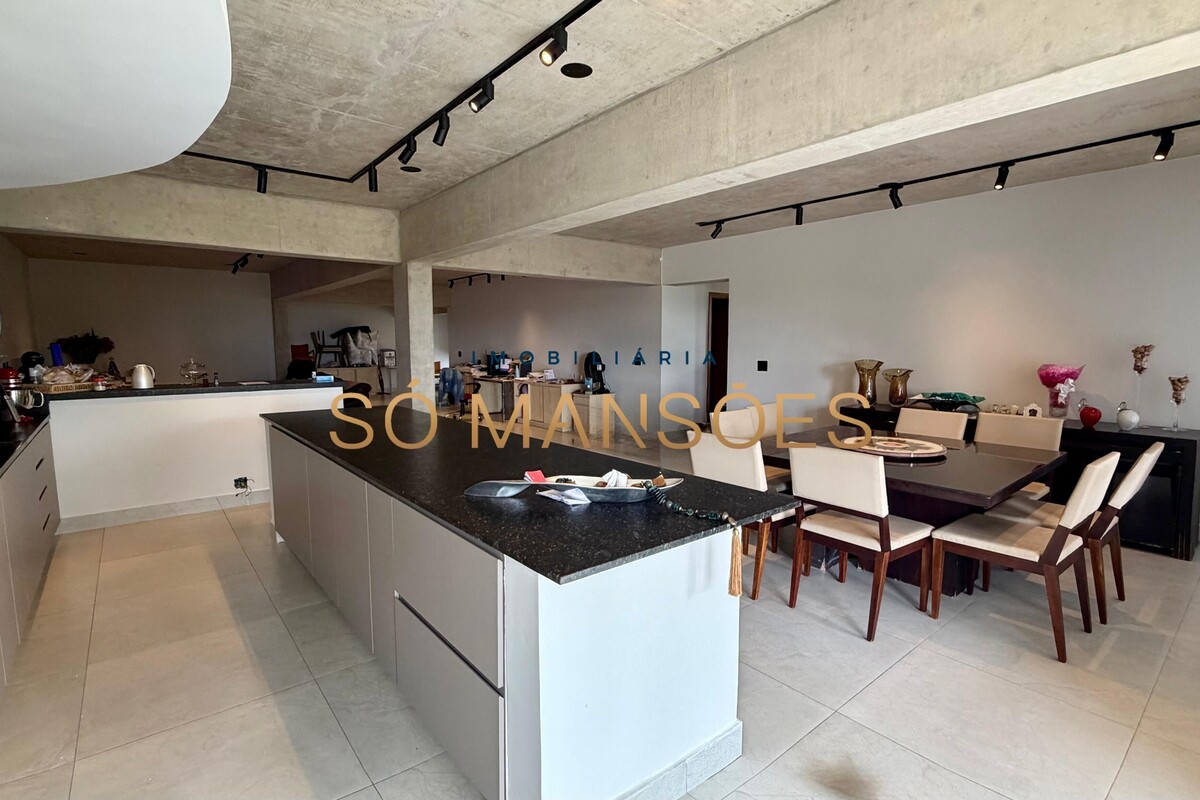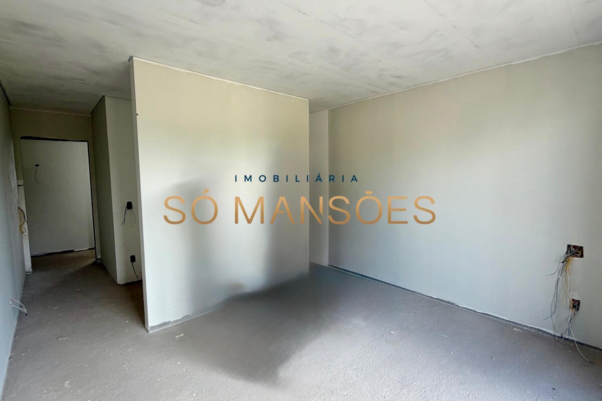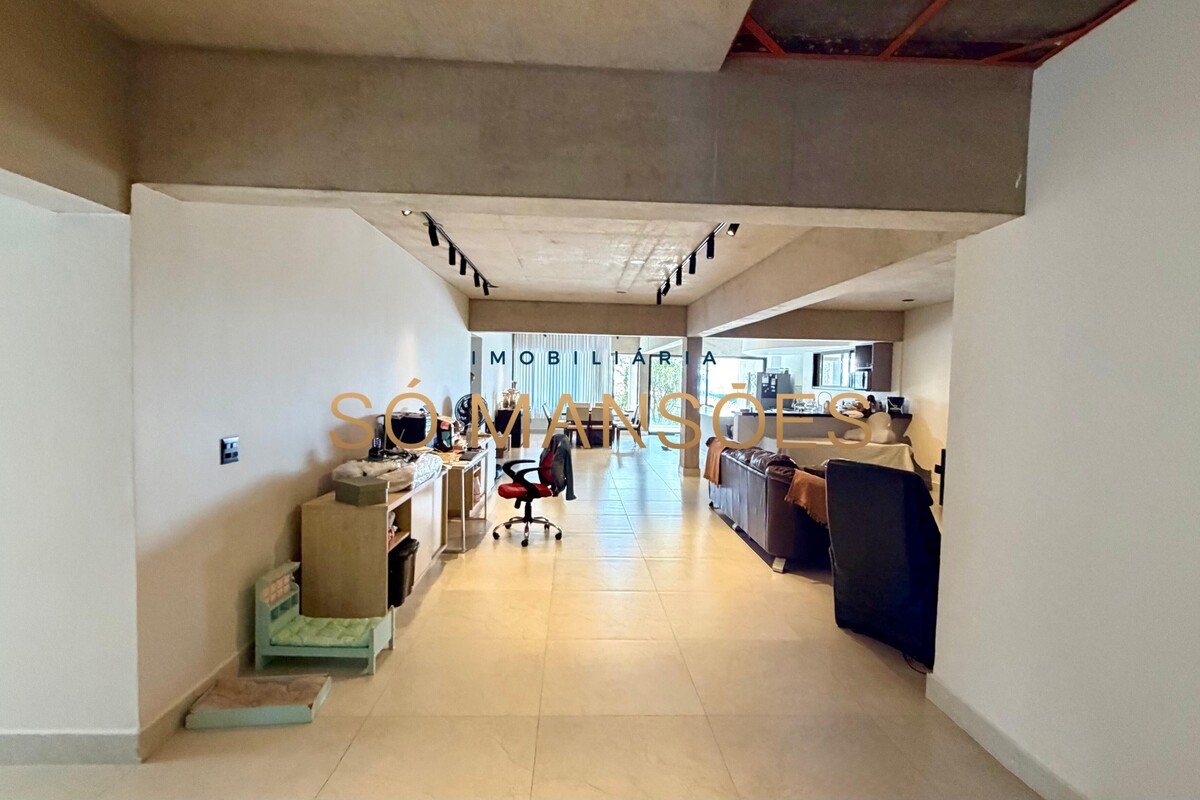 O pavimento inferior oferece uma ampla sala para três ambientes com cozinha integrada, além de um quarto, dois banheiros e DCE, sendo um espaço versátil que pode ser adaptado conforme a necessidade do projeto. Este pavimento já se encontra praticamente finalizado.