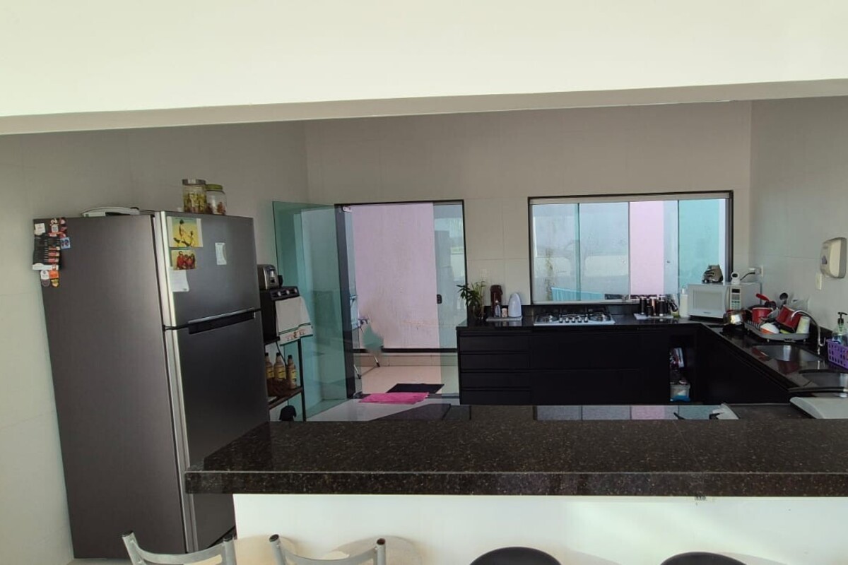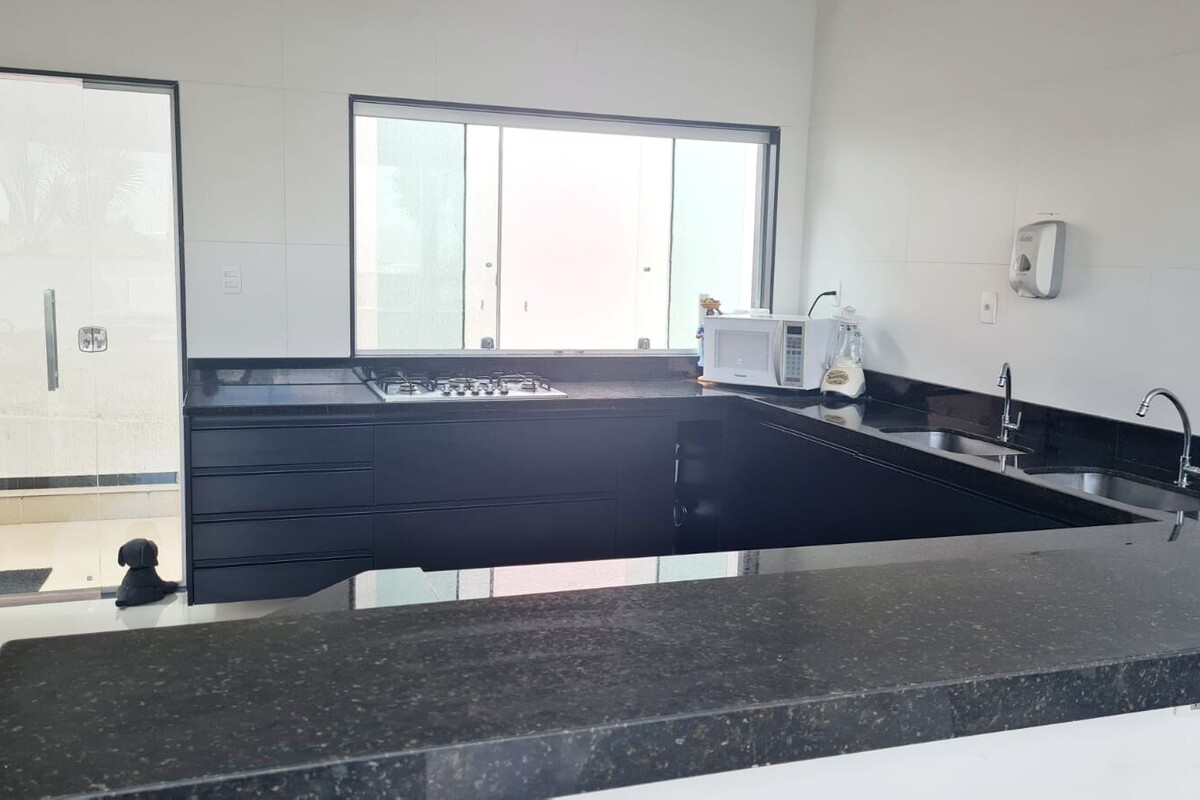 A cozinha americana se integra aos demais ambientes, favorecendo o convívio no dia a dia. O espaço gourmet é amplo e conectado à área de lazer, criando um ambiente ideal para receber e desfrutar momentos com familiares e amigos.