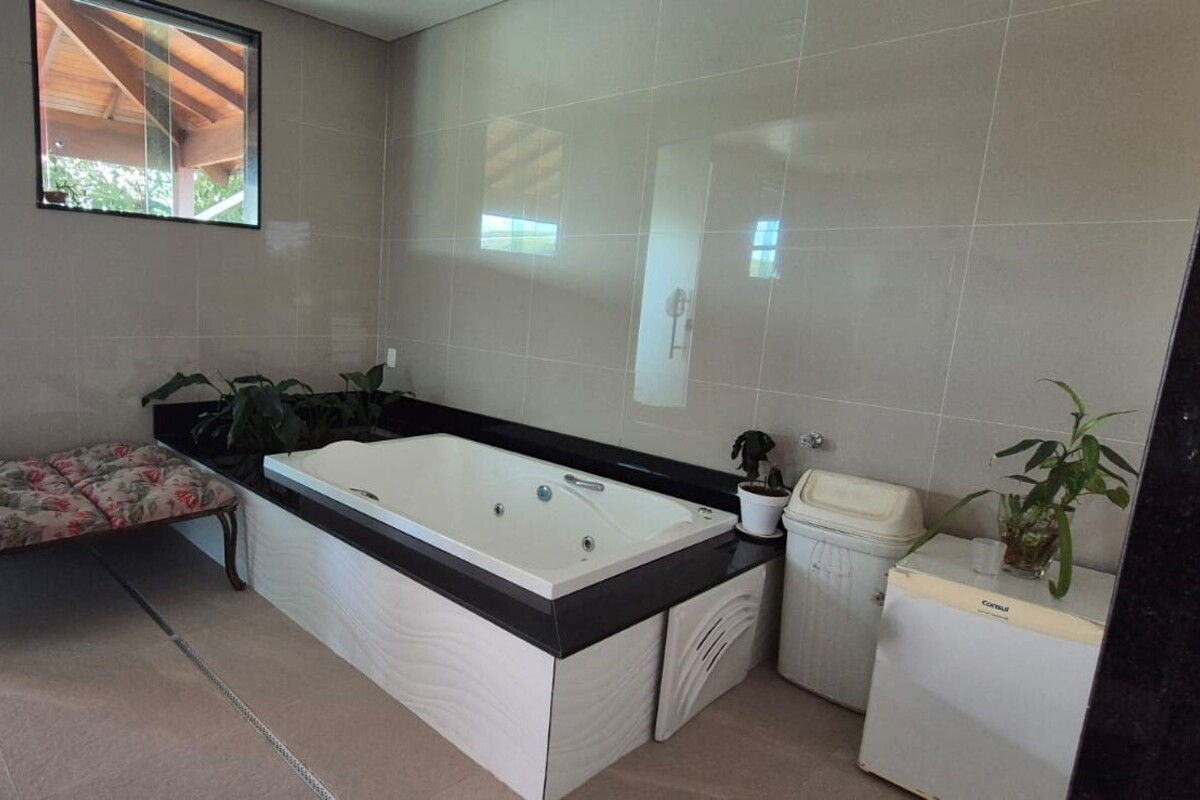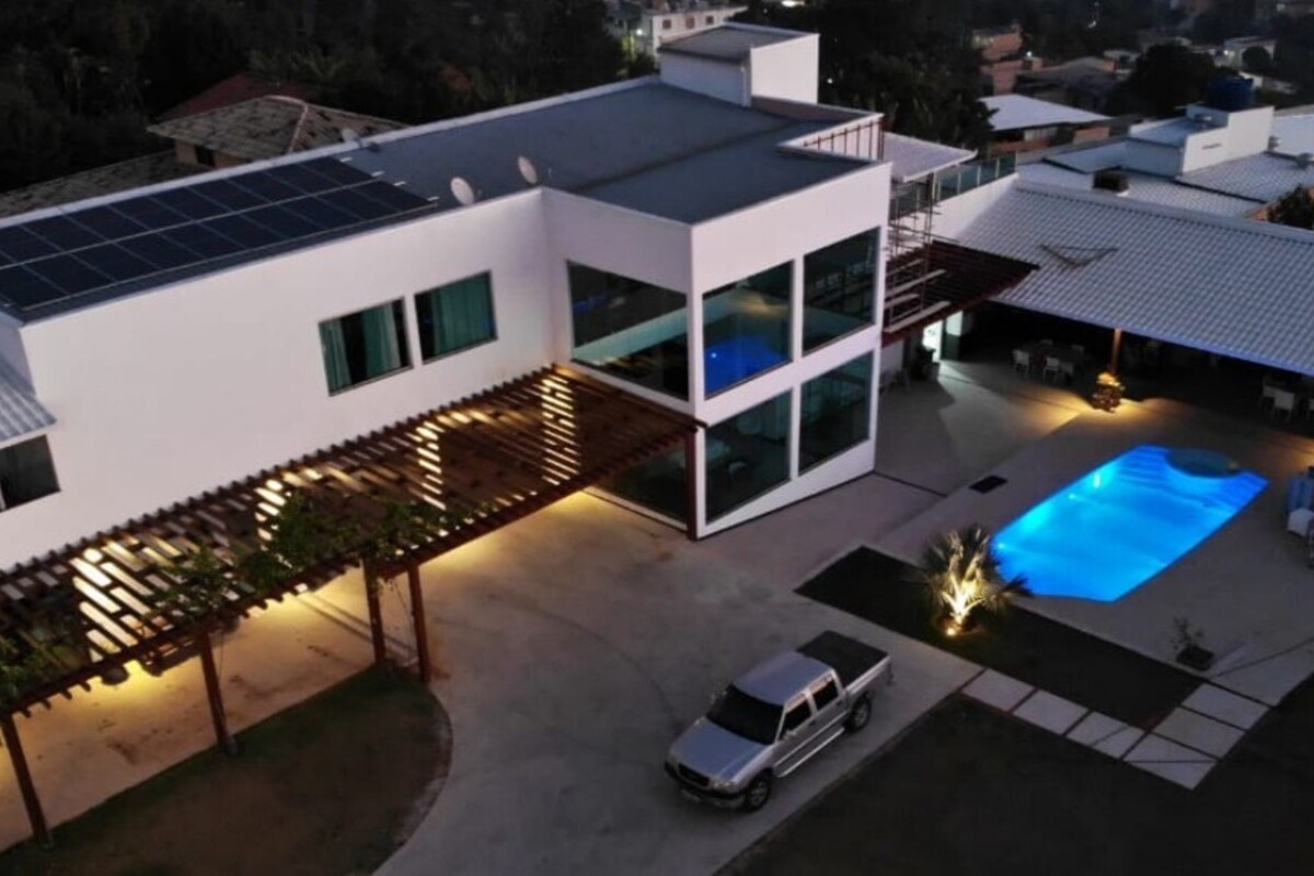 Entre os diferenciais, a casa conta com geração de energia própria por meio de sistema fotovoltaico WEG, com 30 placas de 440W, produzindo aproximadamente 1.800 kWh mensais, com possibilidade de transferência de créditos para outros endereços. Todo o imóvel possui acabamento em piso porcelanato.