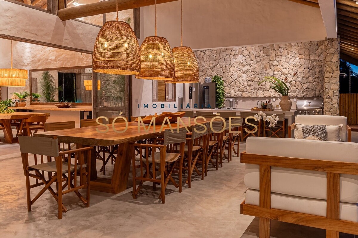 A área social oferece ambientes amplos e bem equipados, incluindo home cinema com televisão de 75 polegadas e canais, além de internet disponível em todos os ambientes. A residência conta com cozinha completa e área gourmet igualmente equipada, com churrasqueira a gás, atendendo com eficiência tanto ao uso diário quanto a momentos de convivência.