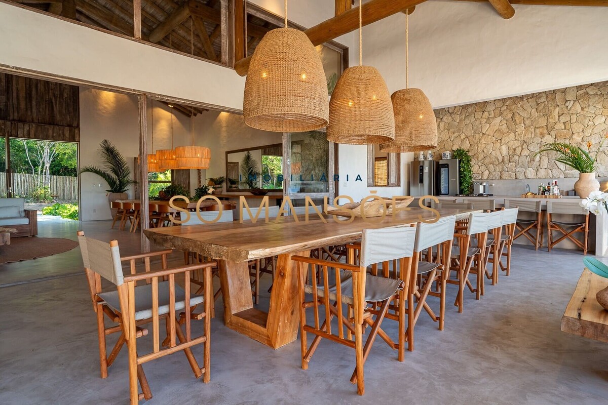 A localização é estratégica, próxima ao Quadrado de Trancoso, a aproximadamente cinco minutos de carro ou dez minutos a pé, com acesso à praia em cerca de dez minutos de carro, reunindo conveniência, vista privilegiada e padrão construtivo diferenciado.