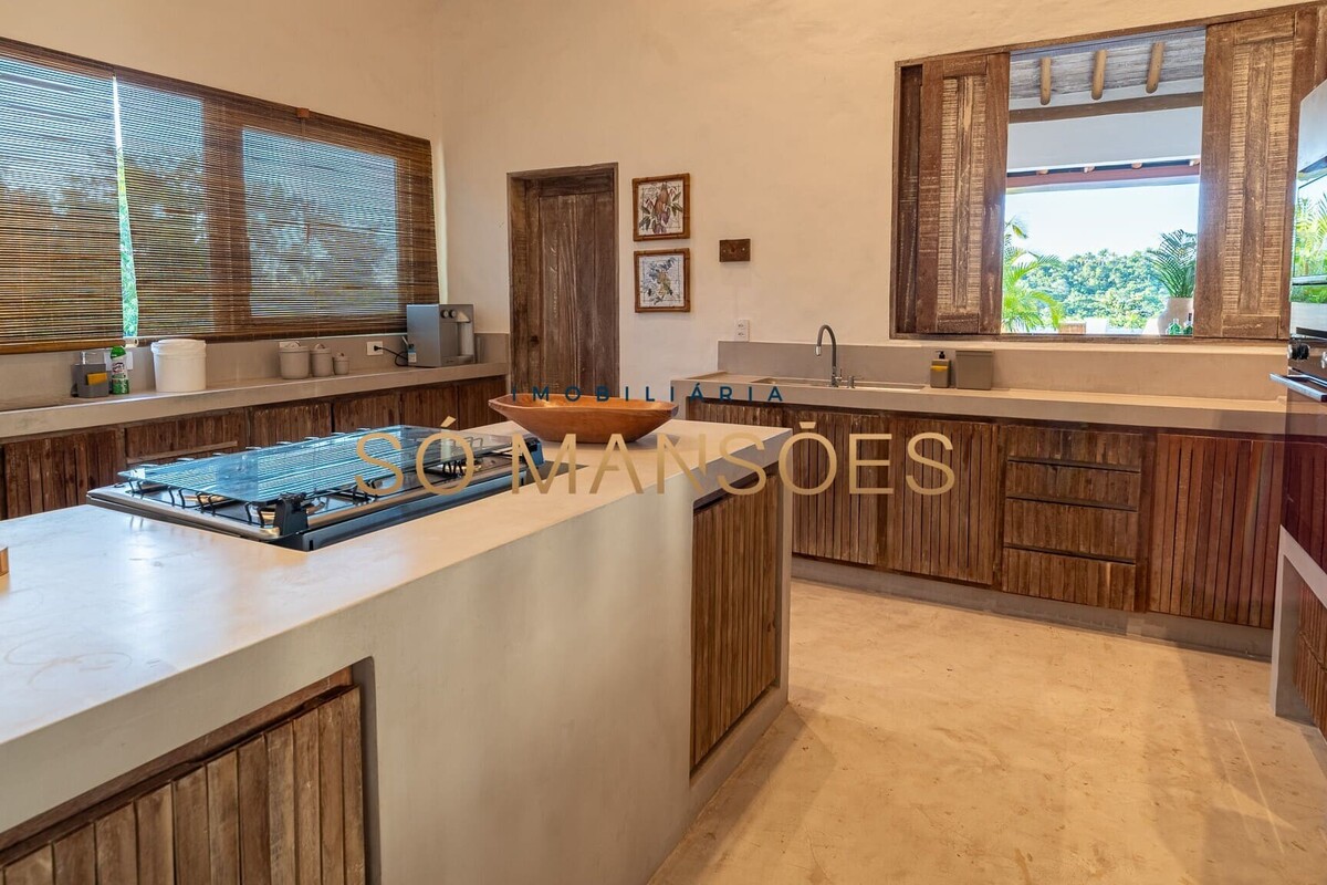 O imóvel conta ainda com lavanderia completa, um roupeiro, uma louçaria, uma despensa na cozinha e duas despensas na lavanderia. Toda a casa é pressurizada por dois pressurizadores inteligentes e equipada com gerador automático de 40 kVA. A garagem oferece duas vagas cobertas.